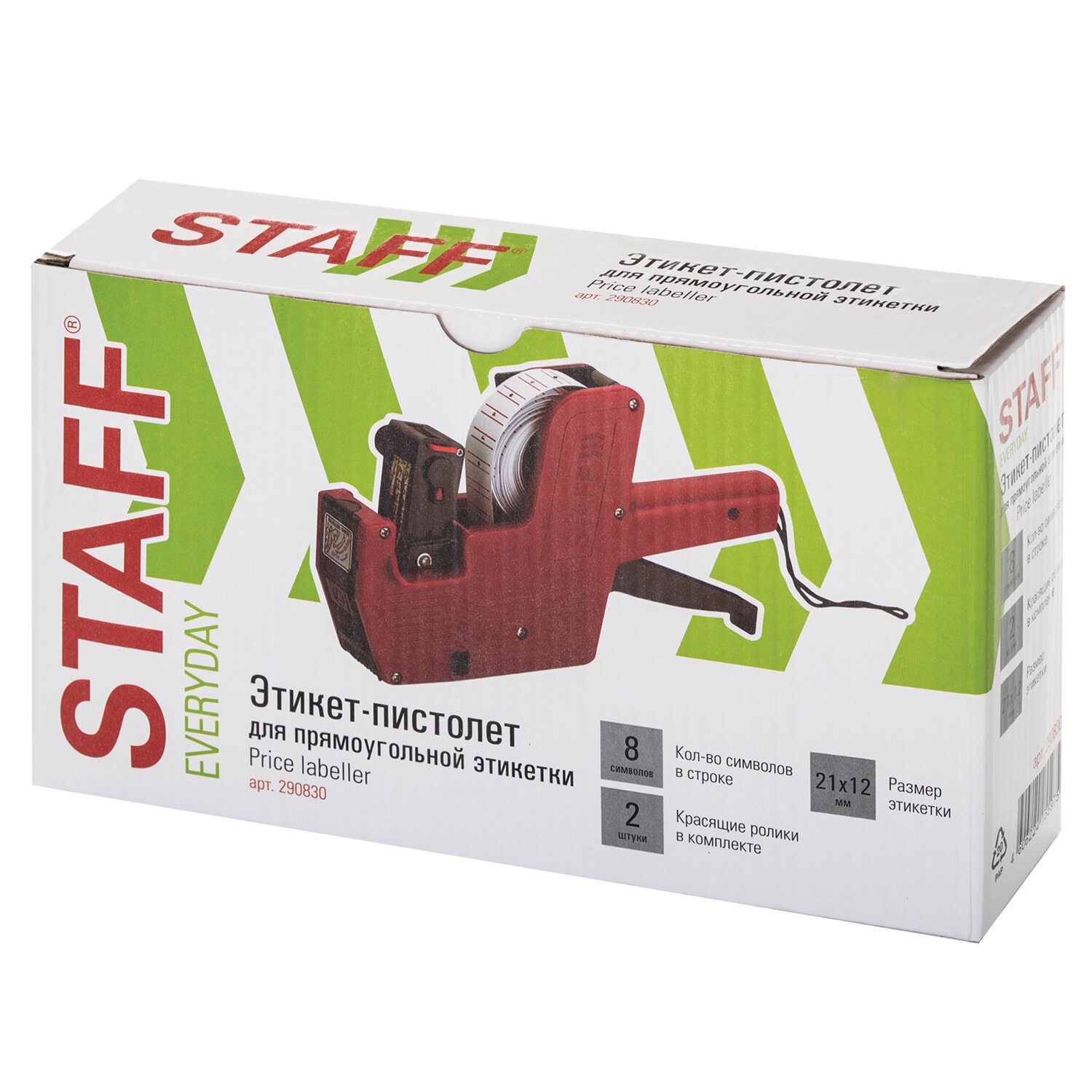 Этикет-пистолет однострочный, прямоугольная лента 21х12 мм, 8 символов, STAFF "EVERYDAY", 290830