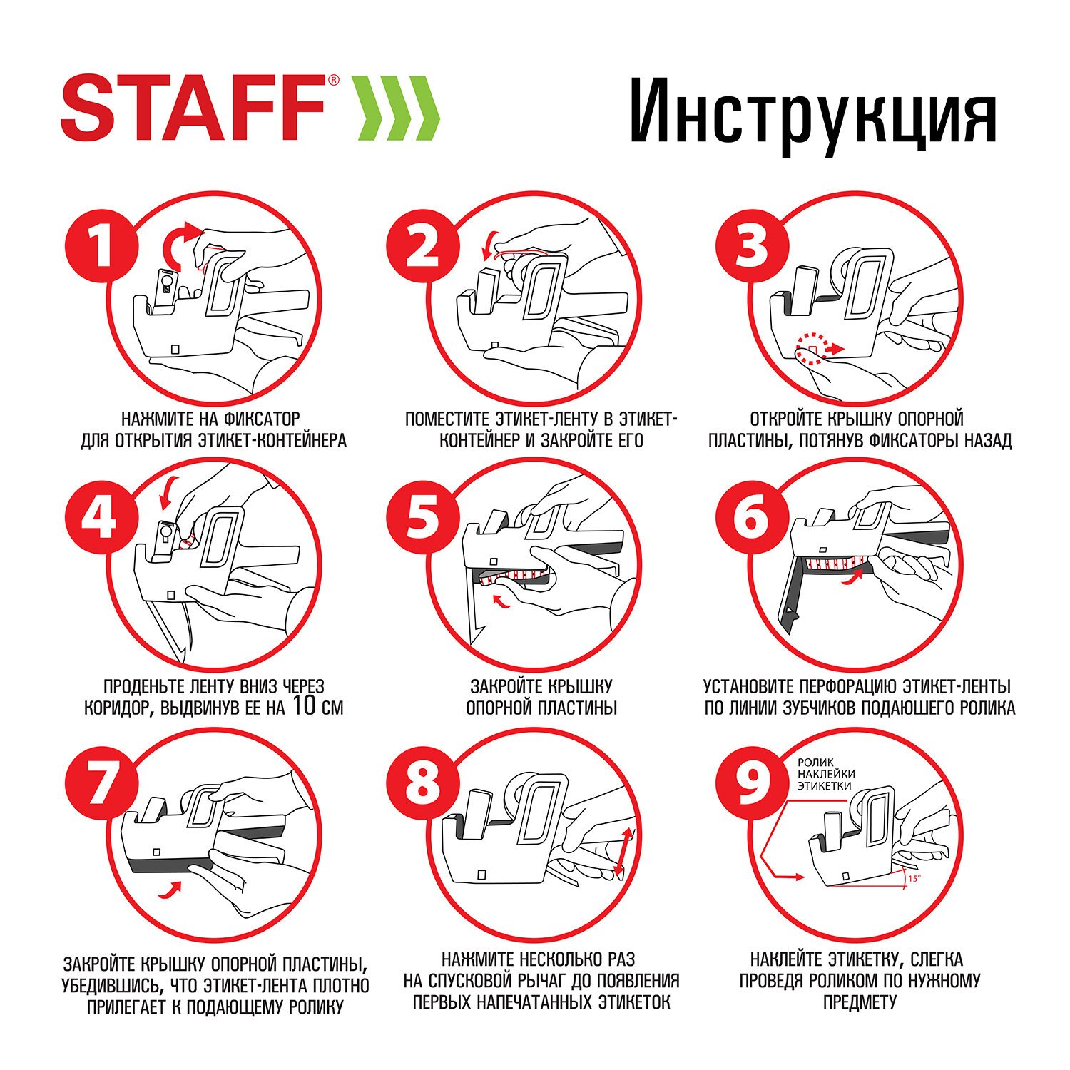 Однострочный этикет-пистолет STAFF предназначен для нанесения на этикетки цифр и символов (руб, $).