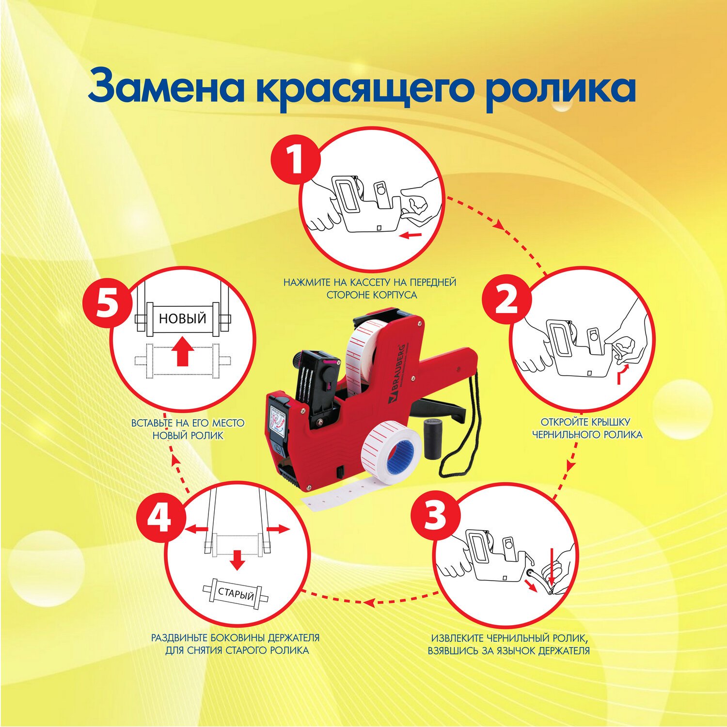 Однострочный этикет-пистолет BRAUBERG предназначен для нанесения на этикетки цифр и символов (руб., $, Евро, kg).