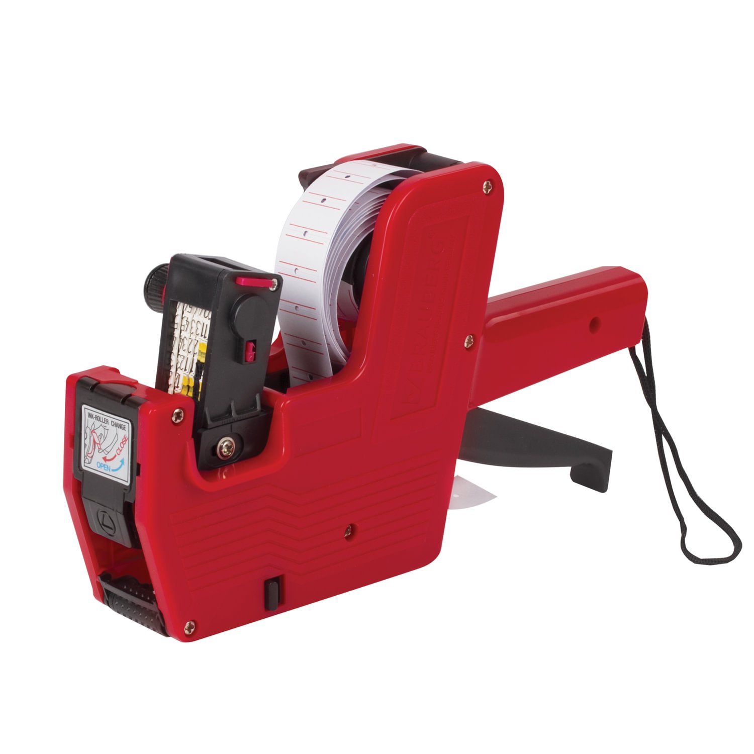 Изготовлен из качественного пластика, выдерживающего низкие температурные условия и интенсивную эксплуатацию. Снабжен высококачественным красящим роликом, не смазывающим чернила при печати. 8 символов в строке. Размер этикет-ленты - 21х12 мм (прямоугольная), диаметр втулки - 30 мм. В комплекте: этикет-пистолет, этикетки, красящий ролик, инструкция.
