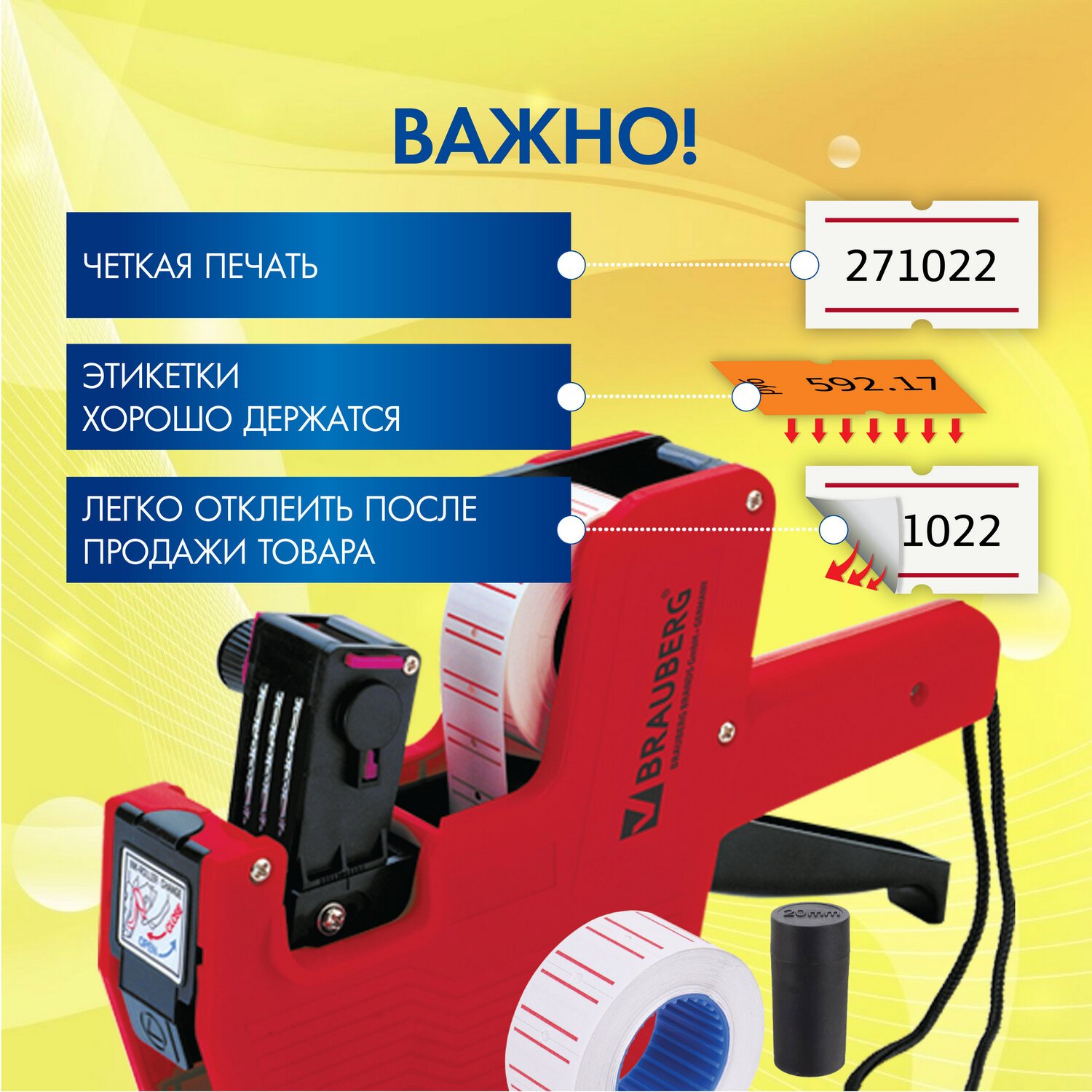 Этикет-лента 21х12 мм, прямоугольная, белая с красной полосой, комплект 5 рулонов по 600 шт., BRAUBERG, 123568
