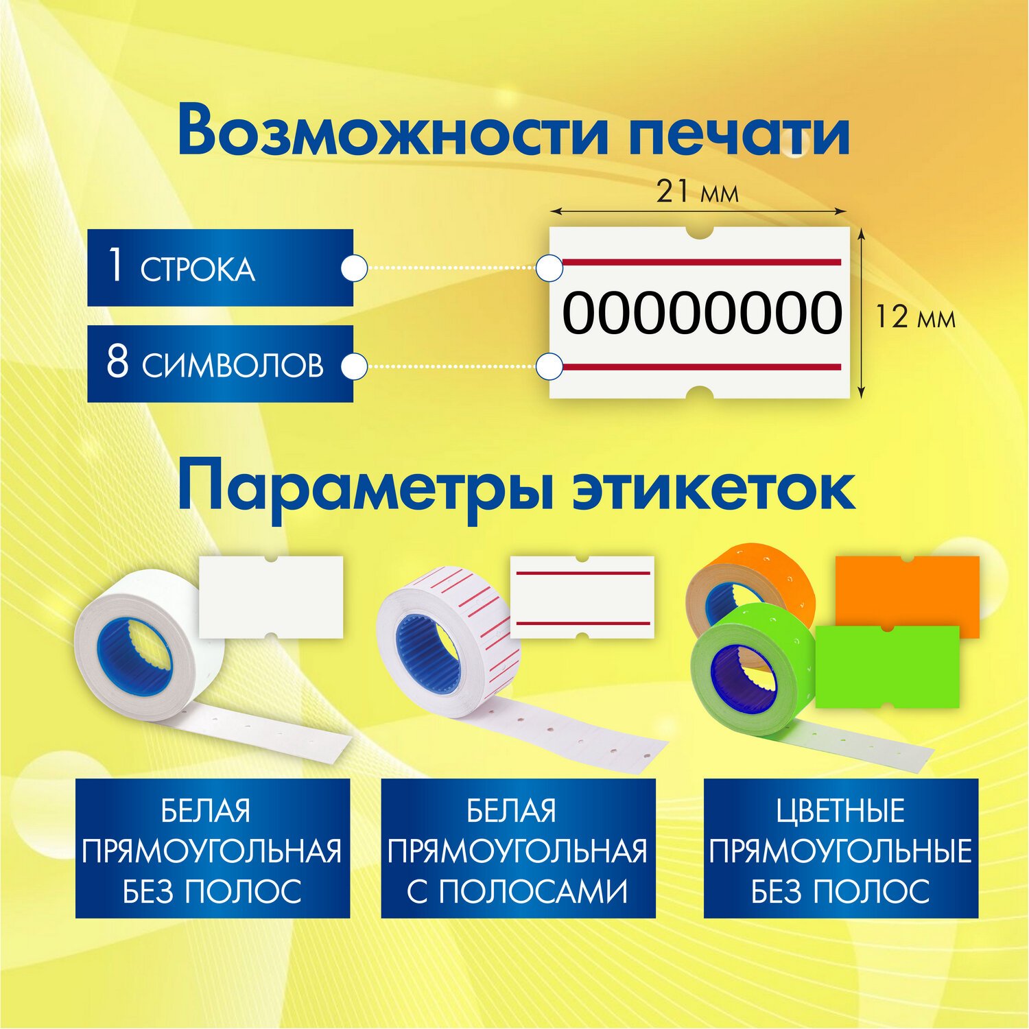 Этикет-пистолет однострочный, прямоугольная лента 21x12 мм, 8 символов, BRAUBERG, 290435