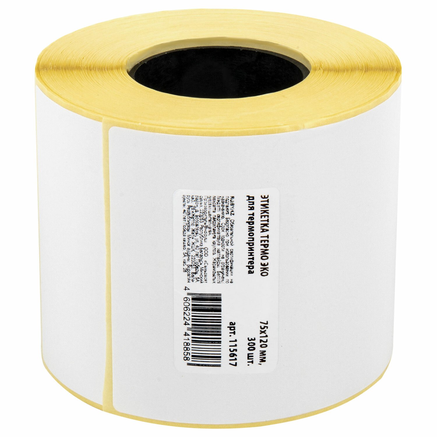 Этикетка ТермоЭко (75х120 мм), 300 этикеток в ролике, светостойкость до 2 месяцев, 115617