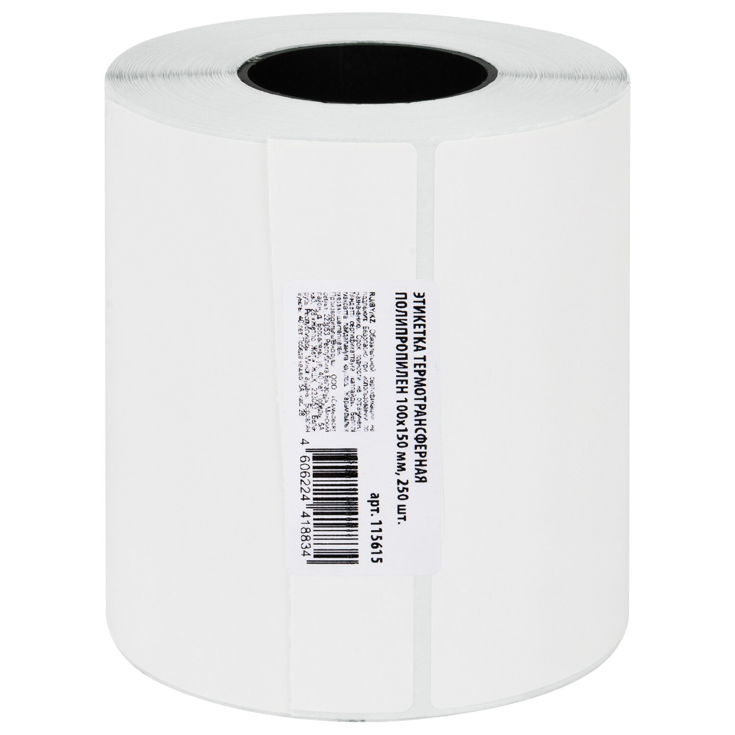 Этикетка термотрансферная ПОЛИПРОПИЛЕНОВАЯ (100х150 мм), 250 этикеток в ролике, 115615
