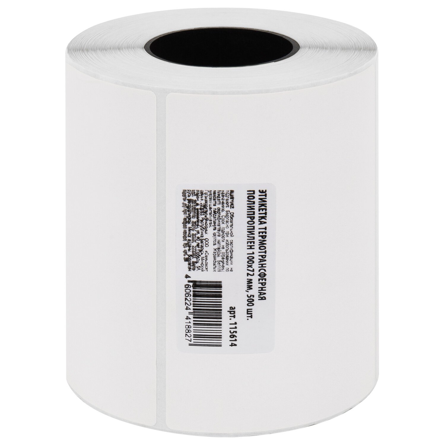Этикетка термотрансферная ПОЛИПРОПИЛЕНОВАЯ (100х72 мм), 500 этикеток в ролике, 115614