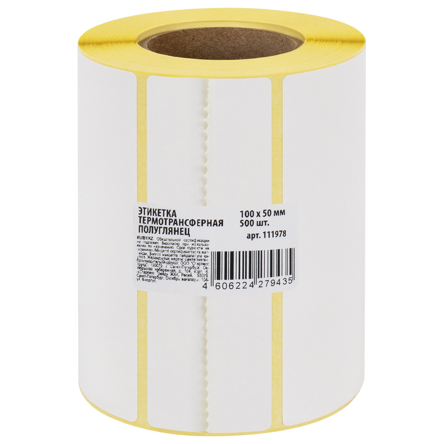 Этикетка термотрансферная ПОЛУГЛЯНЕЦ (100х50 мм), 500 этикеток в ролике, 111978