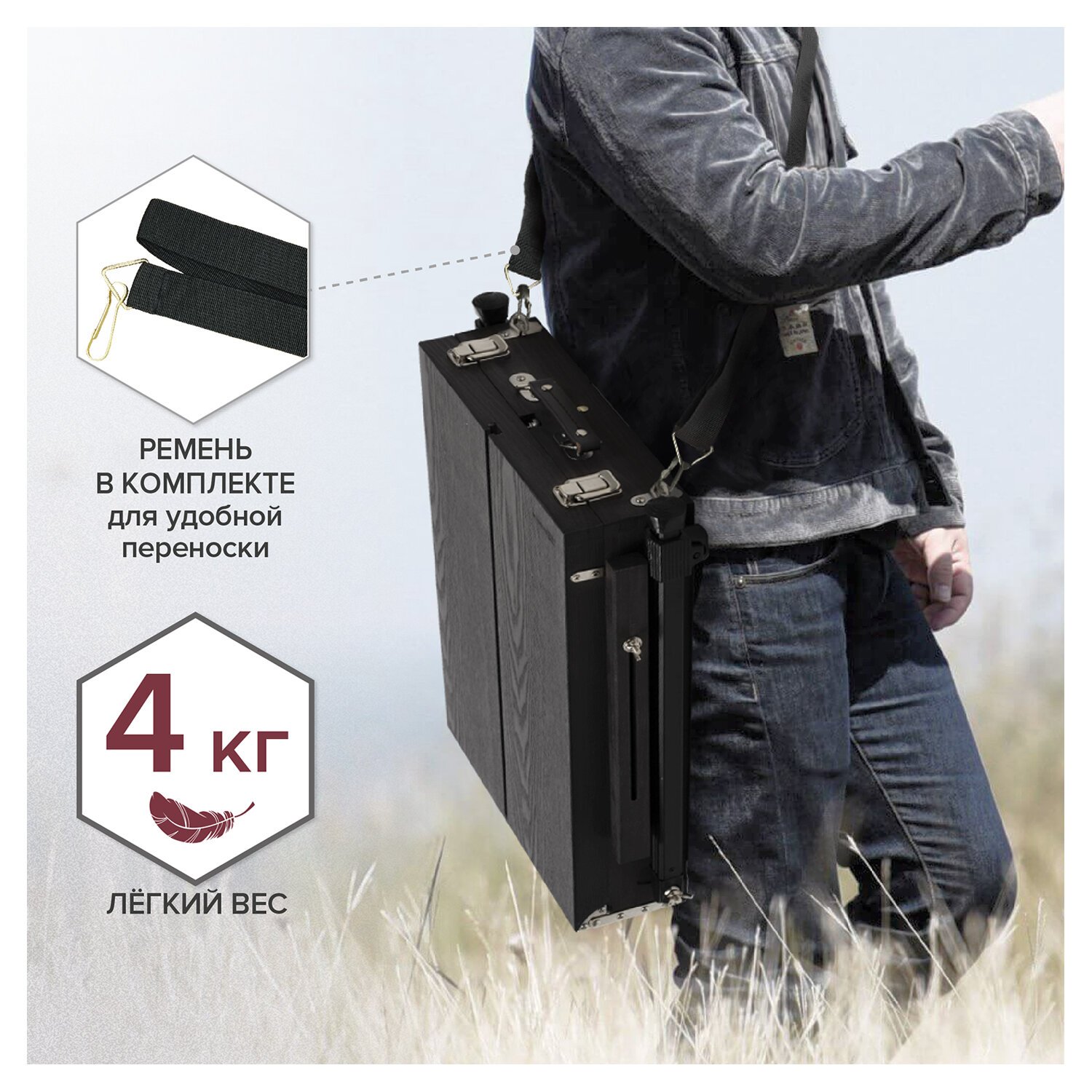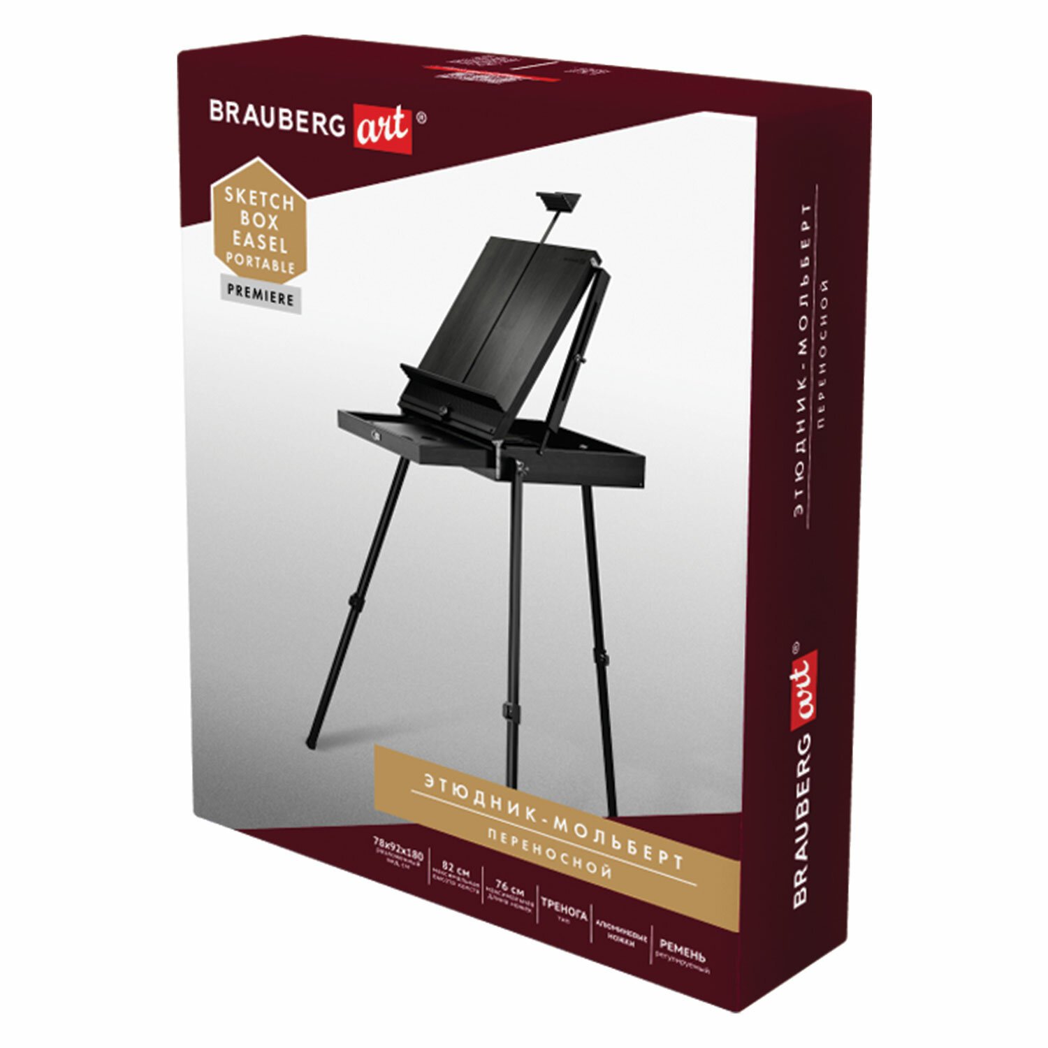 Этюдник-мольберт BRAUBERG ART PREMIERE, алюминиевые ножки, холст до 82 см, черный, 191755