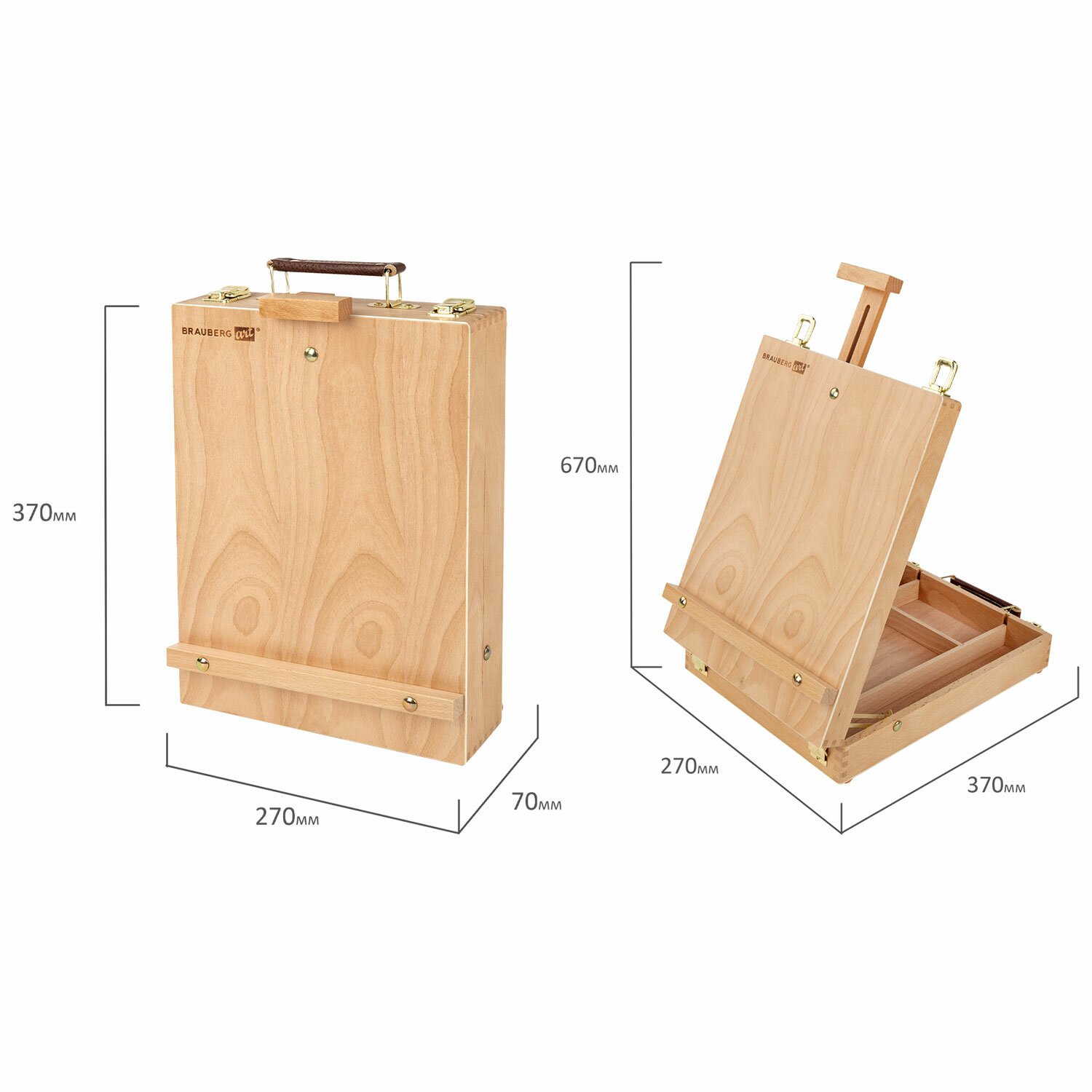 Этюдник BRAUBERG ART CLASSIC, бук, 40х25х7,5см, высота холста 70см, ножки метал 90см, ремень,190655