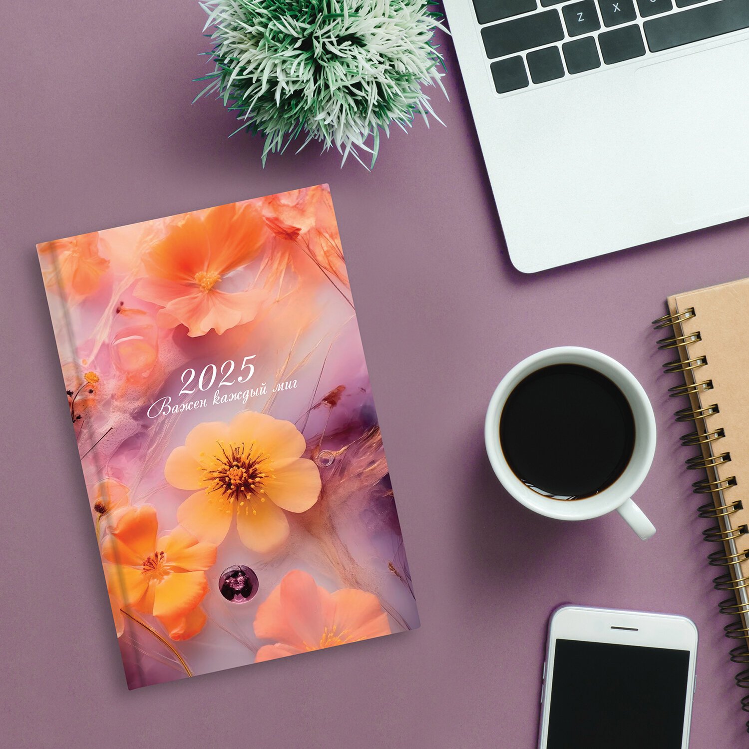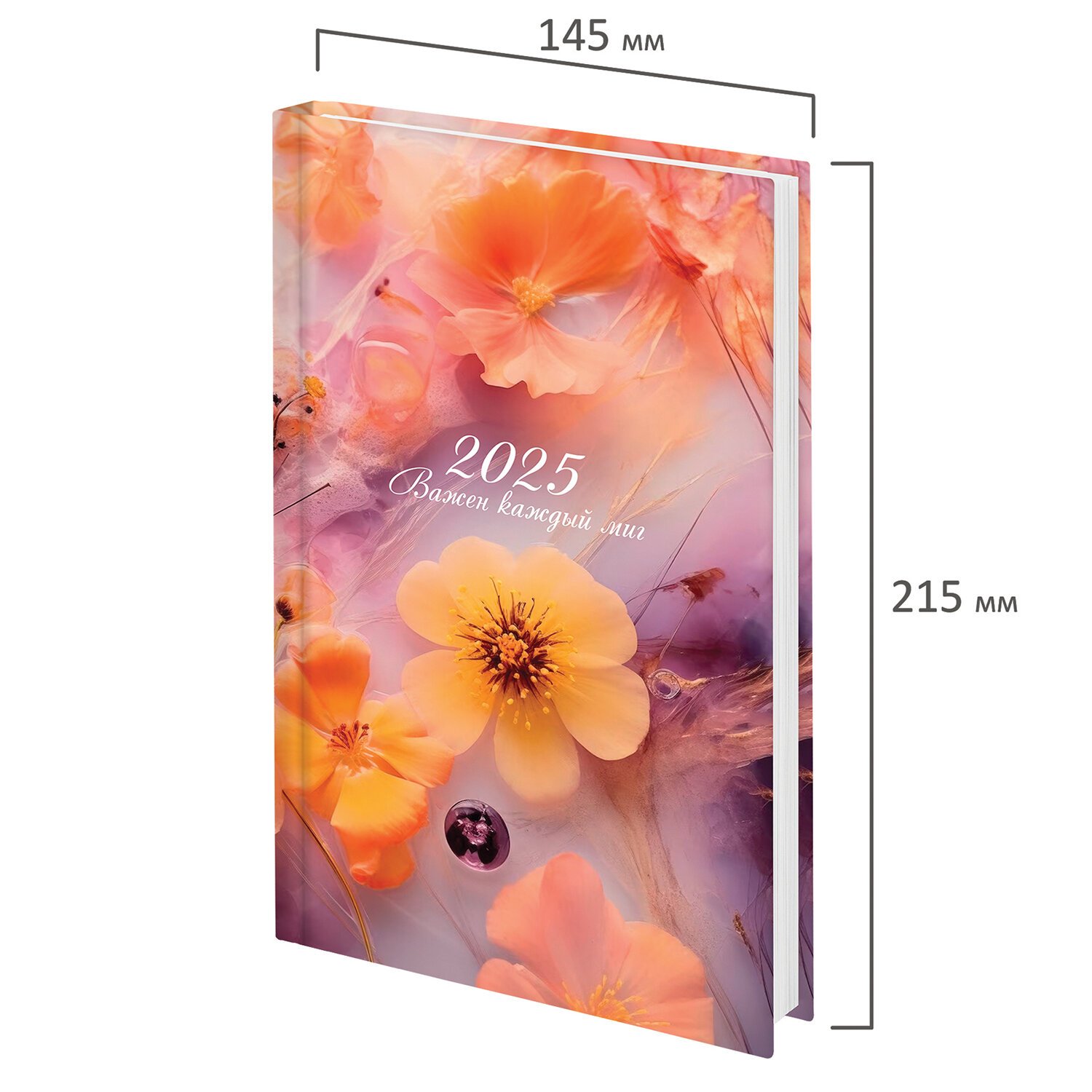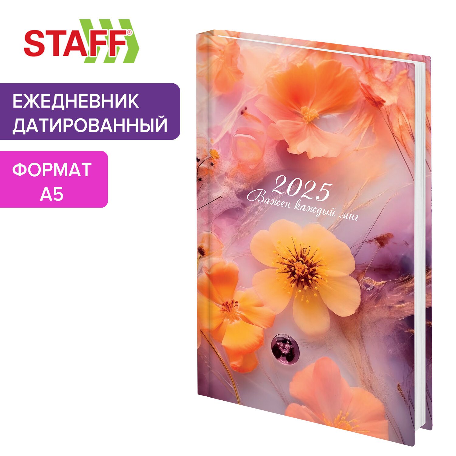 Ежедневник датированный 2025 145х215 мм, А5, STAFF, ламинированная обложка, "Ice flowers", 116030