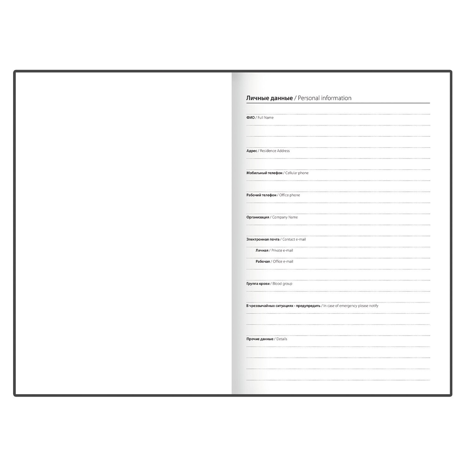 Внутренний блок включает 160 листов белой бумаги плотностью 60 г/м2. Благодаря стандартному формату А5 (145х215 мм) ежедневник удобно использовать как в офисе, так и на выездных деловых встречах. Твердая обложка покрыта глянцевой пленкой. Печать внутреннего блока – в одну краску.