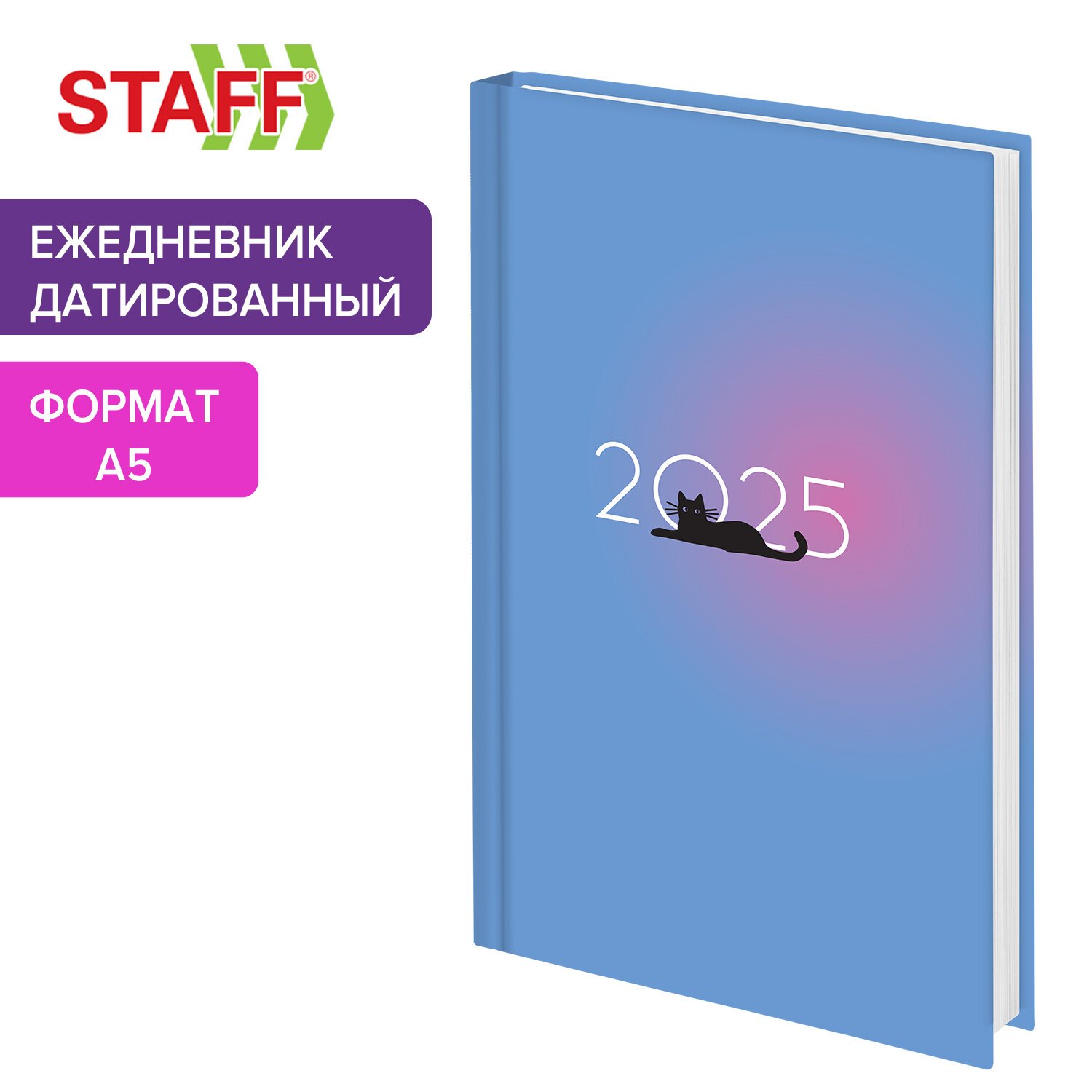 Ежедневник датированный 2025 145х215 мм, А5, STAFF, ламинированная обложка, "Котик", 116031