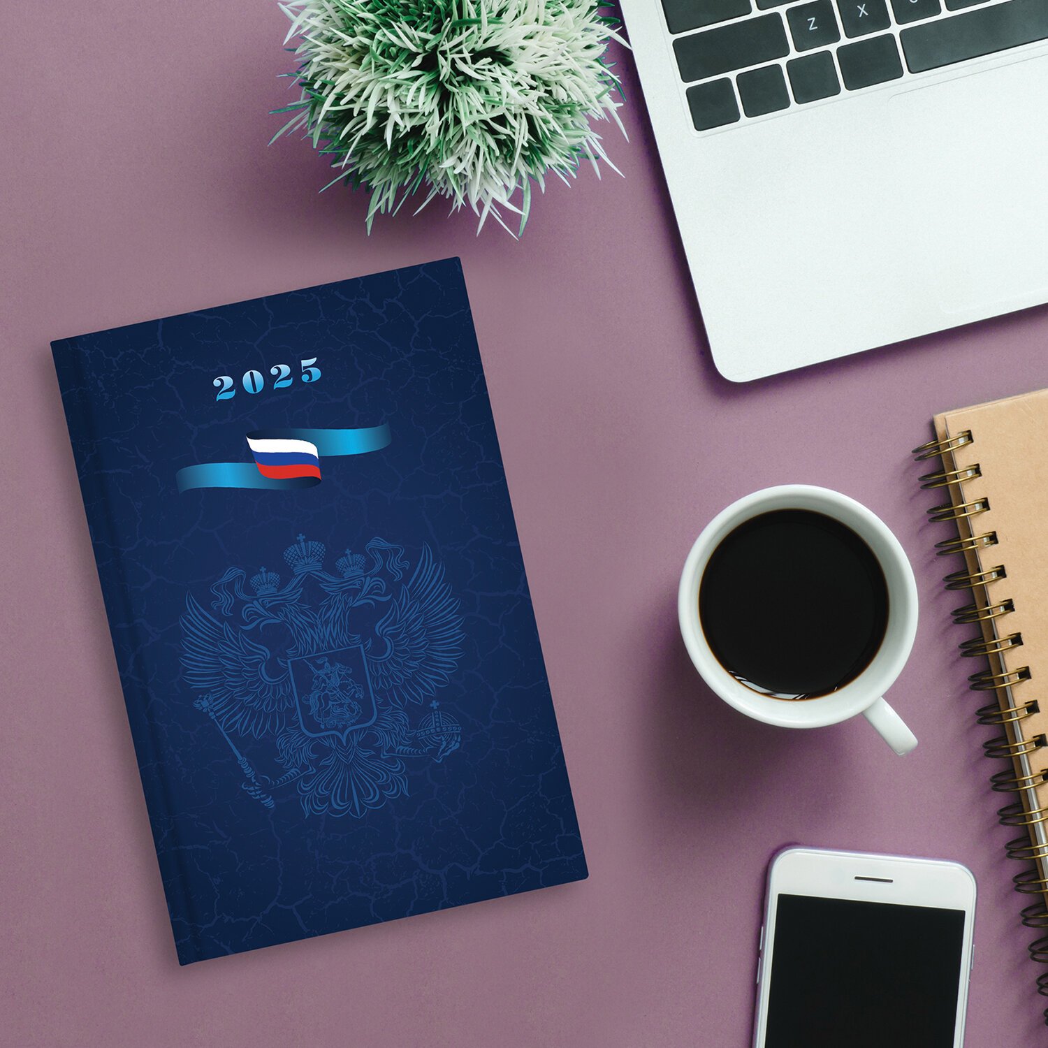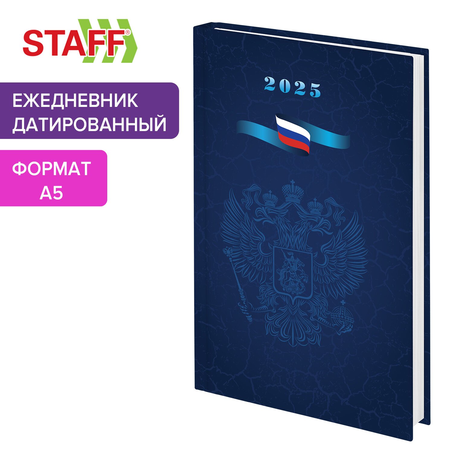 Ежедневник датированный 2025 145х215 мм, А5, STAFF, ламинированная обложка, "Символика РФ", 116019