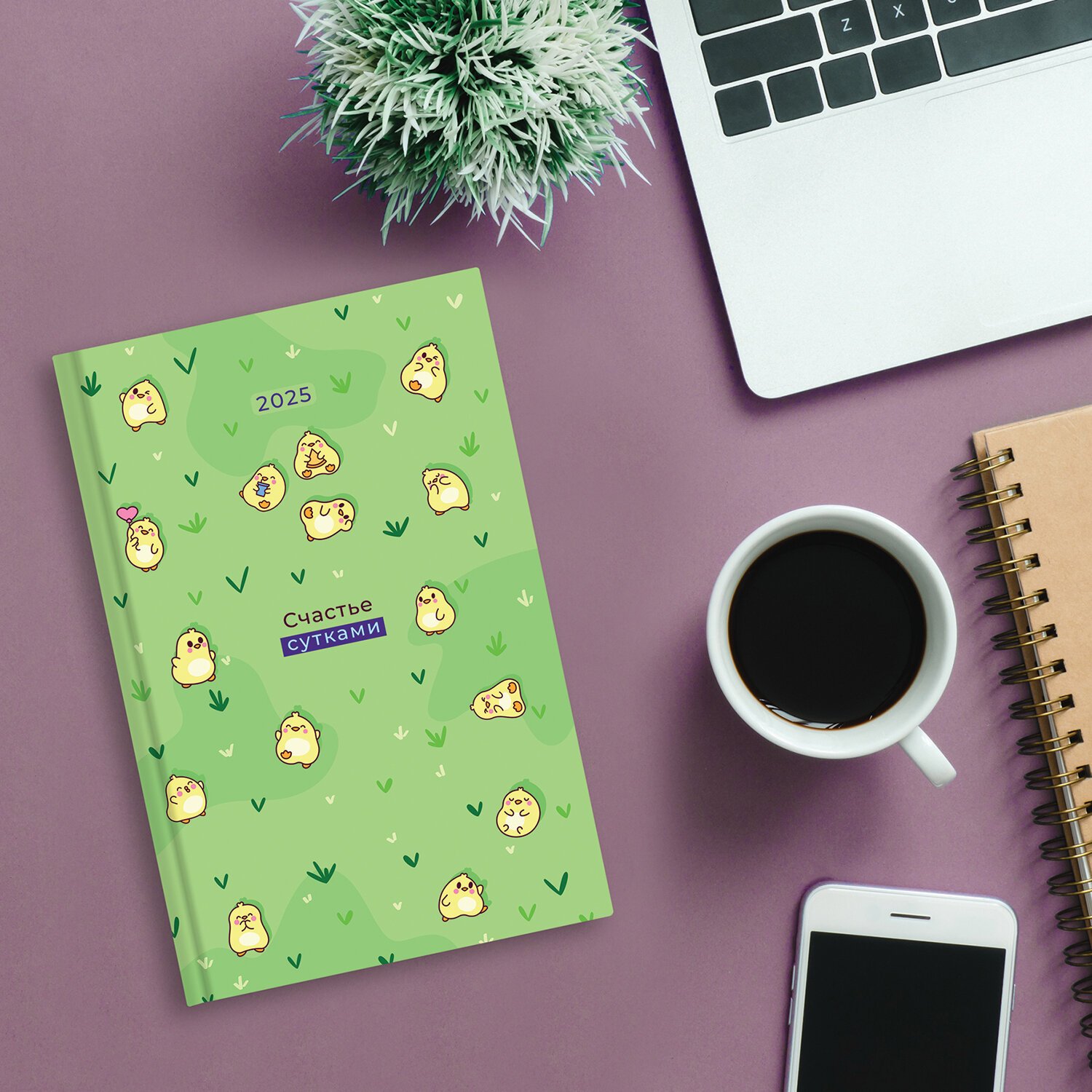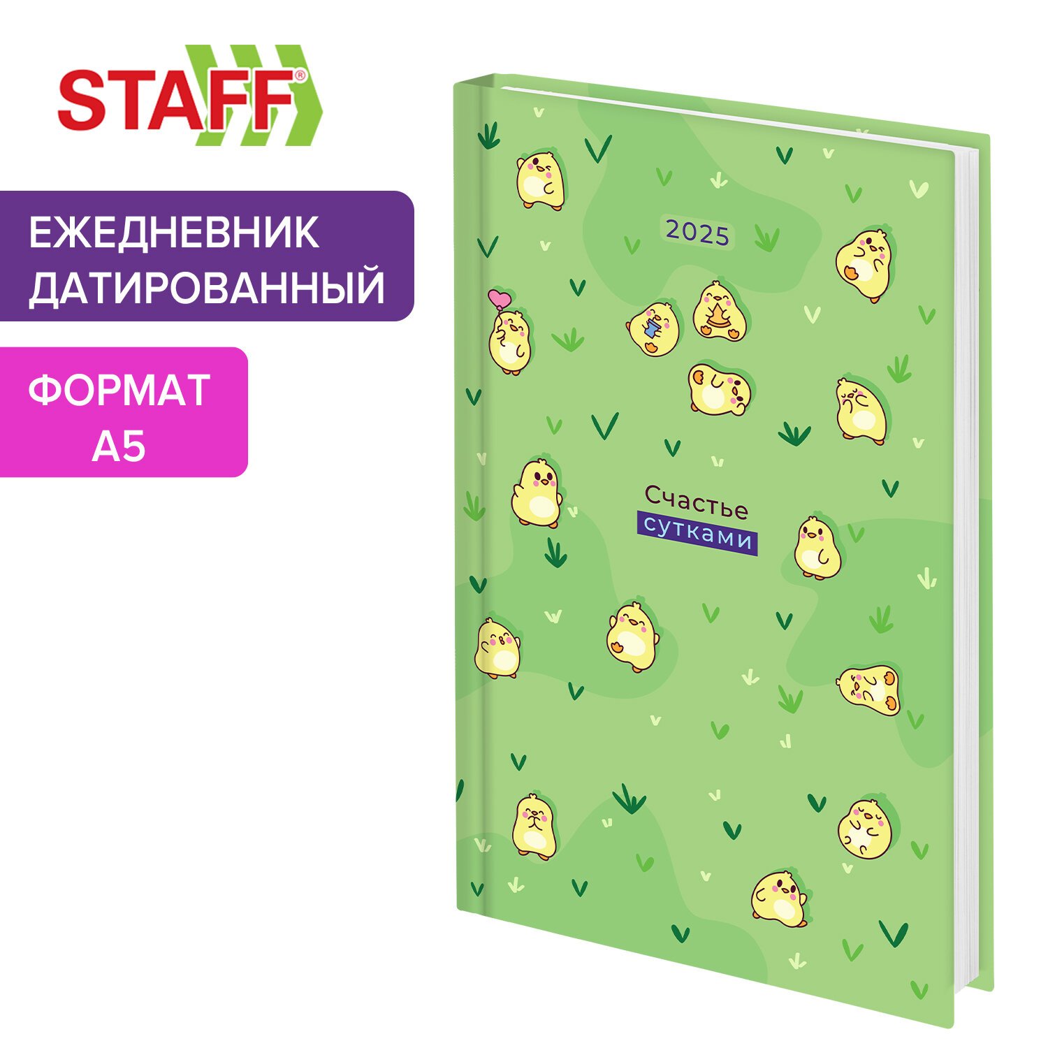 Ежедневник датированный 2025 145х215 мм, А5, STAFF, ламинированная обложка, "Утки", 116033