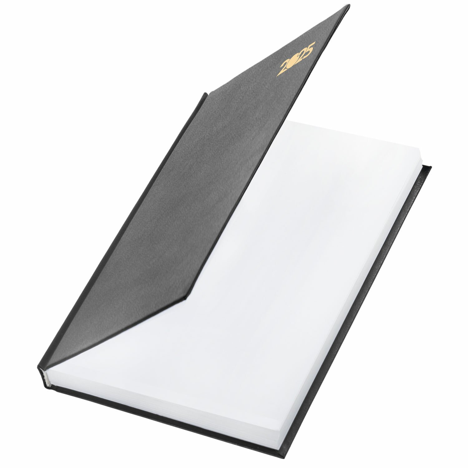 Внутренний блок включает 160 листов белой бумаги плотностью 60 г/м2. Благодаря стандартному формату А5 (145х215 мм) ежедневник удобно использовать как в офисе, так и на выездных деловых встречах. Выполнен в строгом классическом черном цвете с тиснением. Жесткая книжная обложка, покрытая бумвинилом, делает данный ежедневник надежным и практичным в применении. Материал обложки подходит для тиснения фольгой.