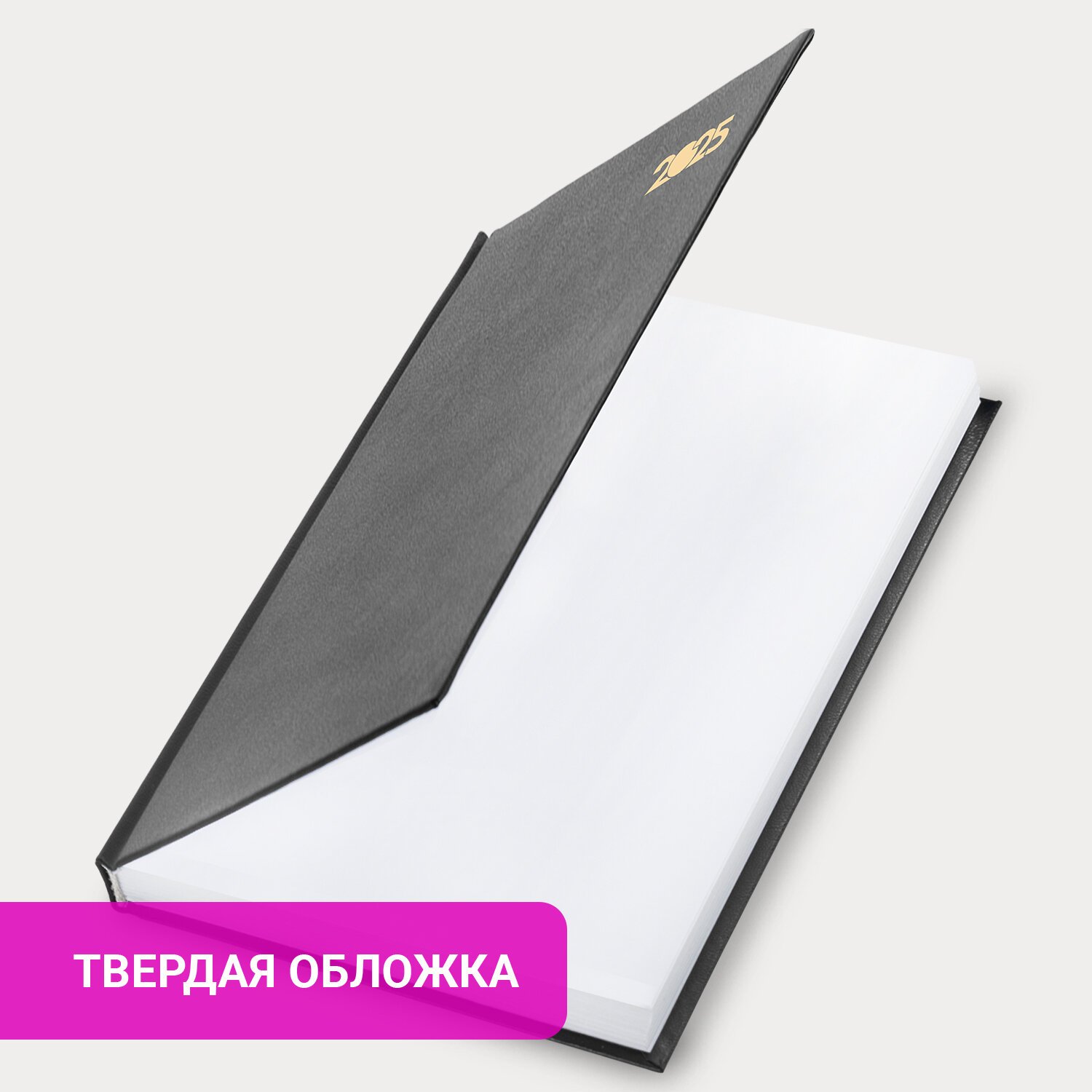 Ежедневник датированный 2025 145х215 мм, А5, STAFF, обложка бумвинил, черный, 116015
