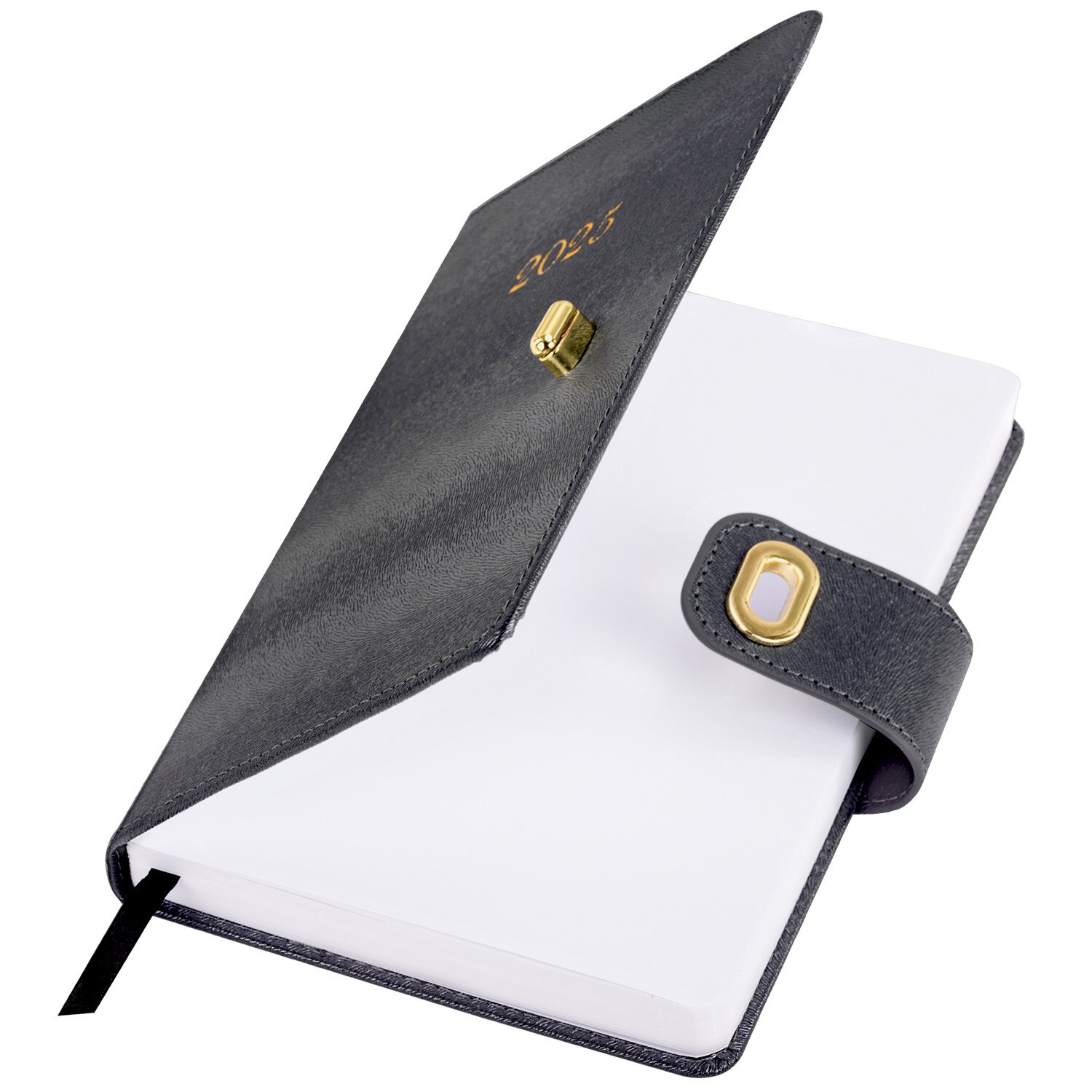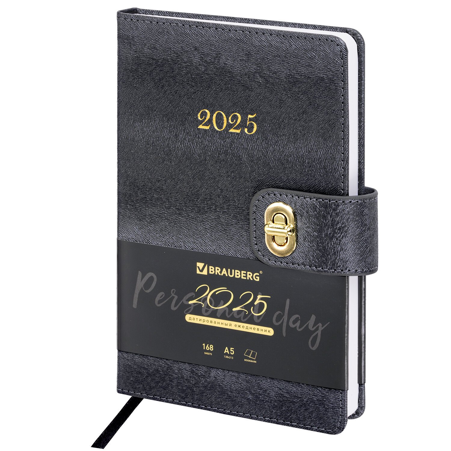 Ежедневник датированный 2025, А5, 138х213 мм, BRAUBERG "Elegant", под кожу, застежка, черный, 115938