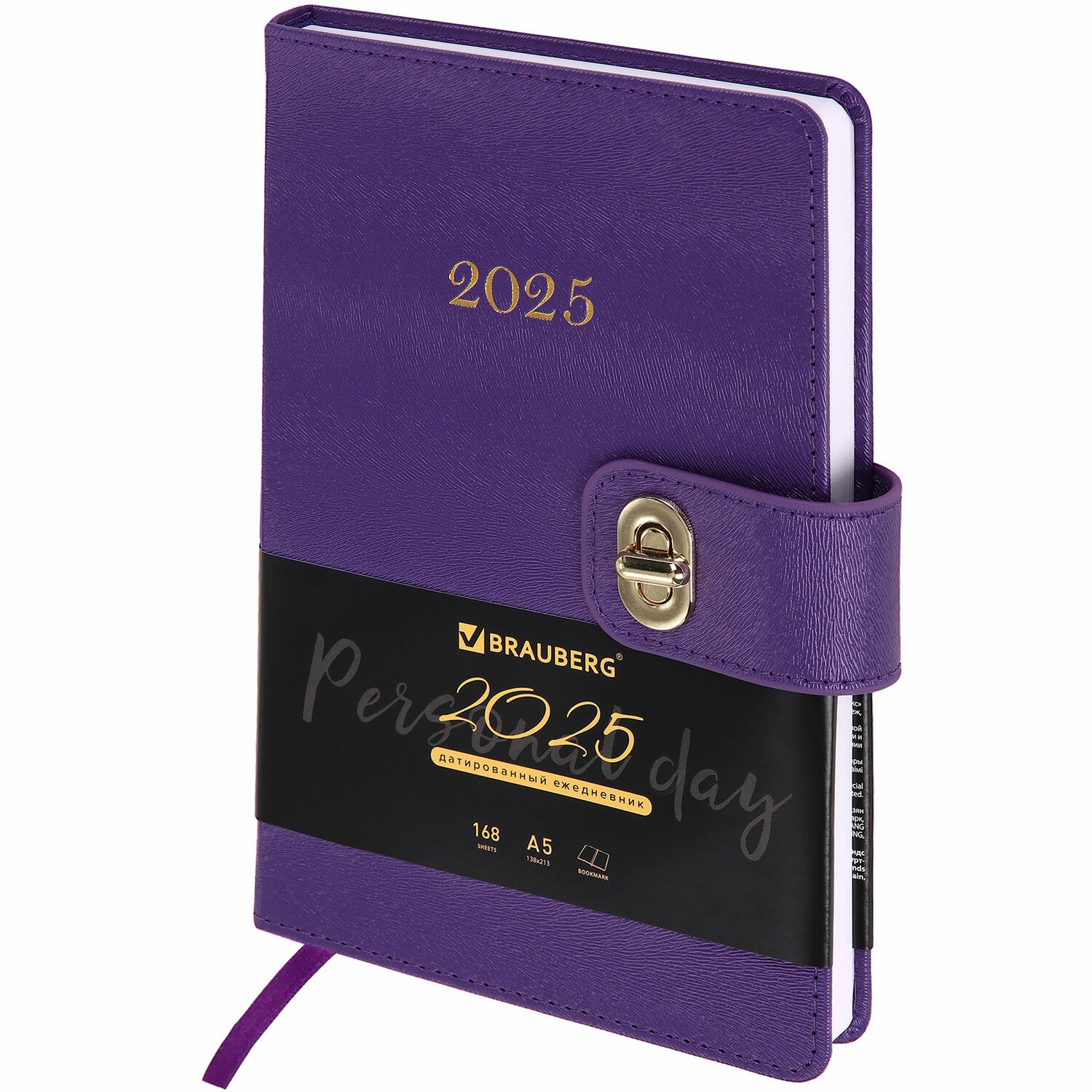 Ежедневник датированный 2025, А5, 138х213 мм, BRAUBERG "Elegant", под кожу, застежка, фиолетовый, 115940