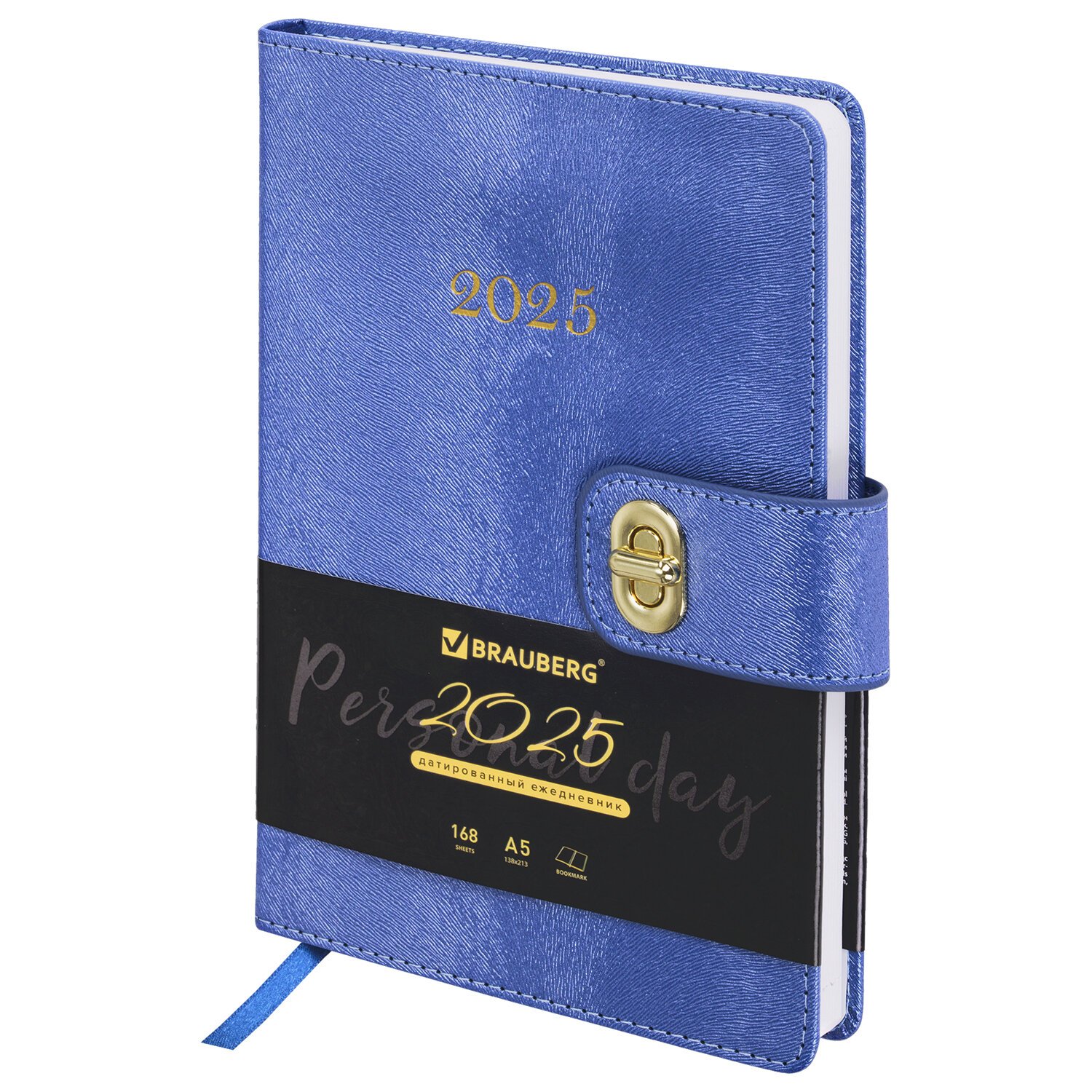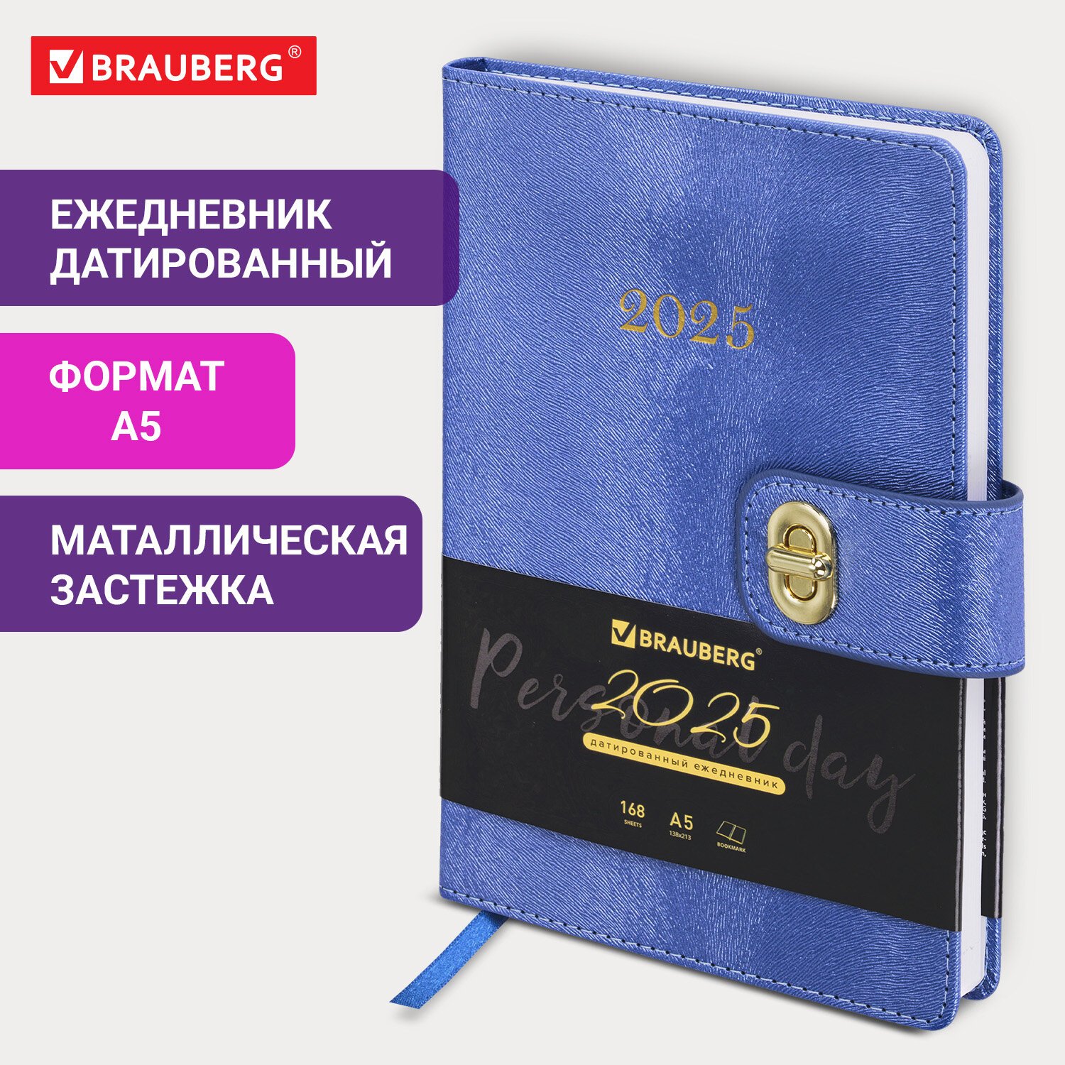 Ежедневник датированный 2025, А5, 138х213 мм, BRAUBERG "Elegant", под кожу, застежка, темно-синий, 115936