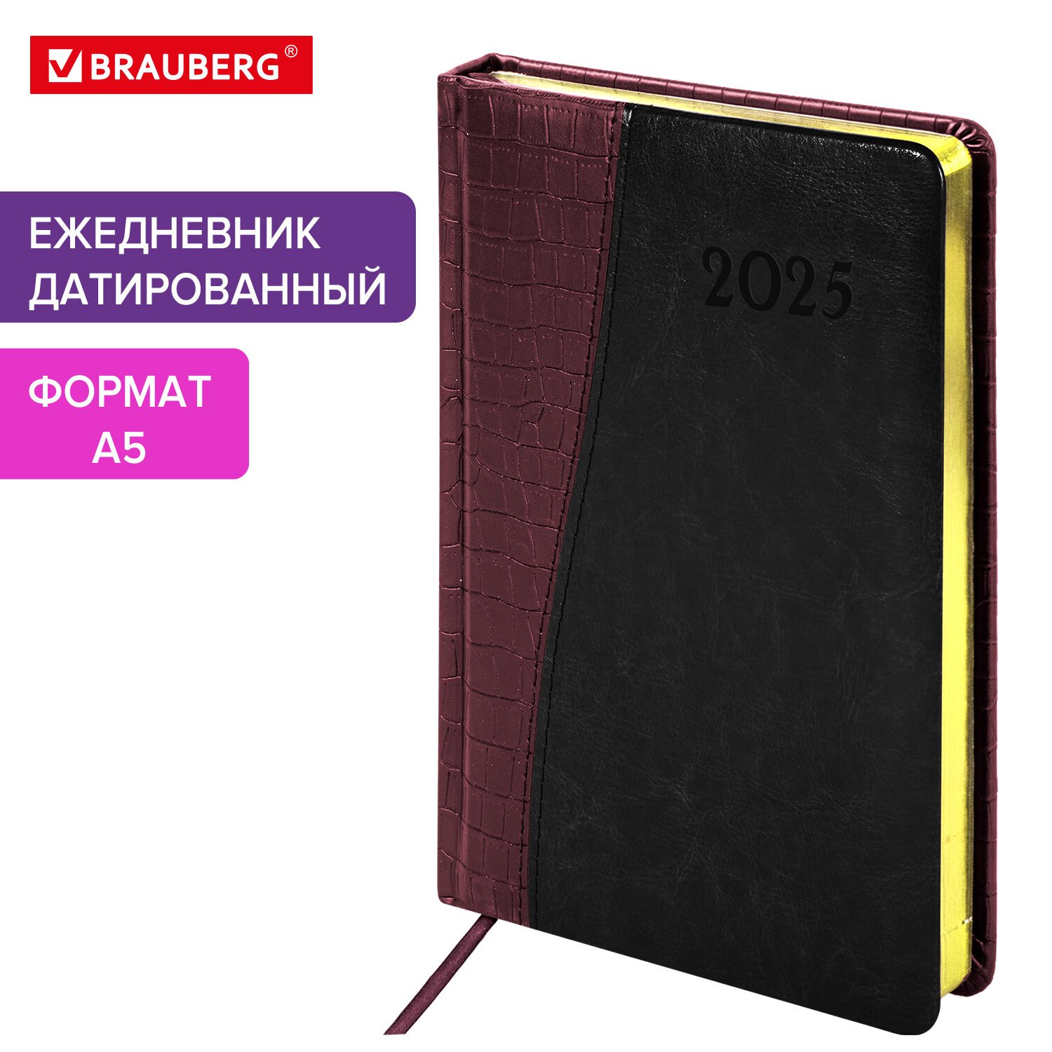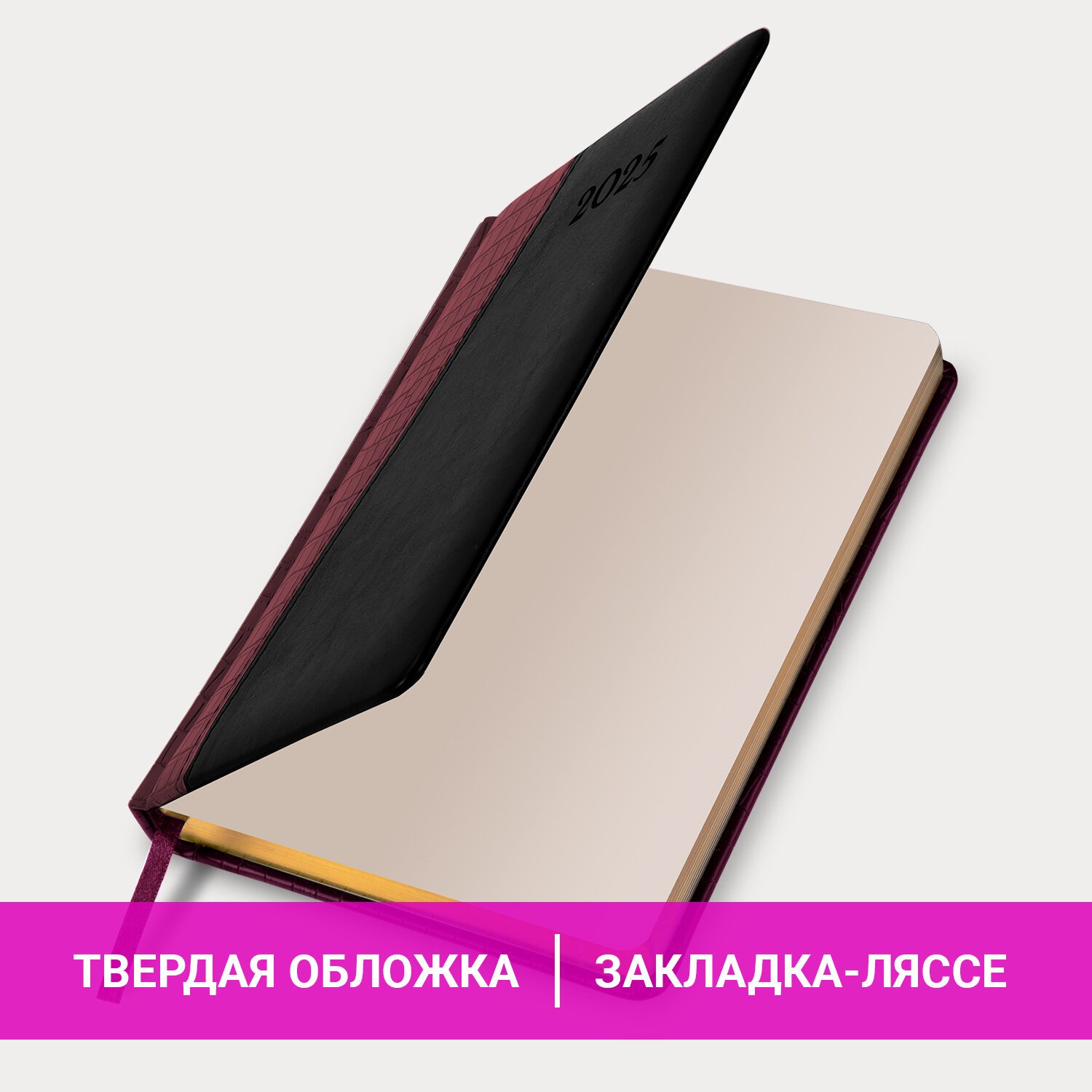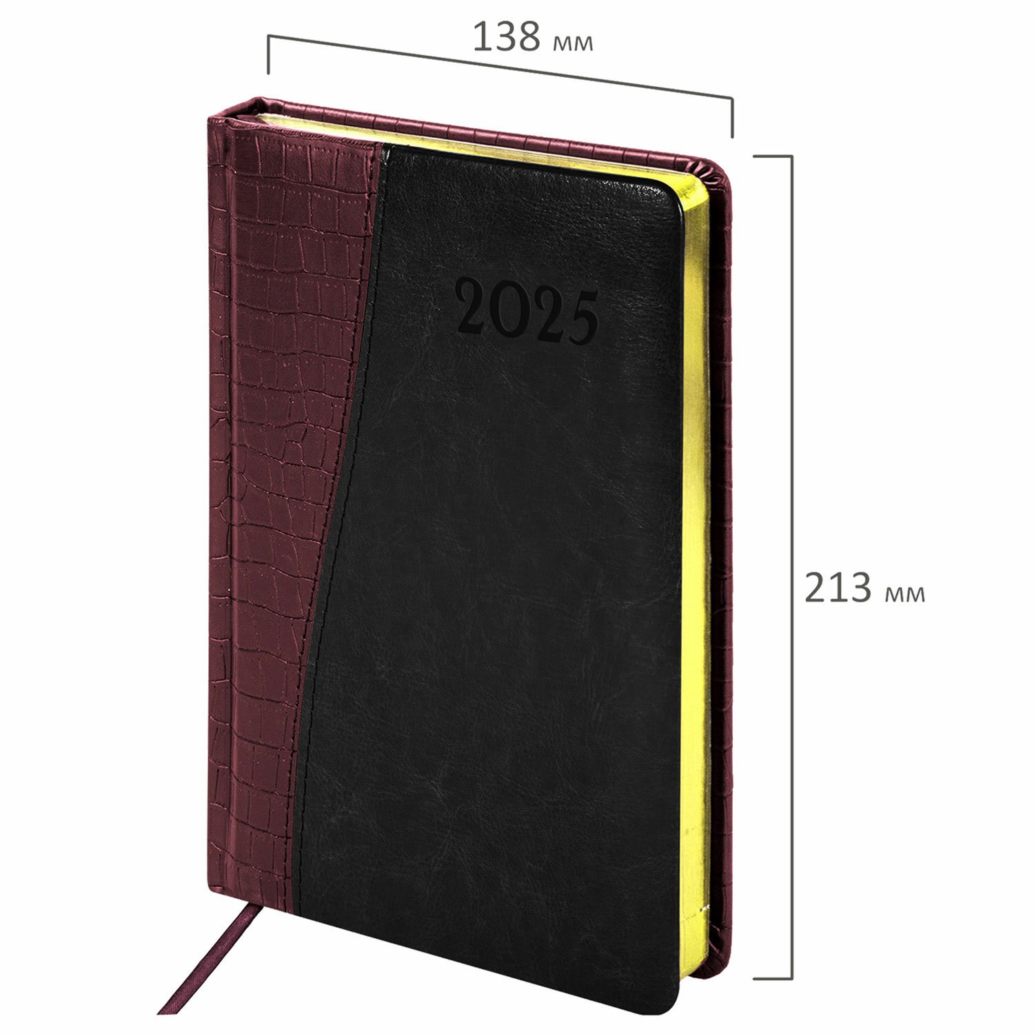Ежедневник датированный 2025, А5, 138x213 мм, BRAUBERG "Cayman", под кожу, бордовый/черный, 115771