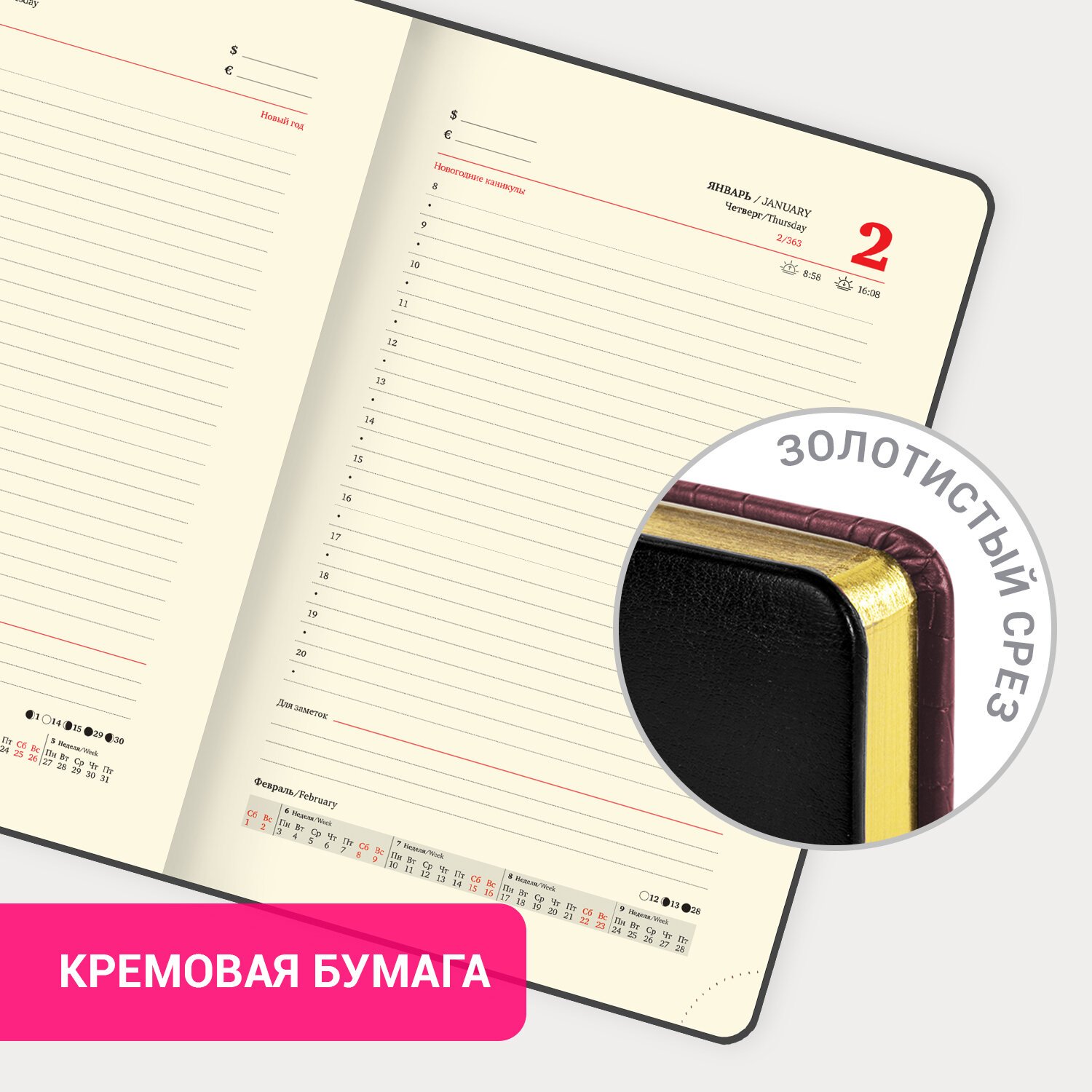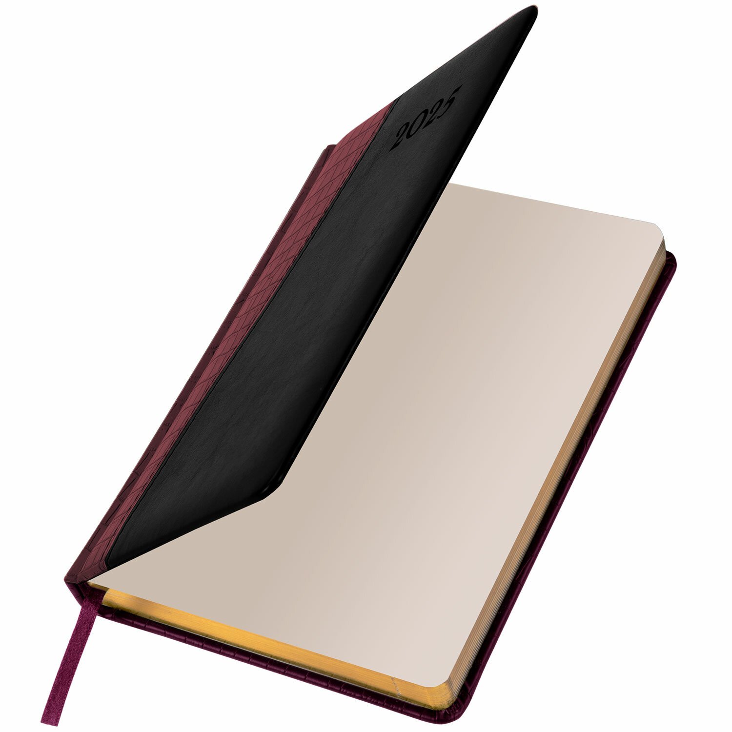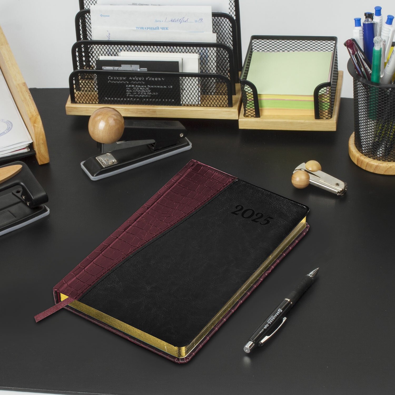 Ежедневник датированный 2025, А5, 138x213 мм, BRAUBERG "Cayman", под кожу, бордовый/черный, 115771