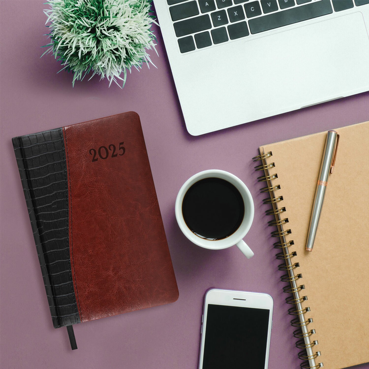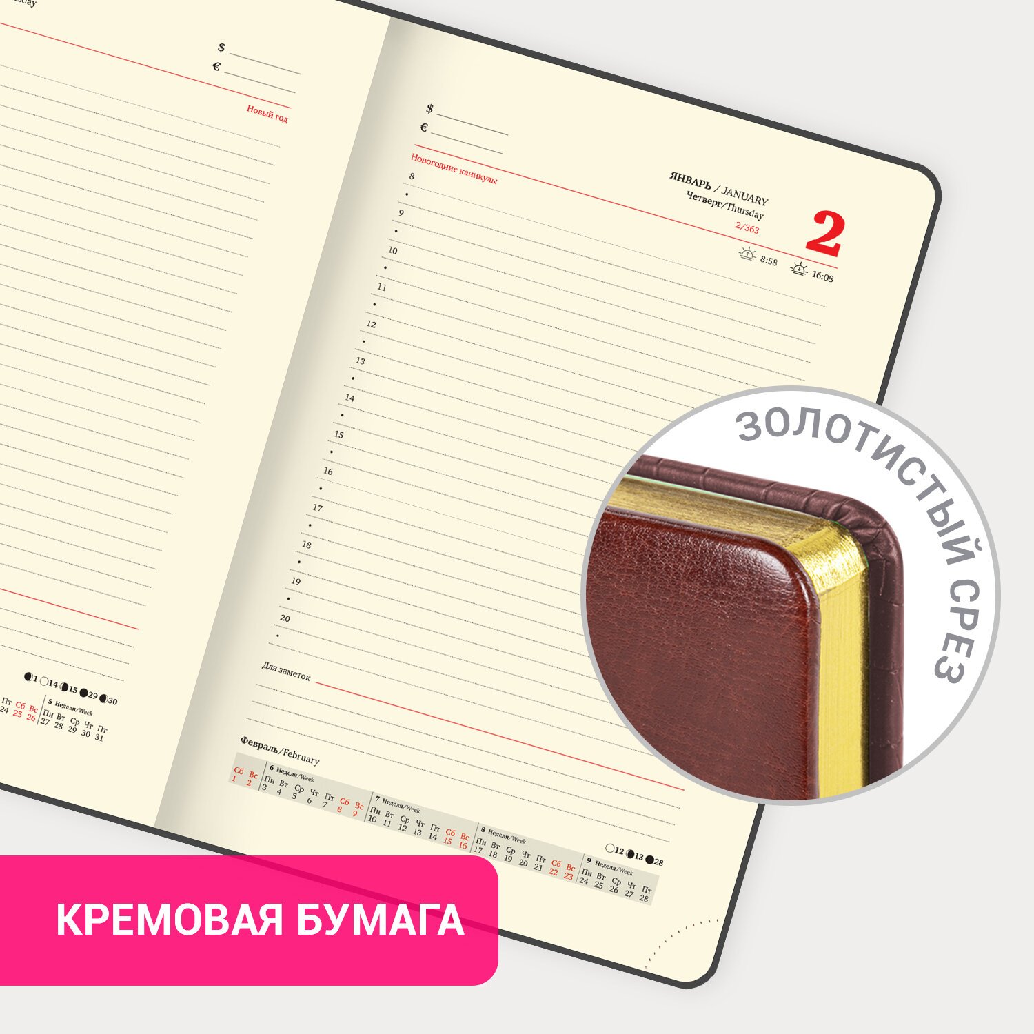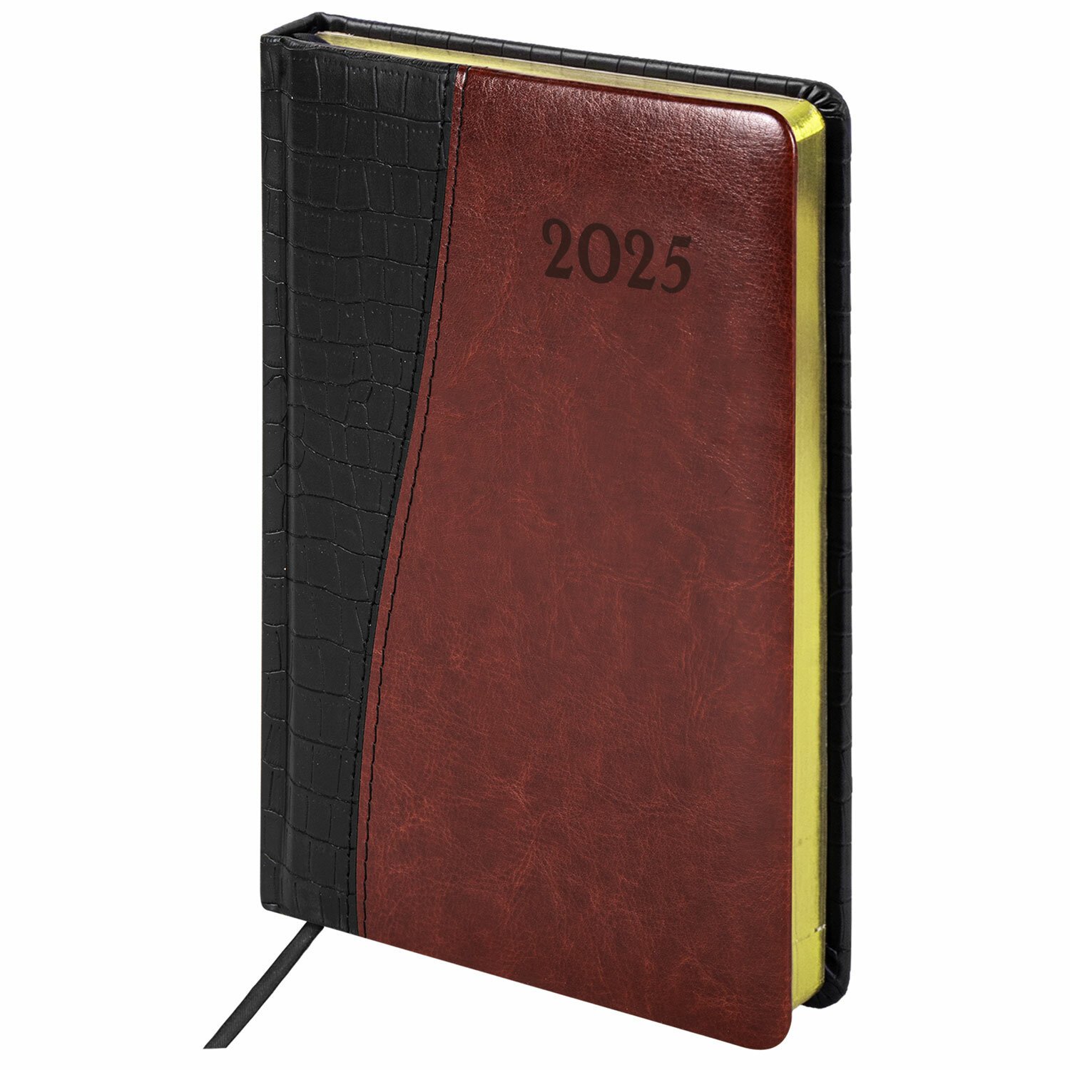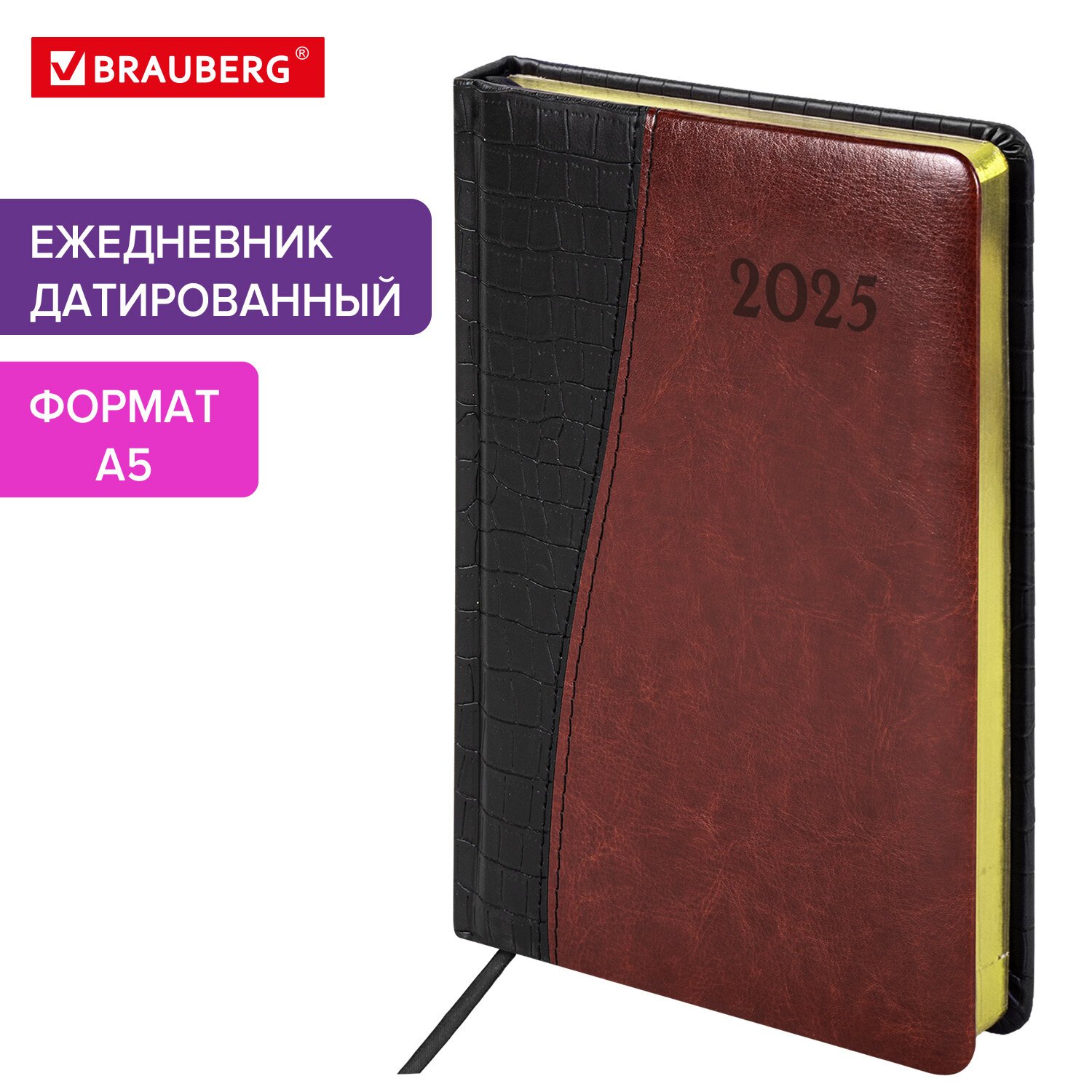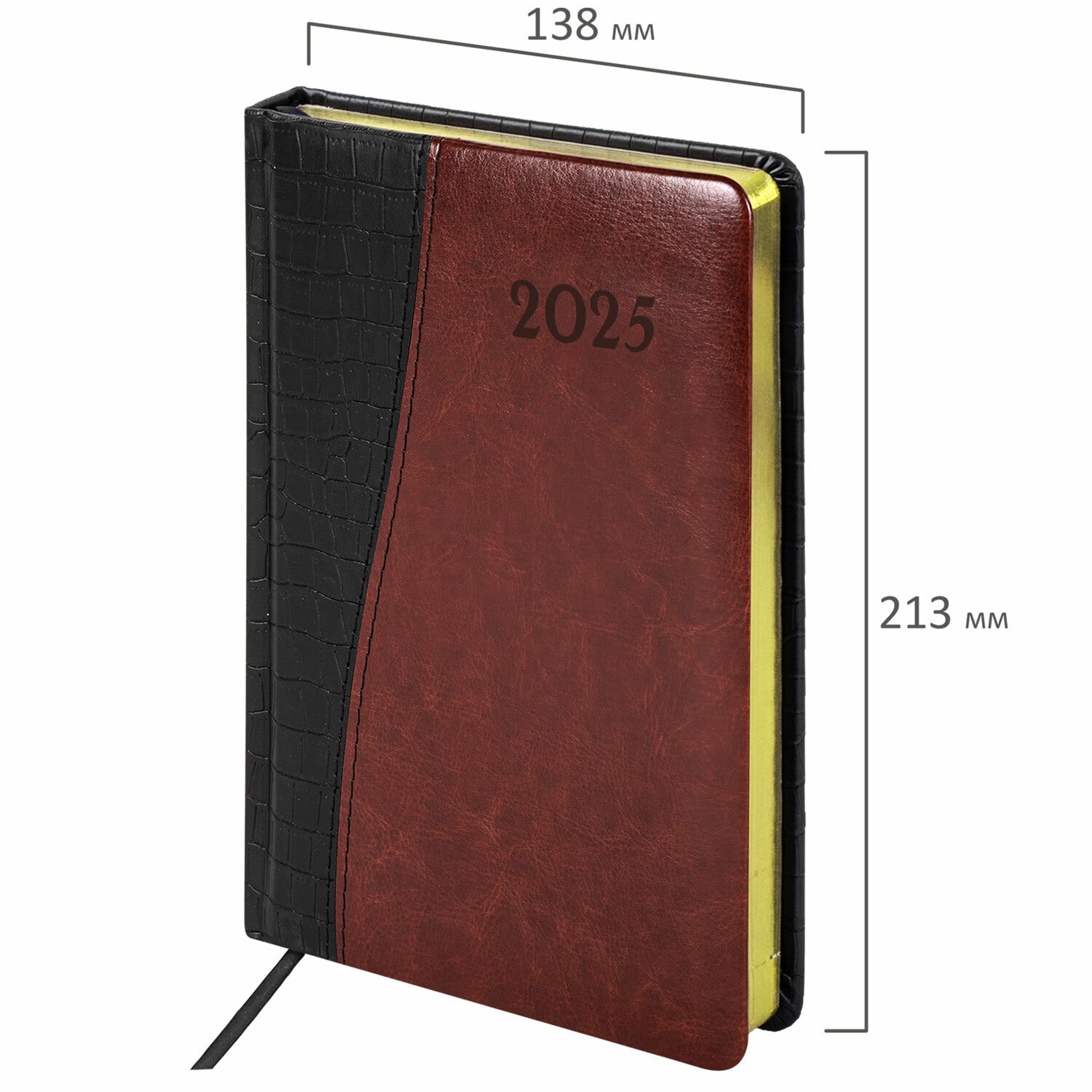 Ежедневник датированный 2025, А5, 138x213 мм, BRAUBERG "Cayman", под кожу, черный/коричневый, 115770