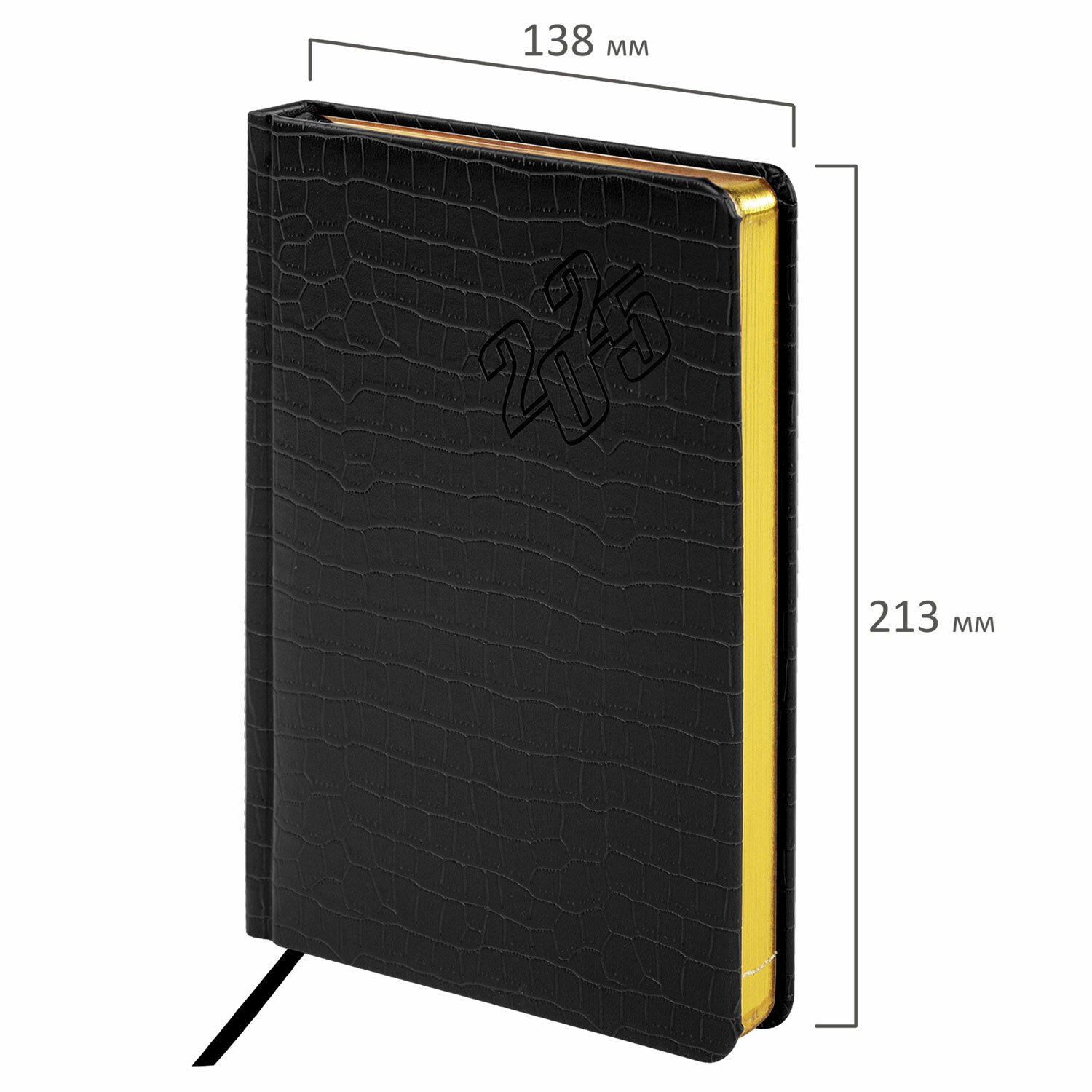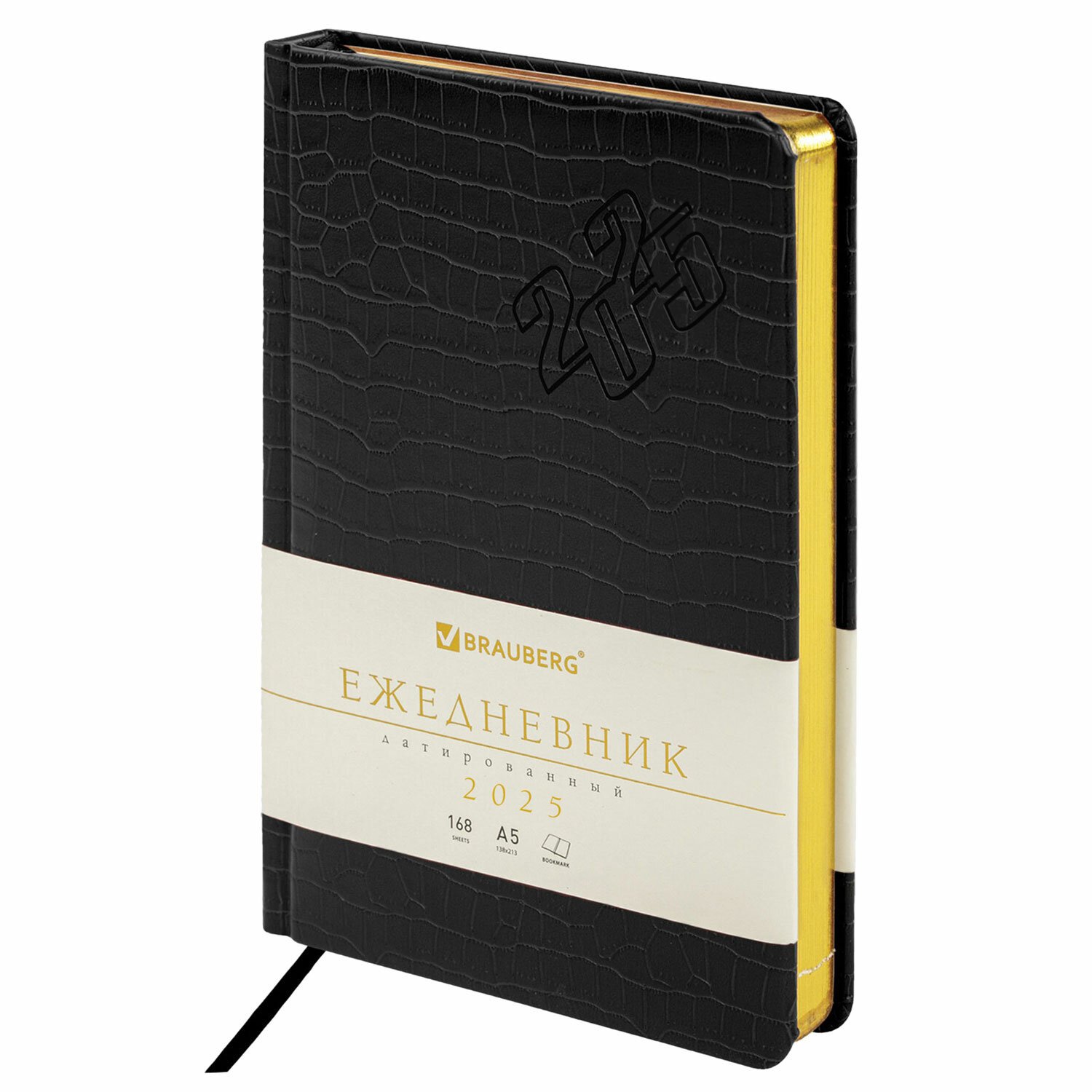 Ежедневник датированный 2025, А5, 138x213 мм, BRAUBERG "Comodo", под кожу, черный, 115775