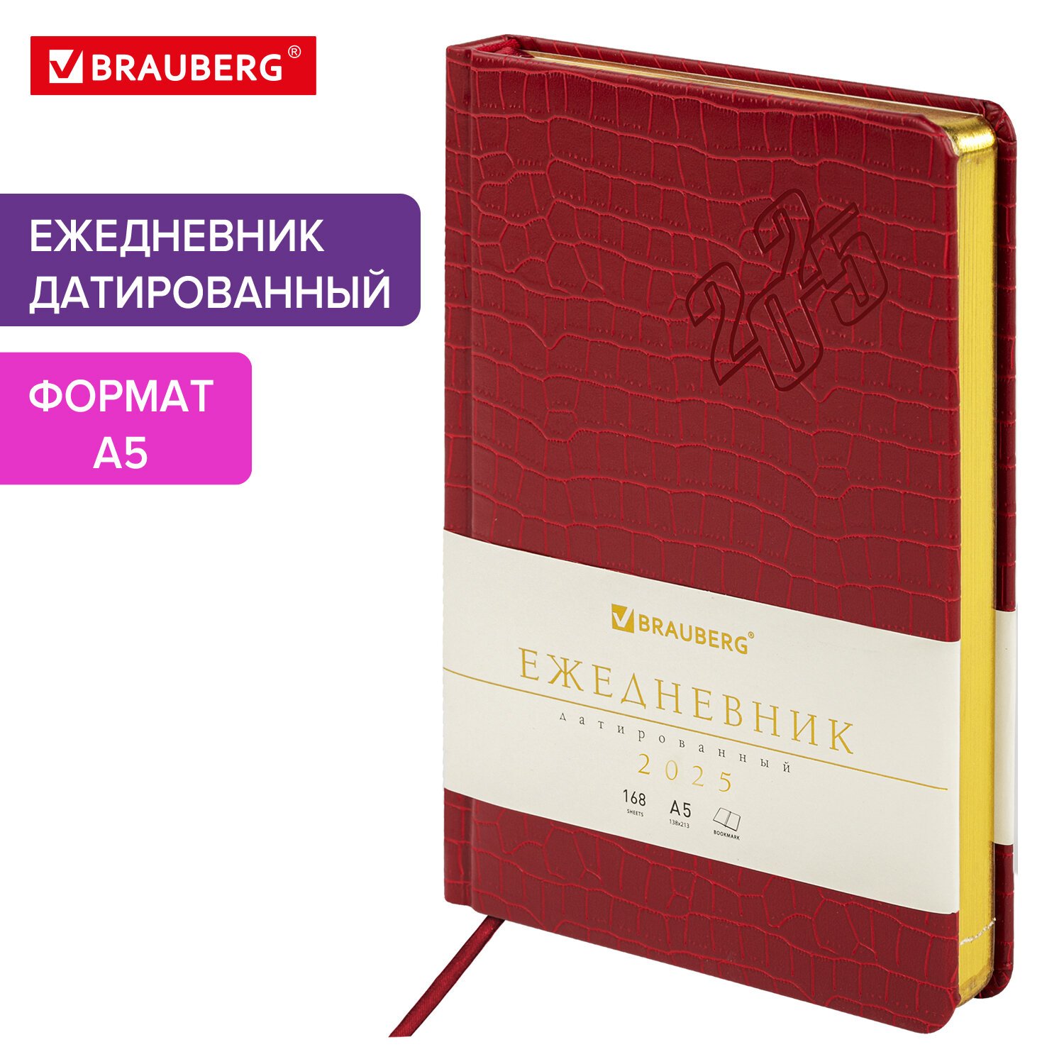 Ежедневник датированный 2025, А5, 138x213 мм, BRAUBERG "Comodo", под кожу, красный, 115773