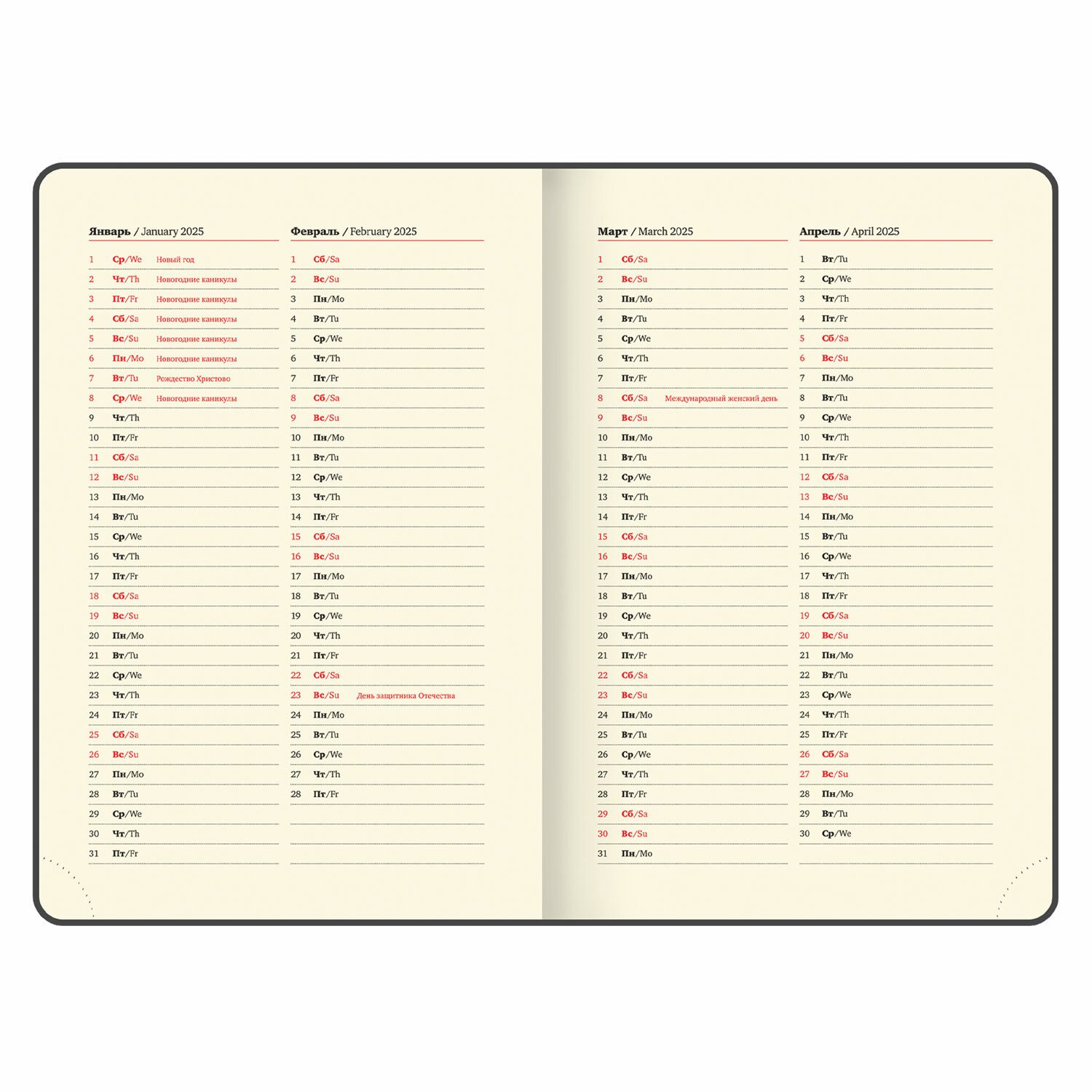 | Тип ежедневника | датированный |