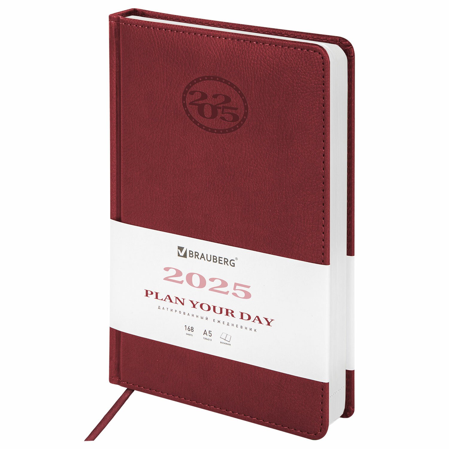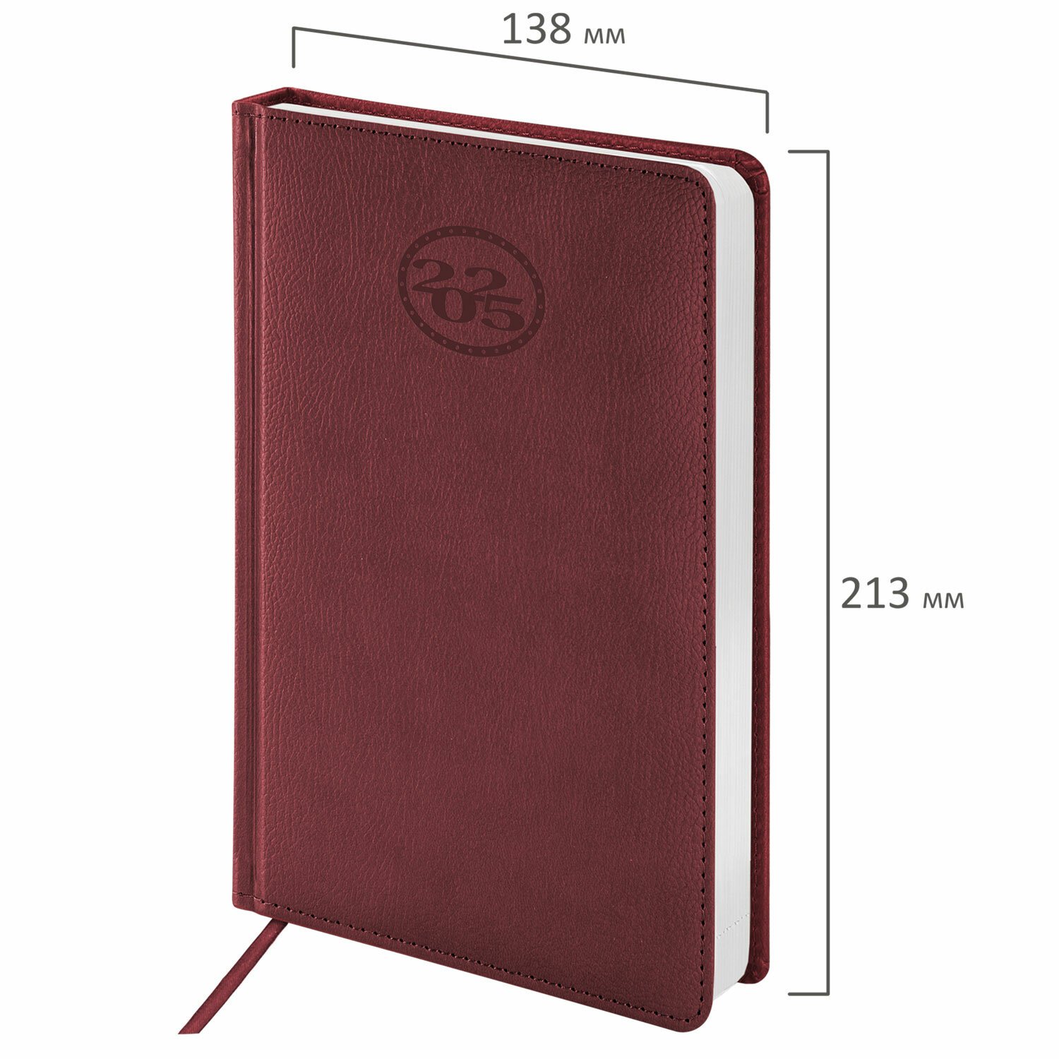 Ежедневник датированный 2025, А5, 138x213 мм, BRAUBERG "Favorite", под кожу, бордовый, 115759
