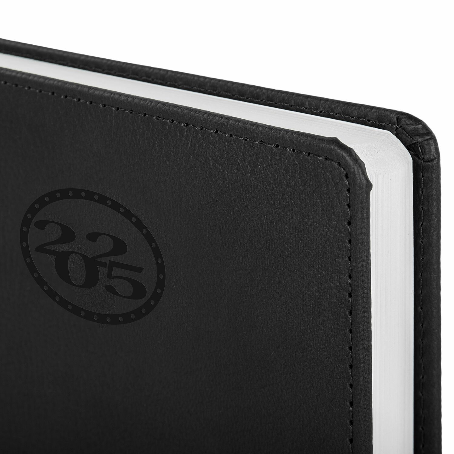 Внутренний блок включает 168 листов белой бумаги плотностью 70 г/м2. Каждая страничка имеет перфорированный угол. Благодаря стандартному формату А5 ежедневник удобно использовать как в офисе, так и на выездных деловых встречах. Обложка с прошивкой по периметру имеет ярко выраженную текстуру под кожу, приятную на ощупь. Материал обложки подходит для горячего тиснения.