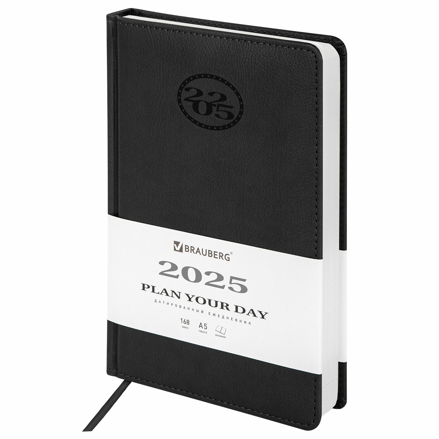 Ежедневник датированный 2025, А5, 138x213 мм, BRAUBERG "Favorite", под кожу, черный, 115762