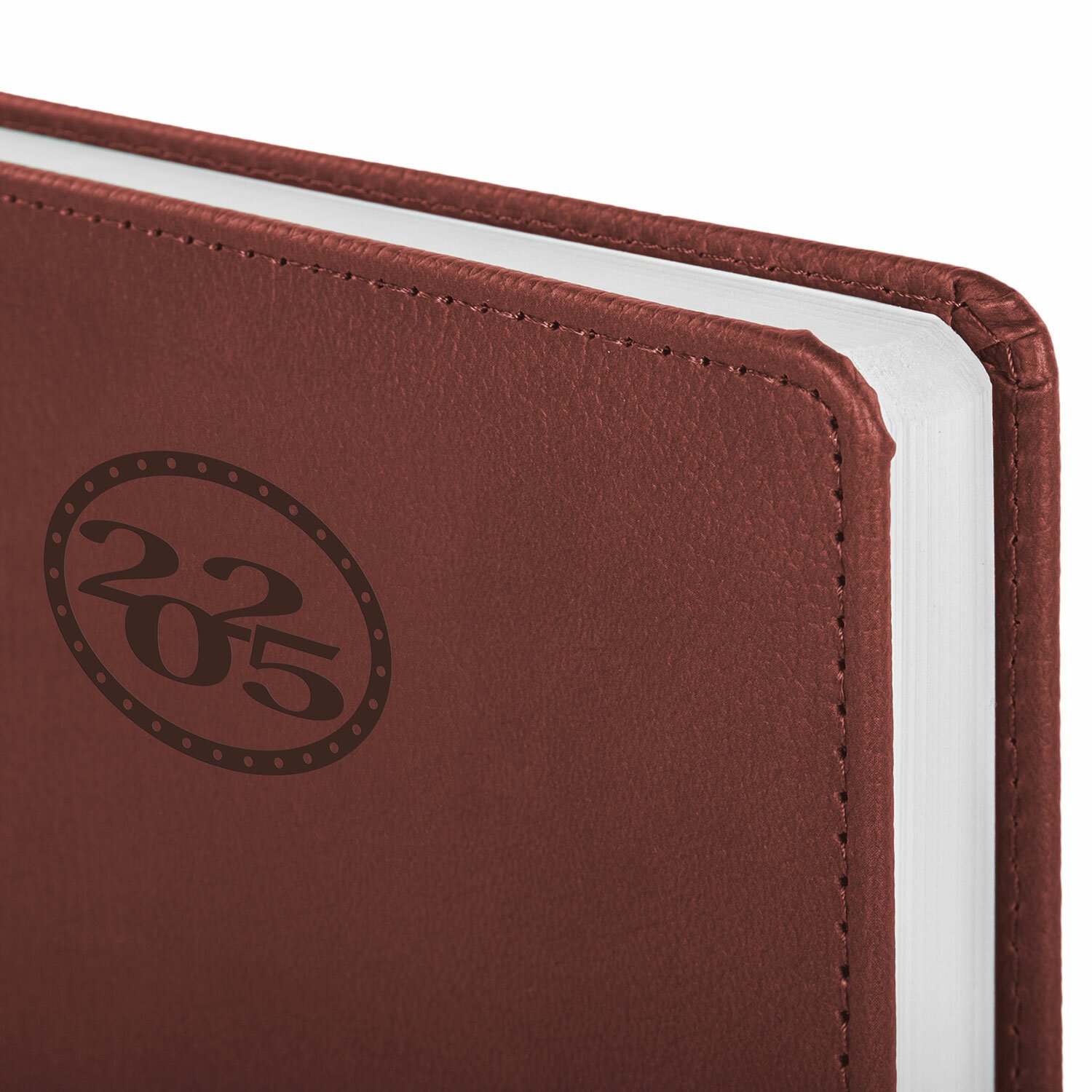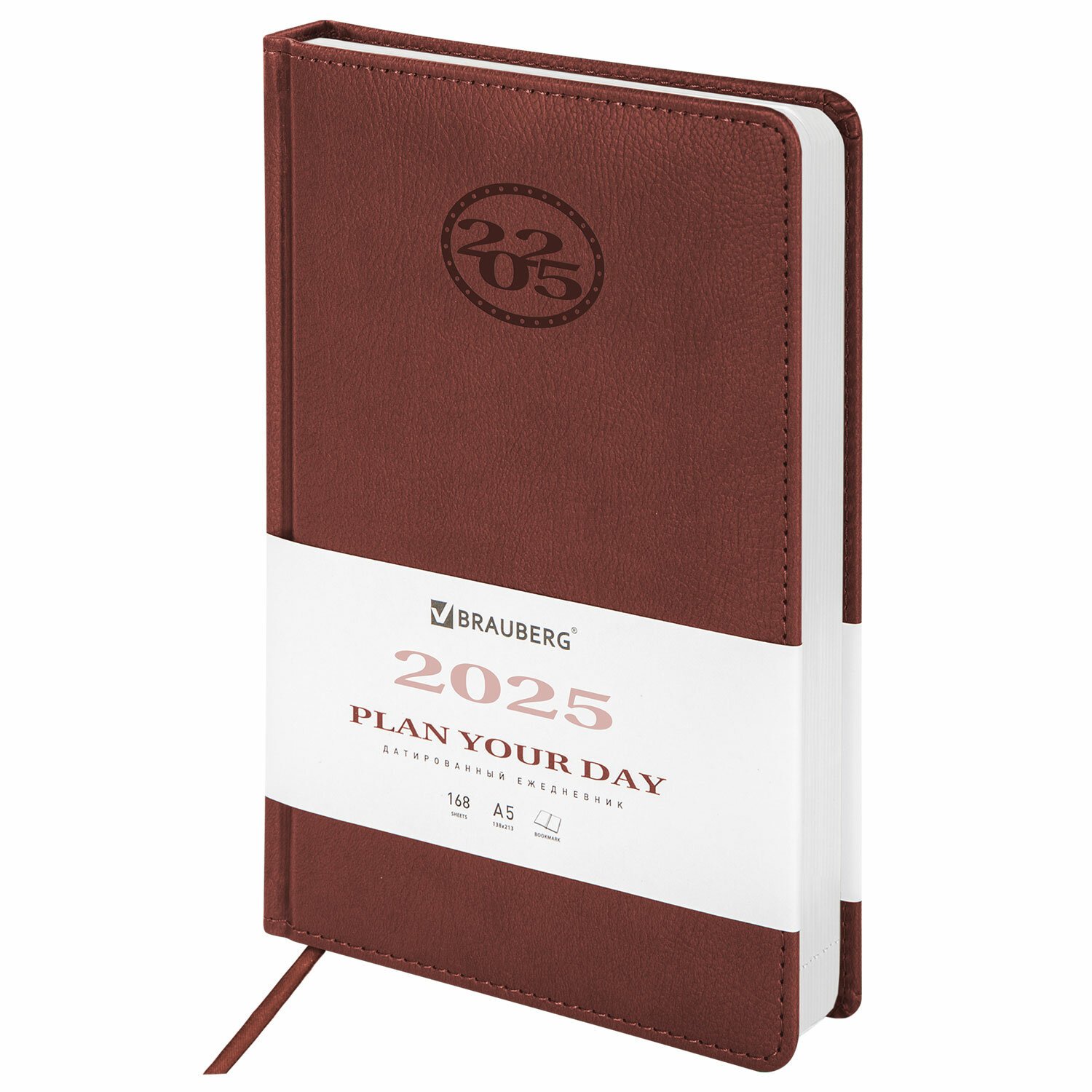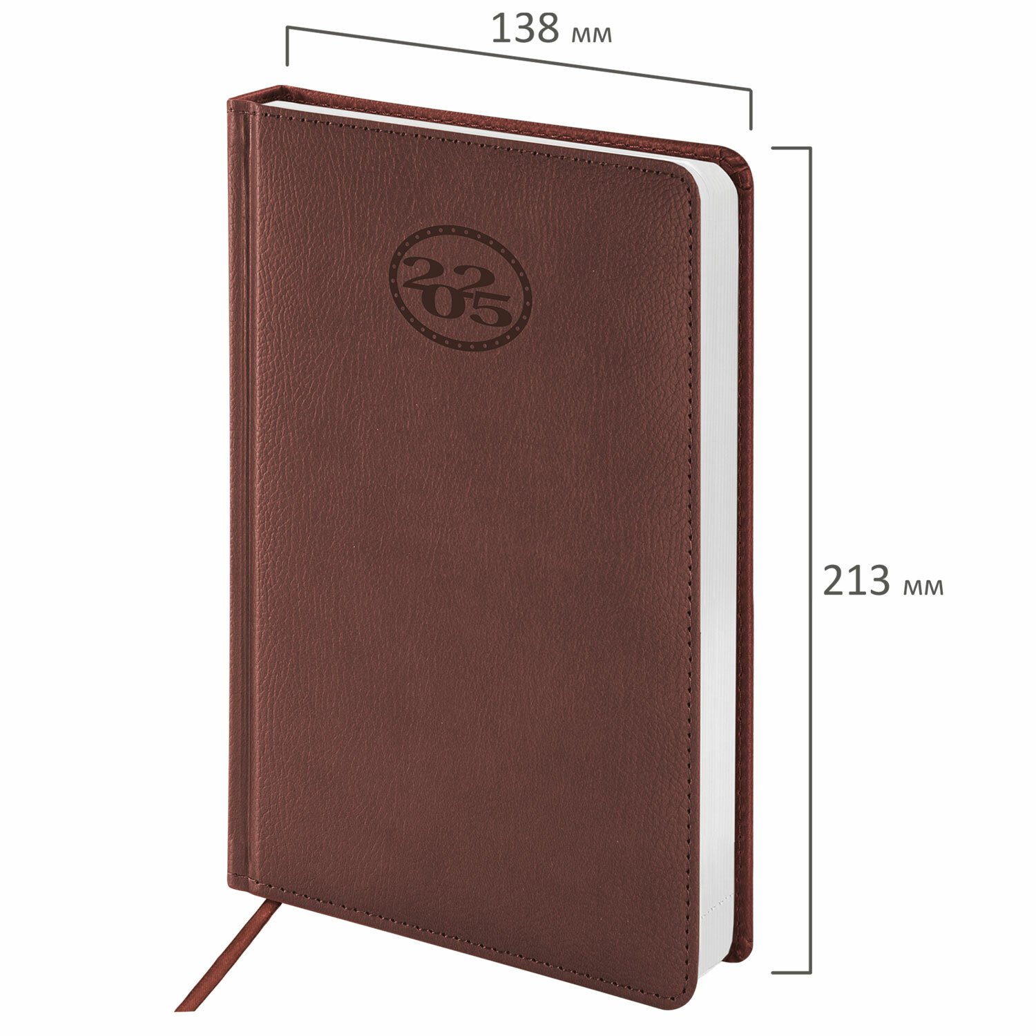 Ежедневник датированный 2025, А5, 138x213 мм, BRAUBERG "Favorite", под кожу, коричневый, 115760