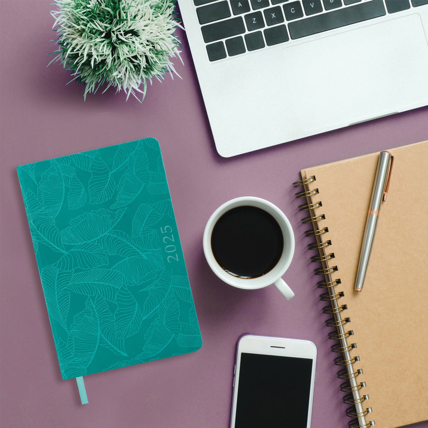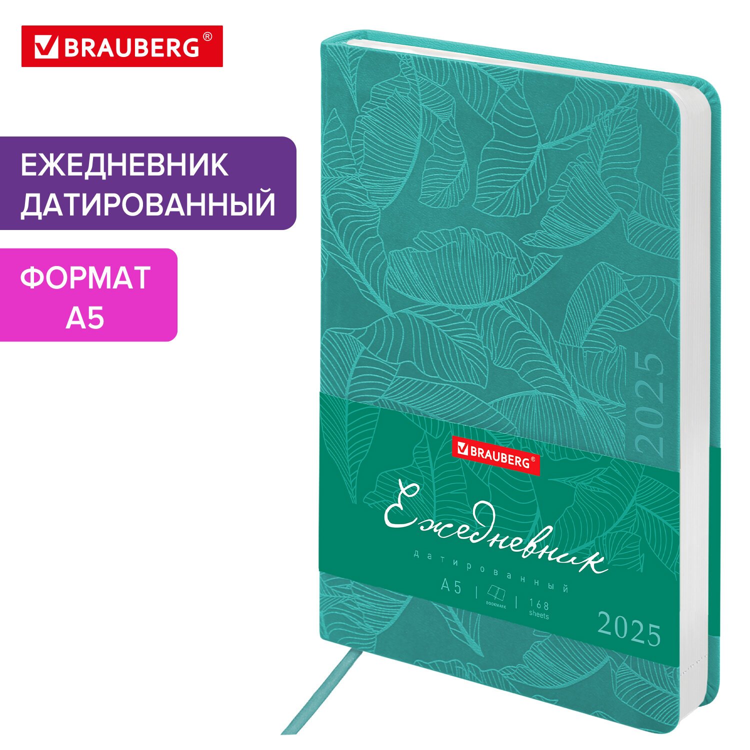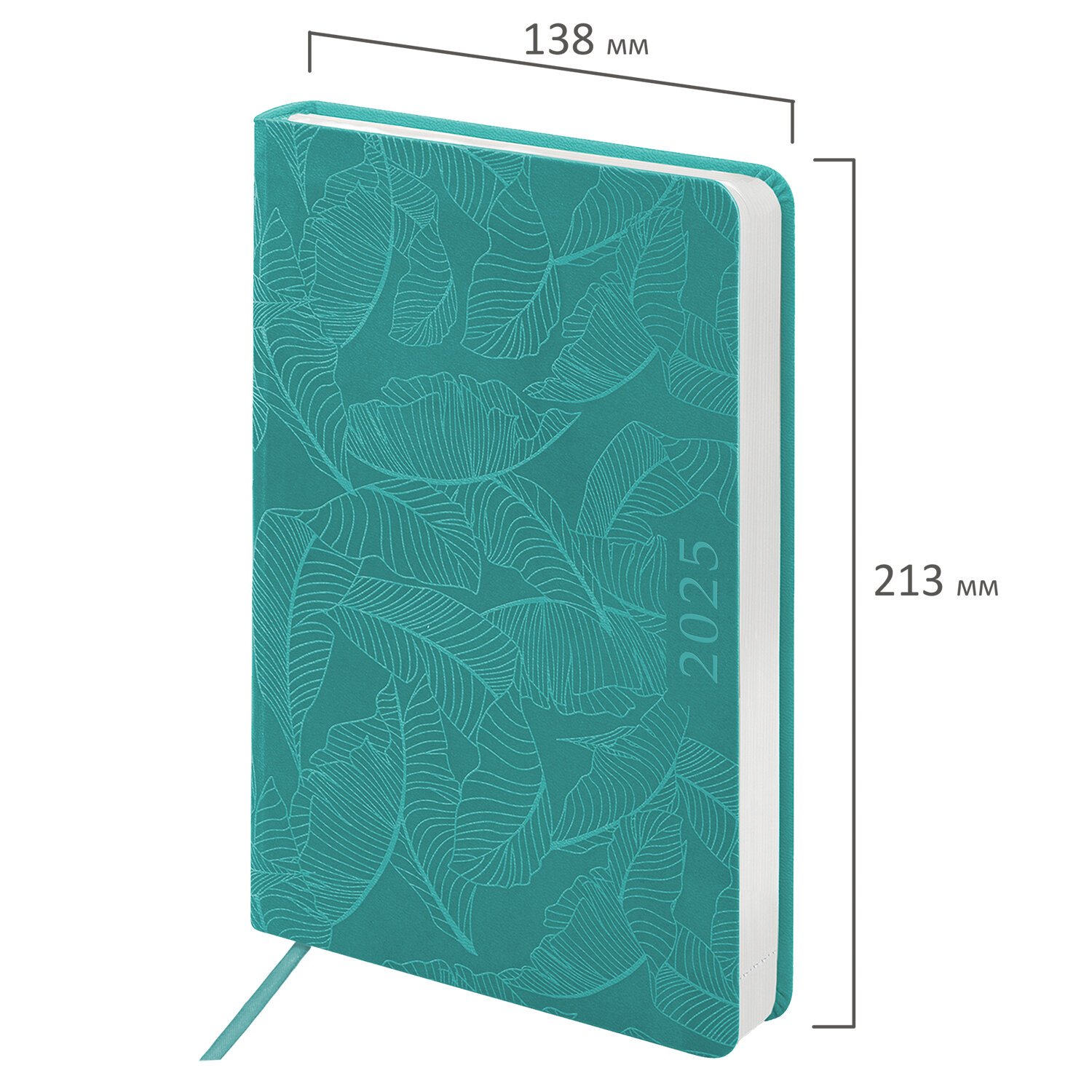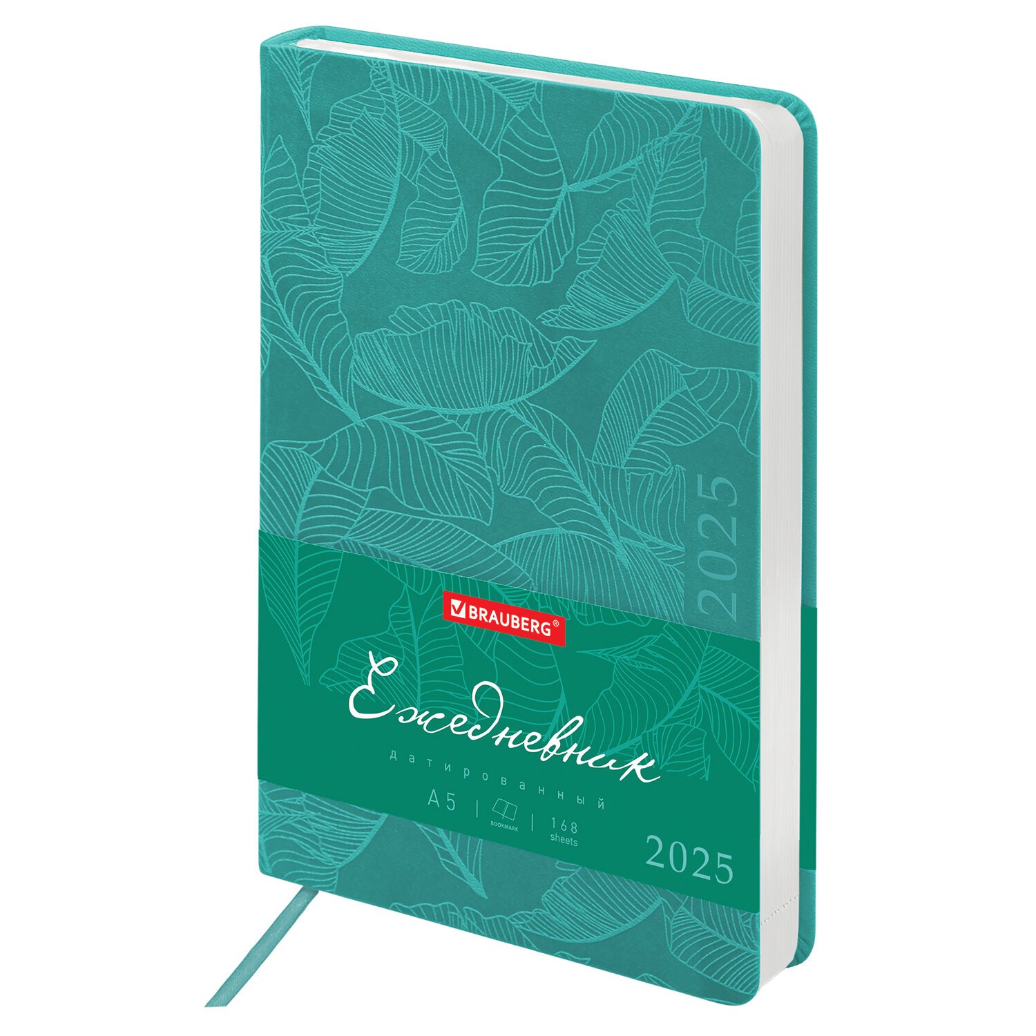 Ежедневник датированный 2025, А5, 138x213 мм, BRAUBERG "Foliage", под кожу гибкий, бирюзовый, 115851