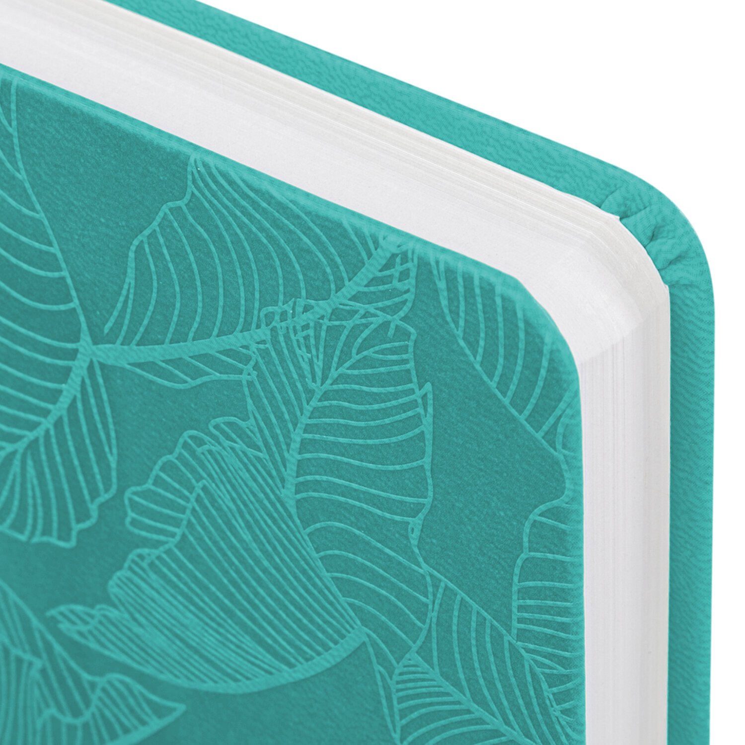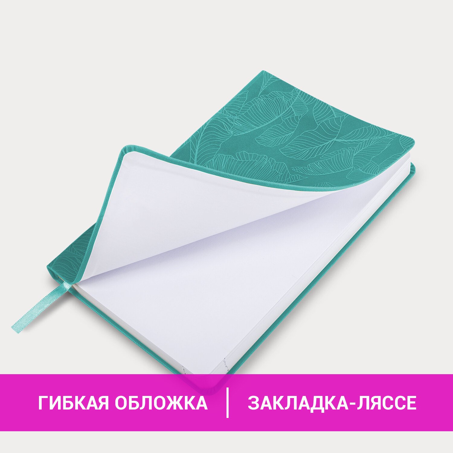 Мягкая (интегральная) обложка яркого бирюзового цвета под гладкую кожу имеет декоративное тиснение, что придает ежедневнику особый шарм. Материал обложки подходит для горячего тиснения. Дополнением является закладка-ляссе, с помощью которой при необходимости можно быстро открыть ежедневник на нужной странице. Ежедневник снабжен обширным справочным материалом. В конце имеются 4 страницы для записей и заметок.