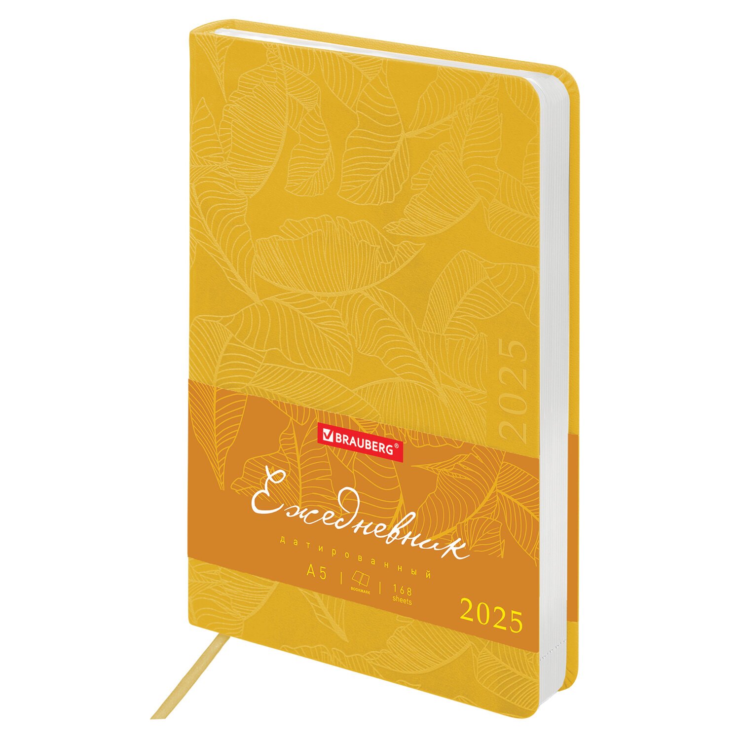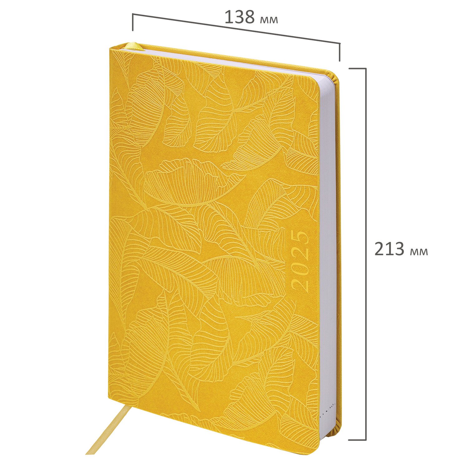 Ежедневник датированный 2025, А5, 138x213 мм, BRAUBERG "Foliage", под кожу гибкий, желтый, 115853