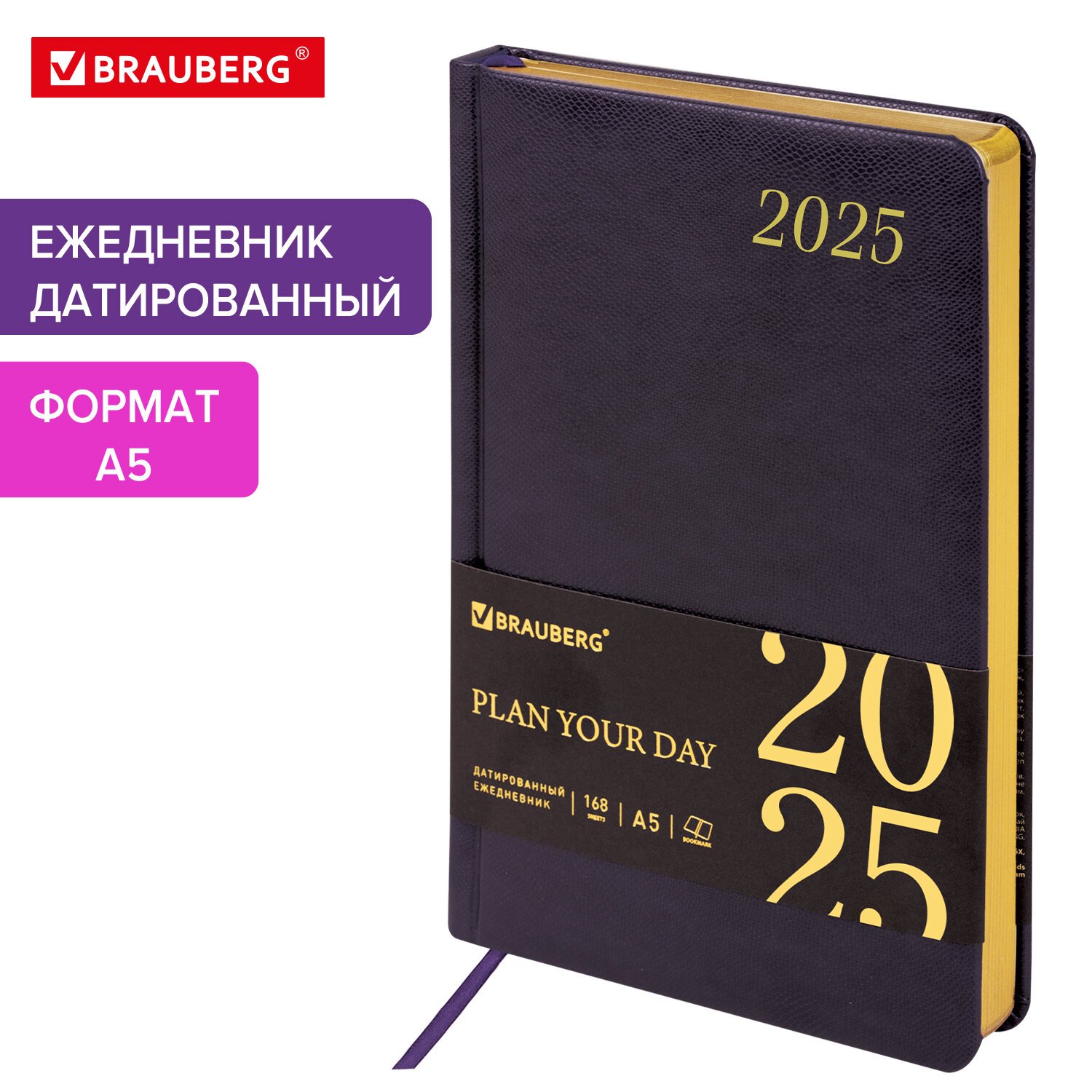 Ежедневник датированный 2025, А5, 138x213 мм, BRAUBERG "Iguana", под кожу, темно-фиолетовый, 115784