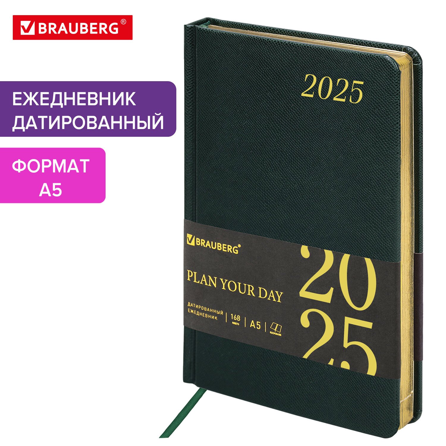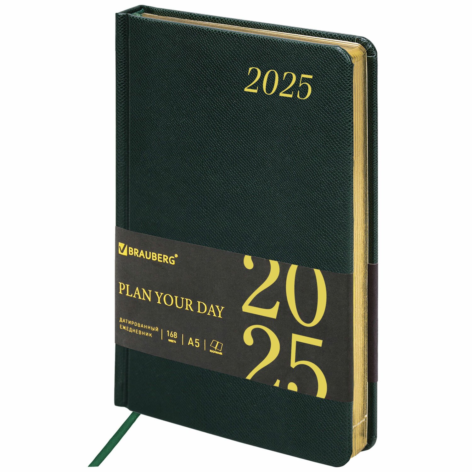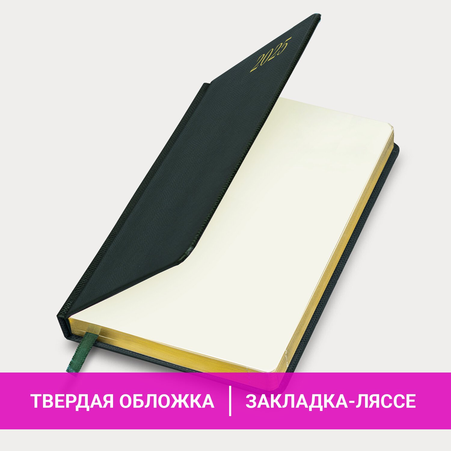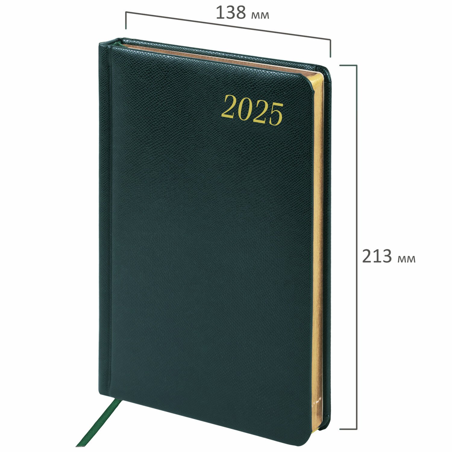 Ежедневник датированный 2025, А5, 138x213 мм, BRAUBERG "Iguana", под кожу, темно-зеленый, 115783