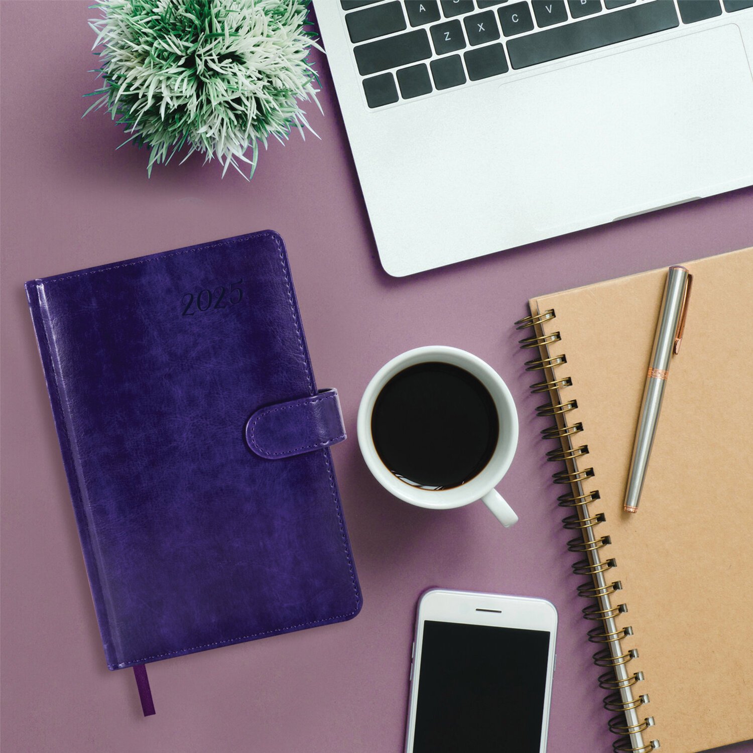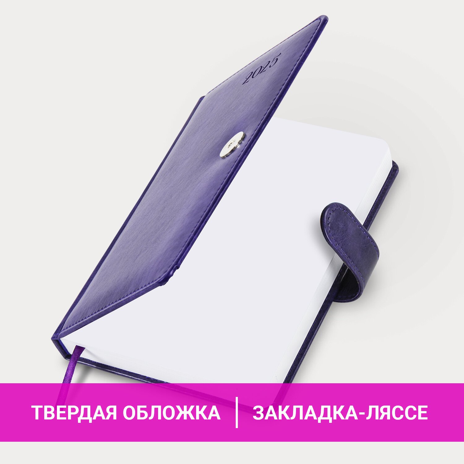 Ежедневник датированный 2025, А5, 138x213 мм, BRAUBERG "Legend", под кожу, застежка, фиолетовый, 115795