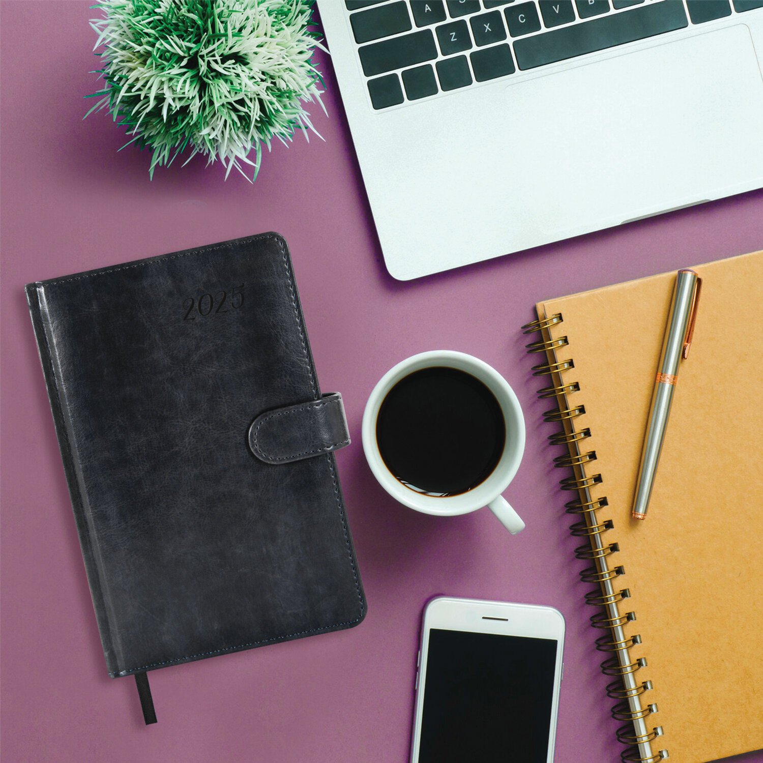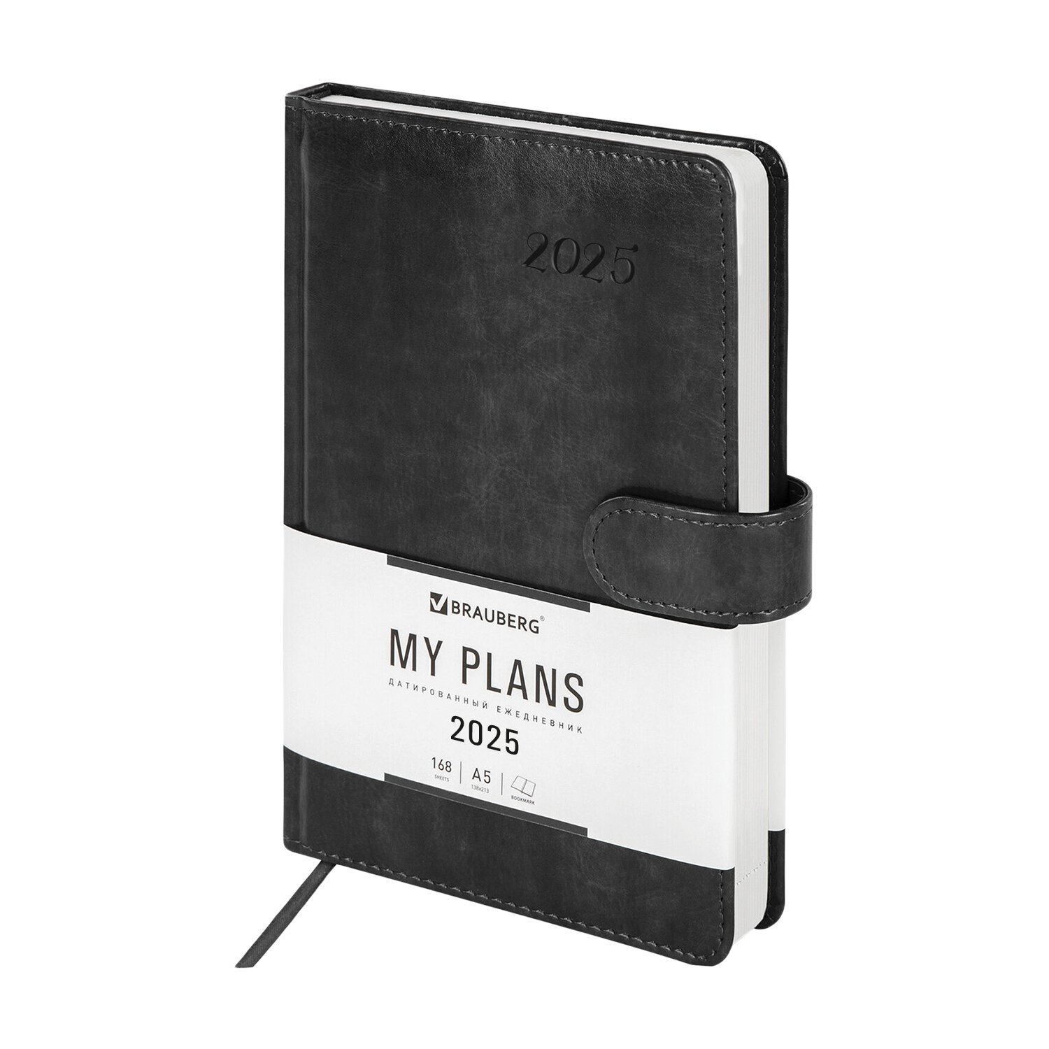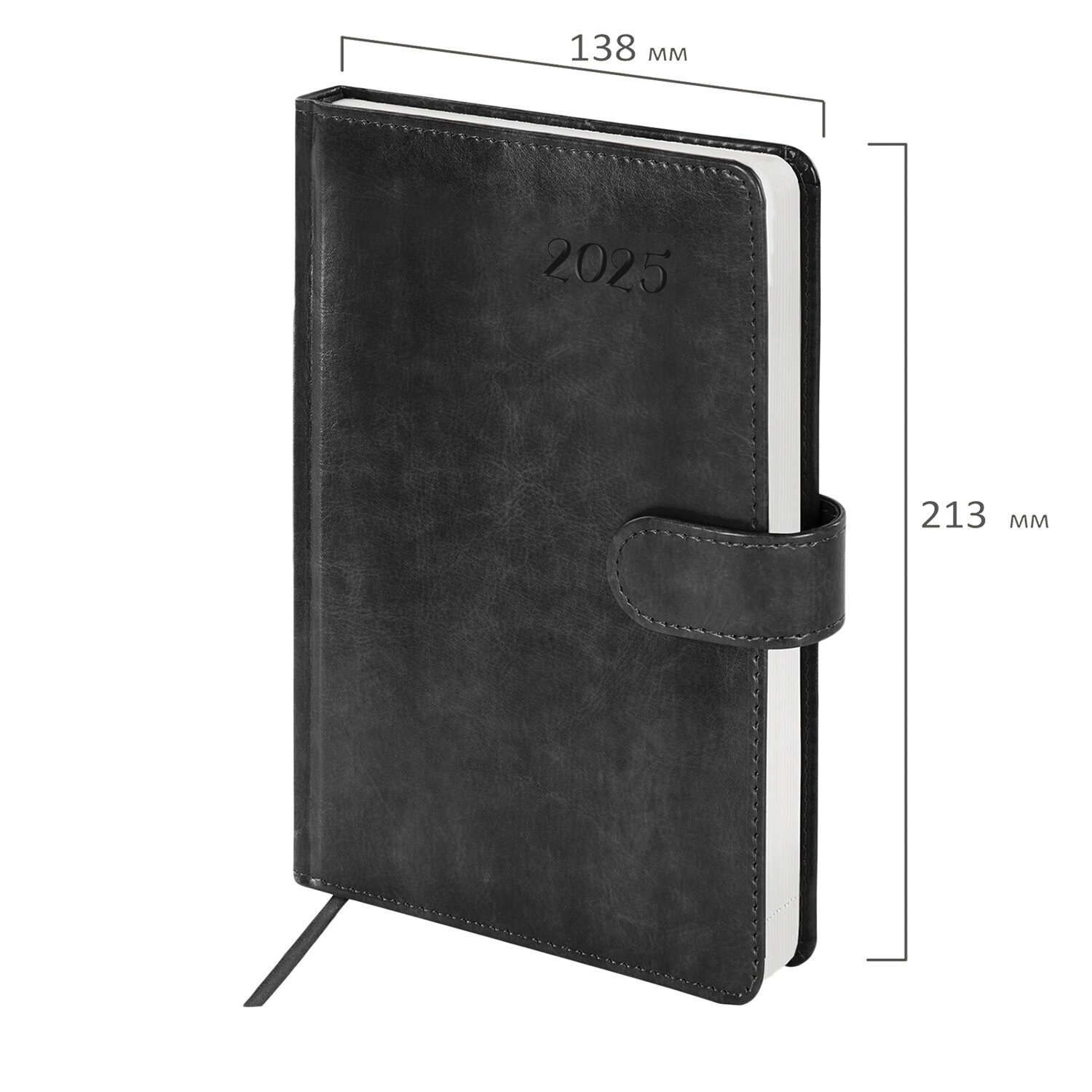 Ежедневник датированный 2025, А5, 138x213 мм, BRAUBERG "Legend", под кожу, застежка, серый, 115793