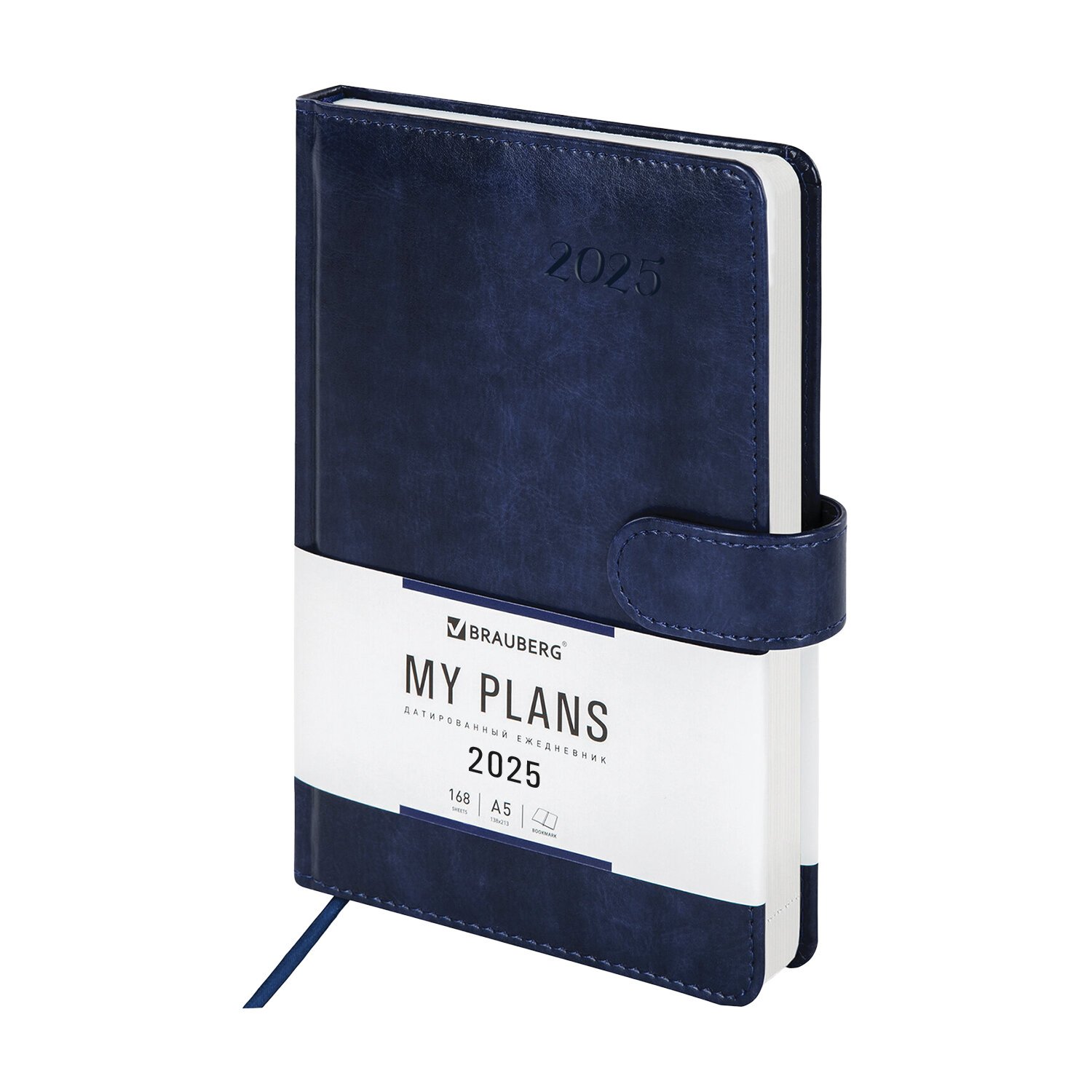 Ежедневник датированный 2025, А5, 138x213 мм, BRAUBERG "Legend", под кожу, застежка, синий, 115792