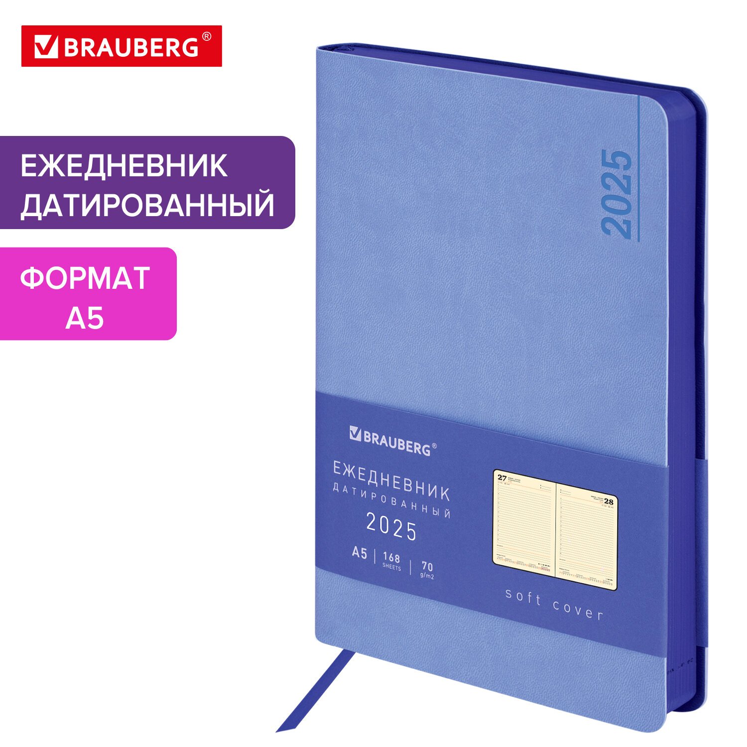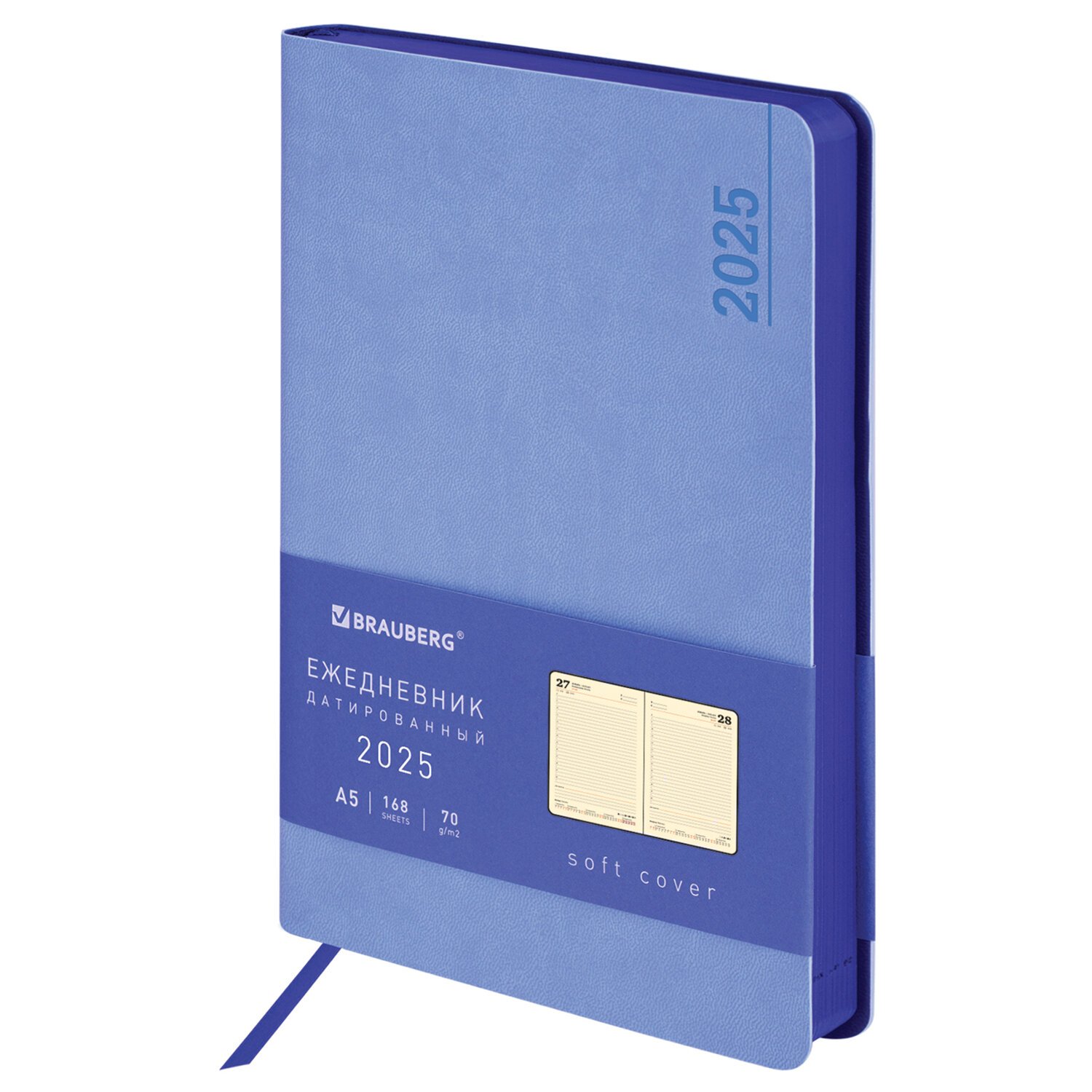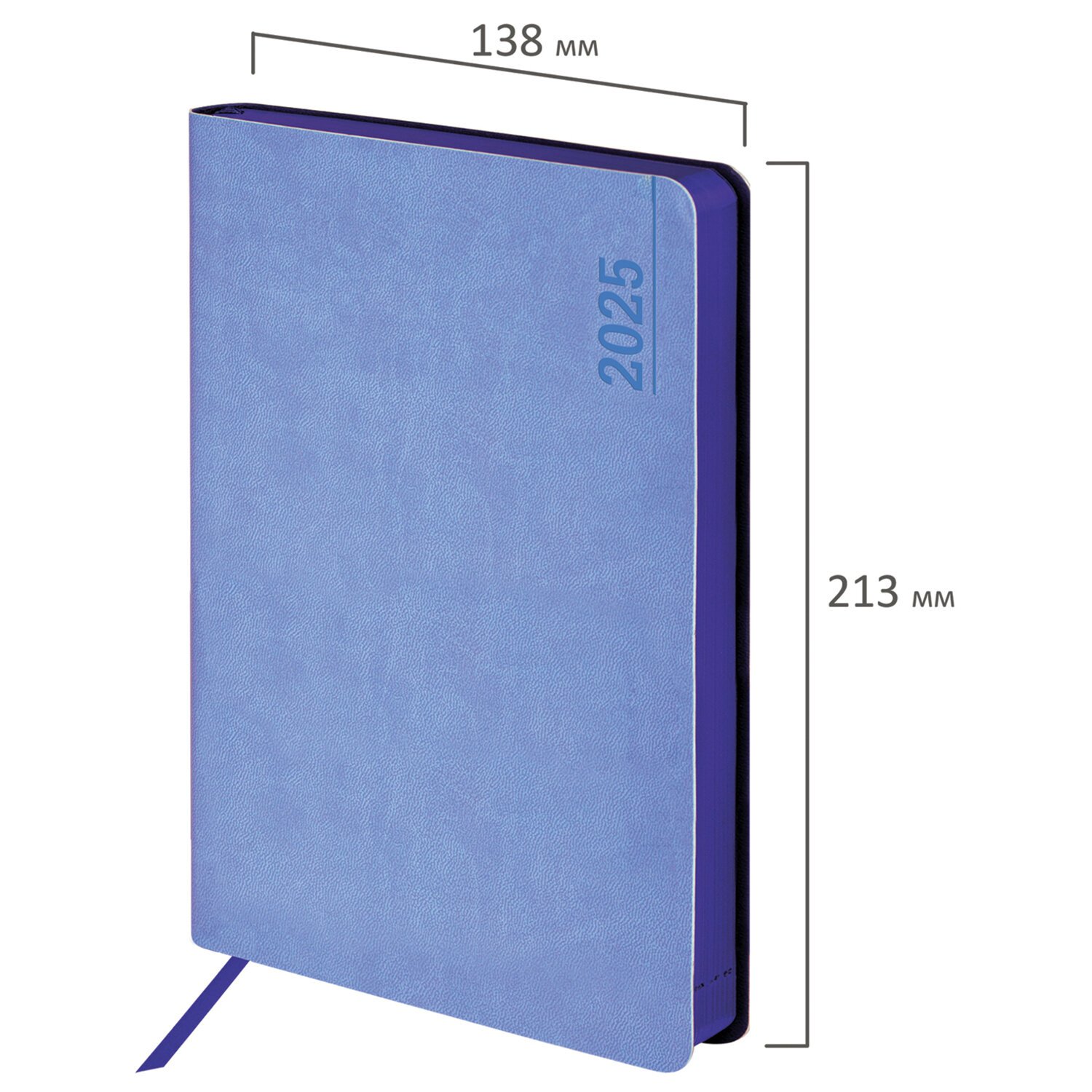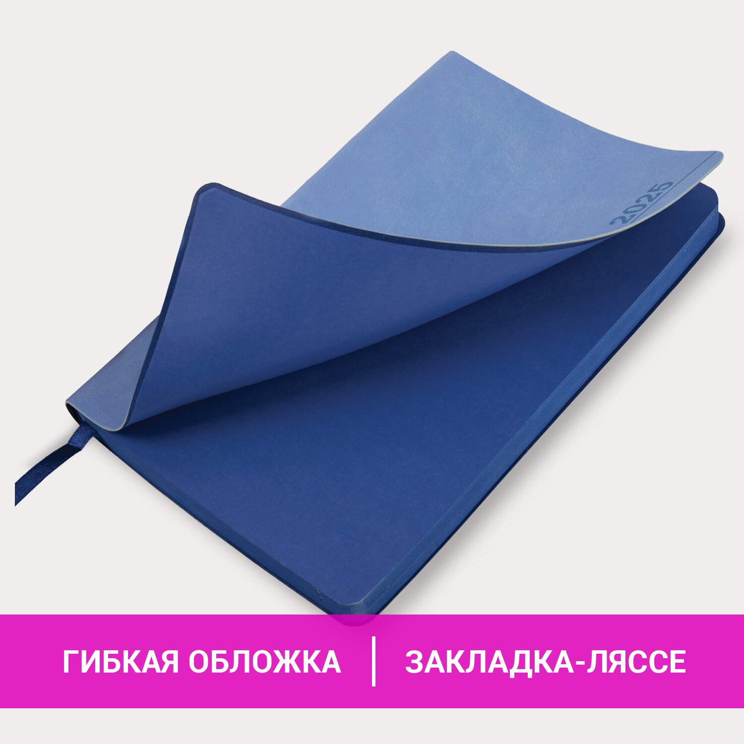Ежедневник датированный 2025, А5, 138x213 мм, BRAUBERG "Metropolis Mix", под кожу гибкий, голубой, 115861