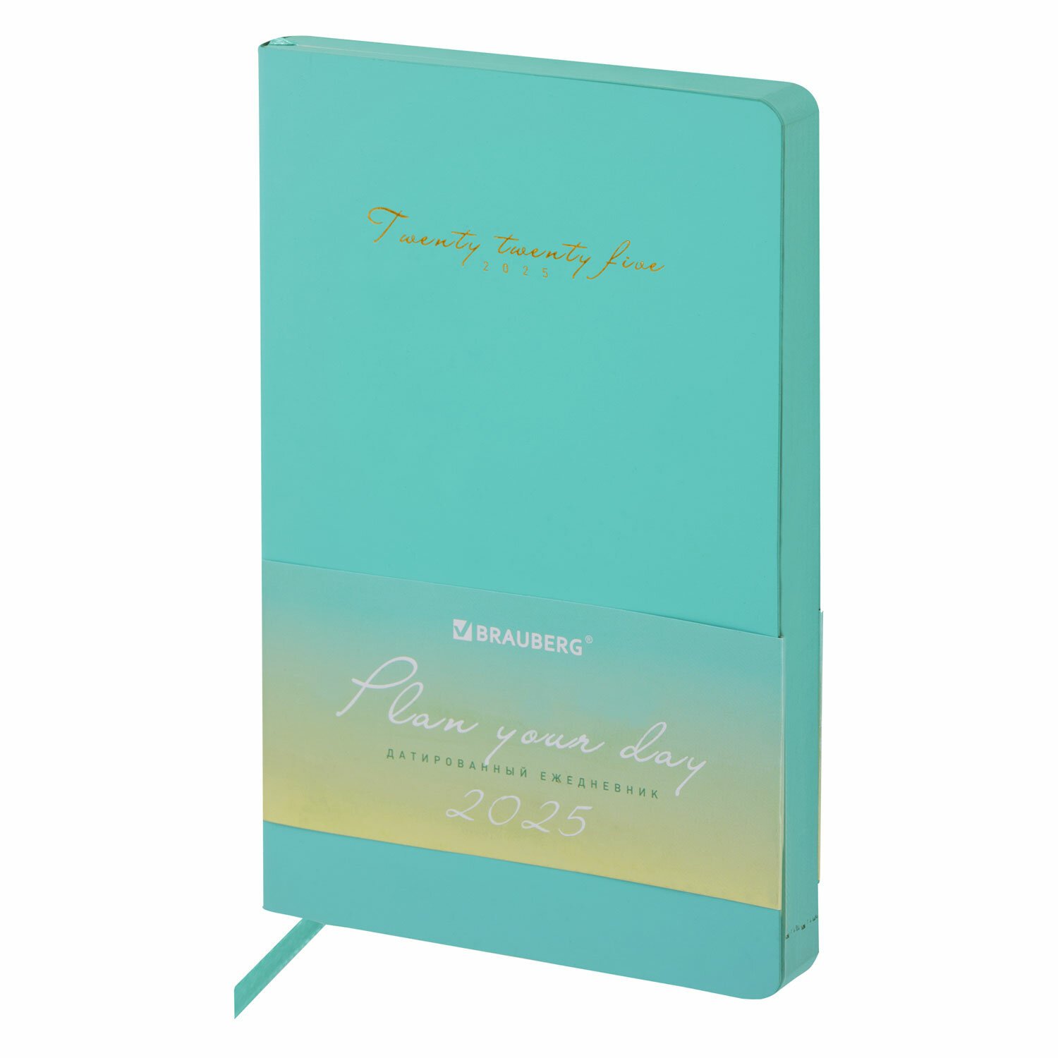 Ежедневник датированный 2025 А5 138x213 мм, BRAUBERG "Pastel", под кожу, гибкий, бирюзовый, 115885