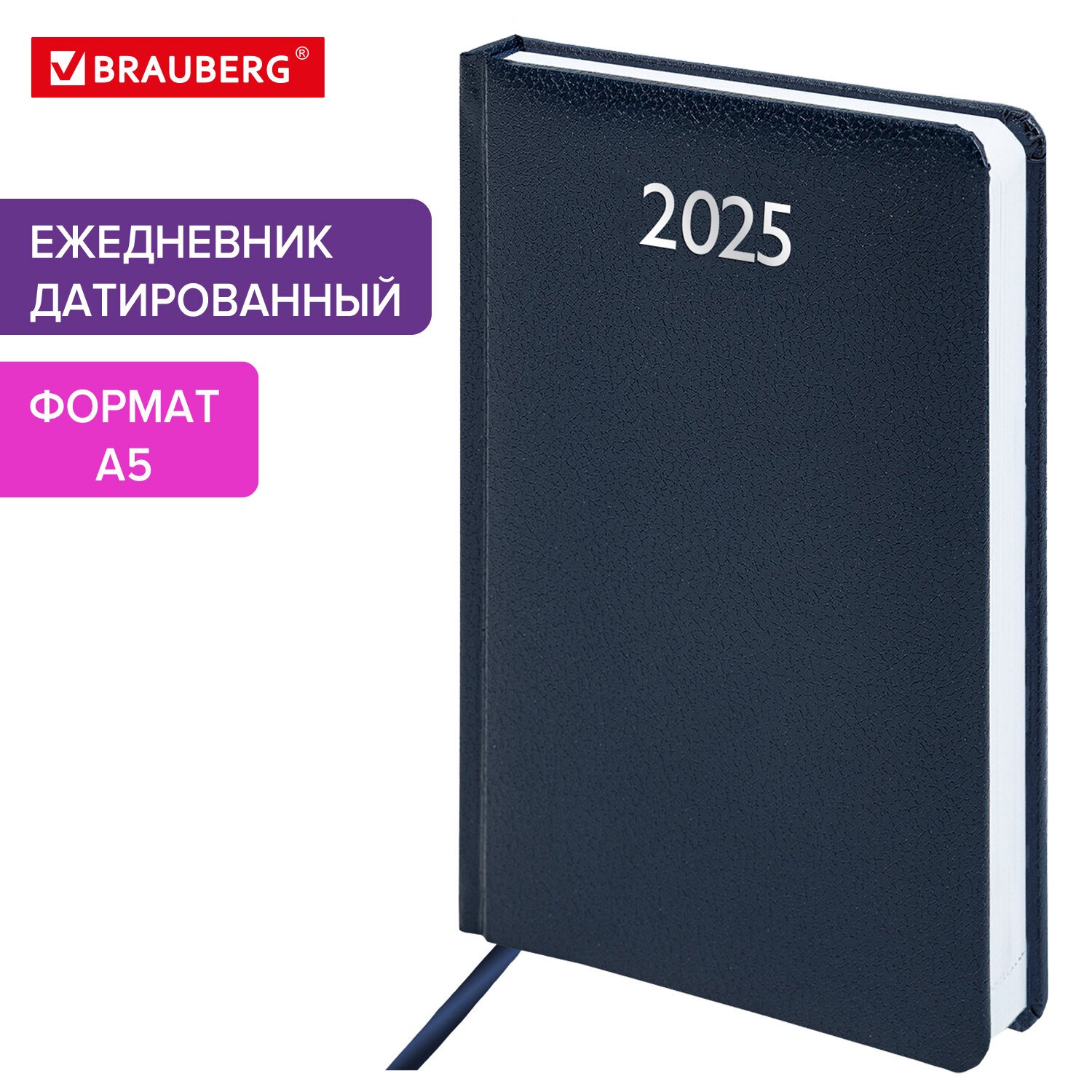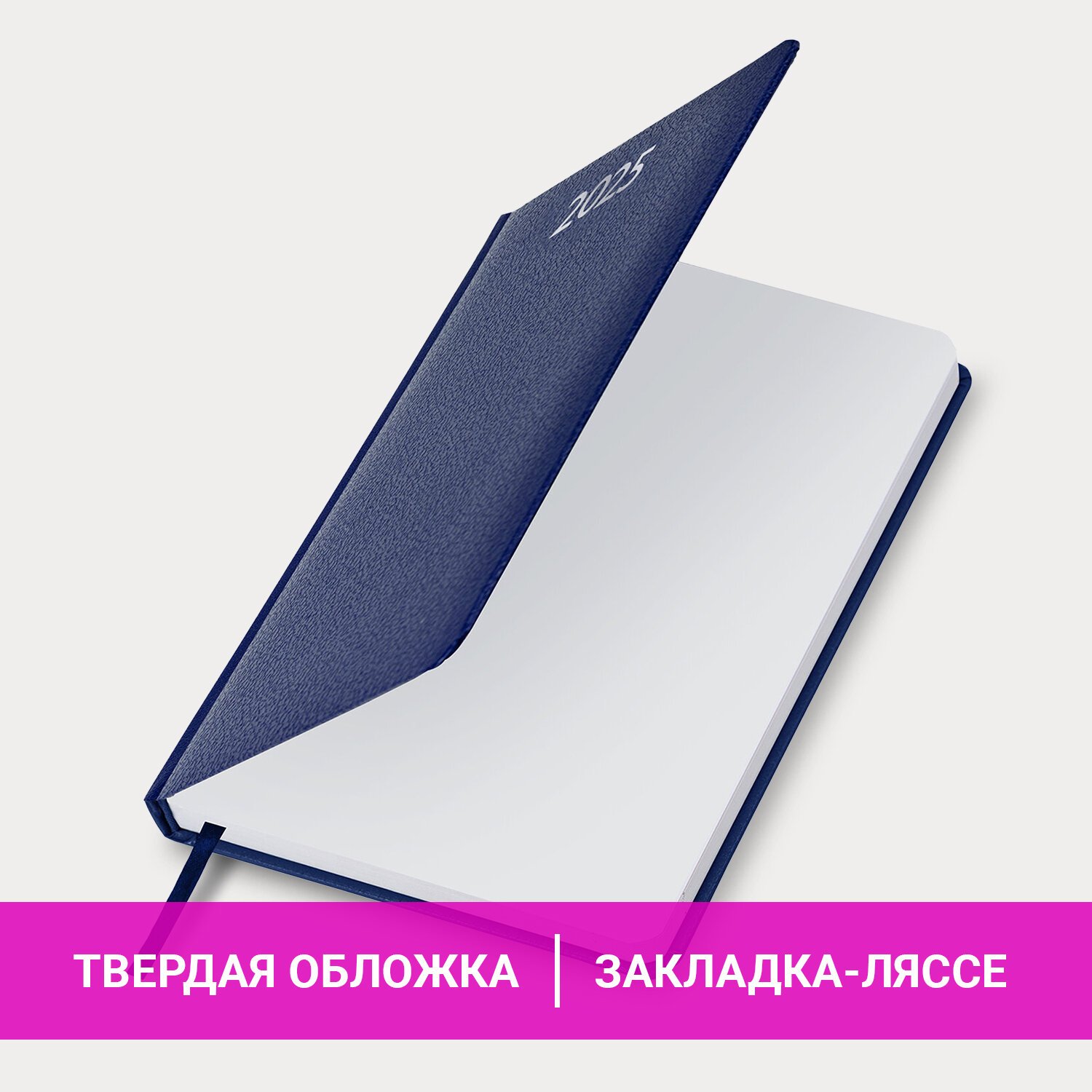 Ежедневник датированный 2025 А5 138x213 мм BRAUBERG "Profile", балакрон, синий, 115797