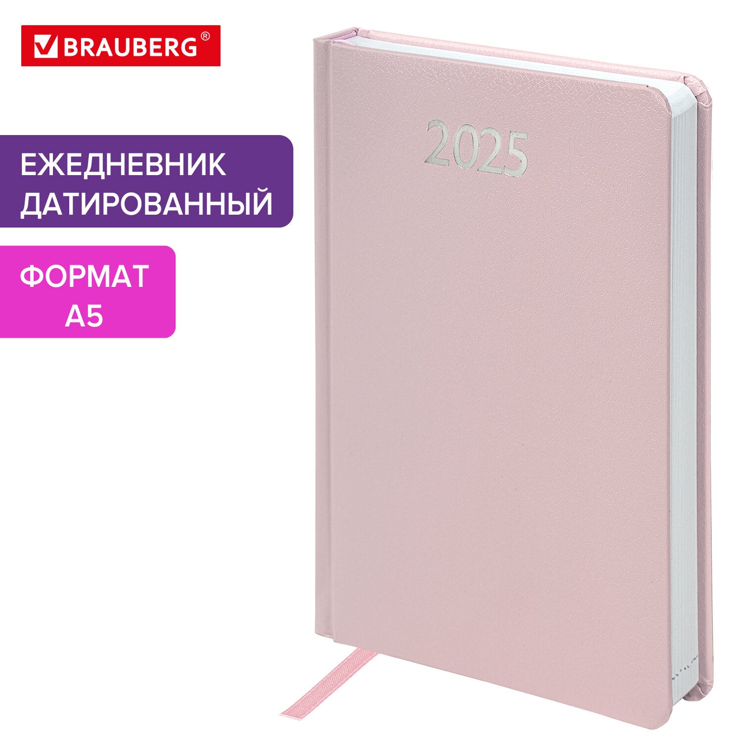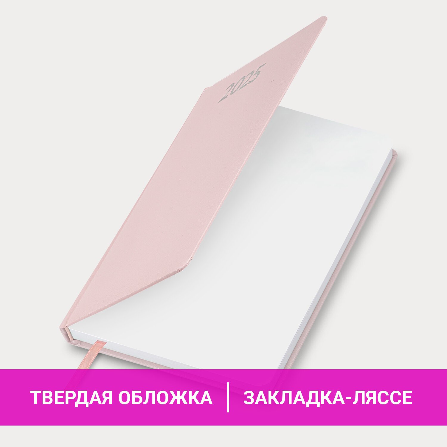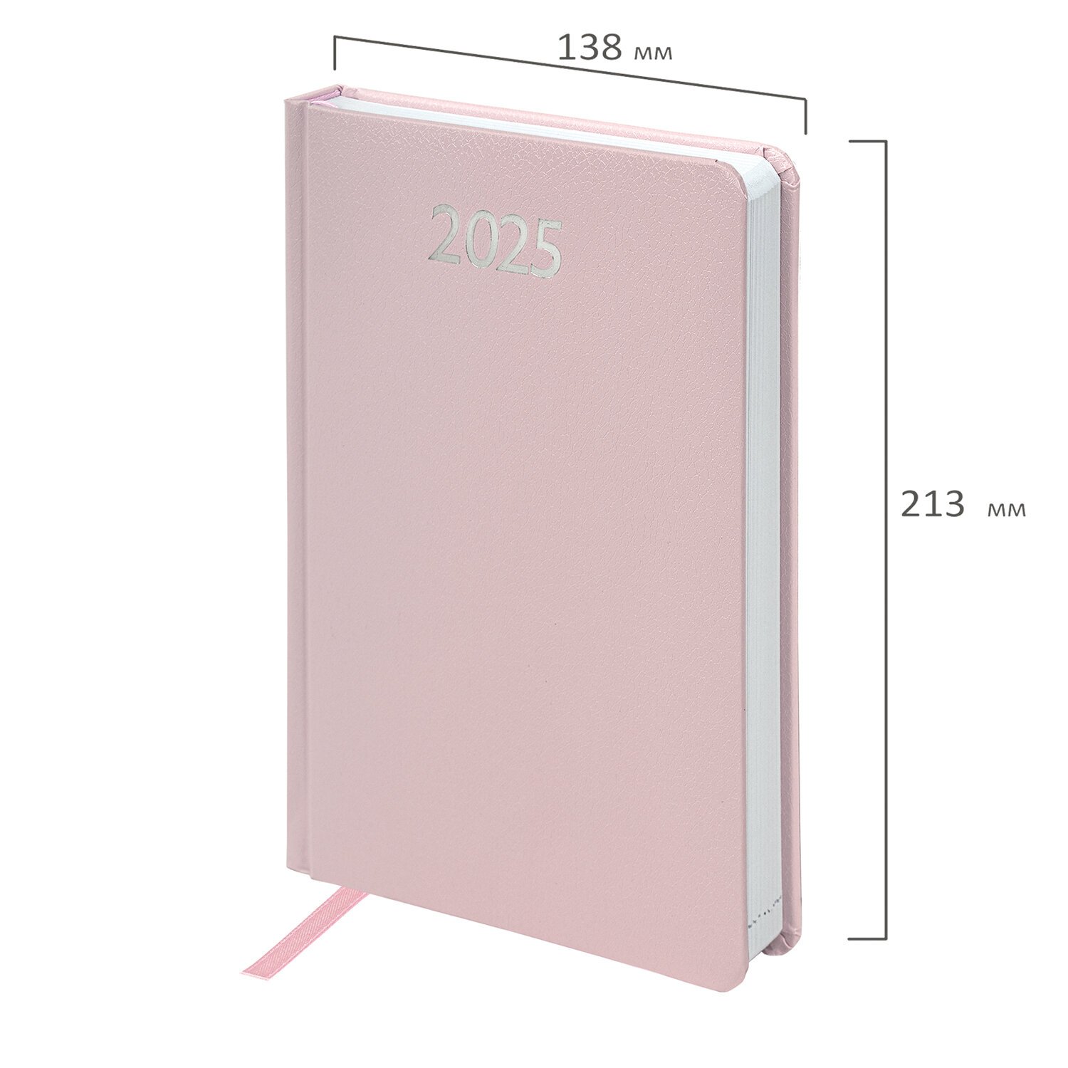 Ежедневник датированный 2025 А5 138x213 мм BRAUBERG "Profile", балакрон, светло-розовый, 115799