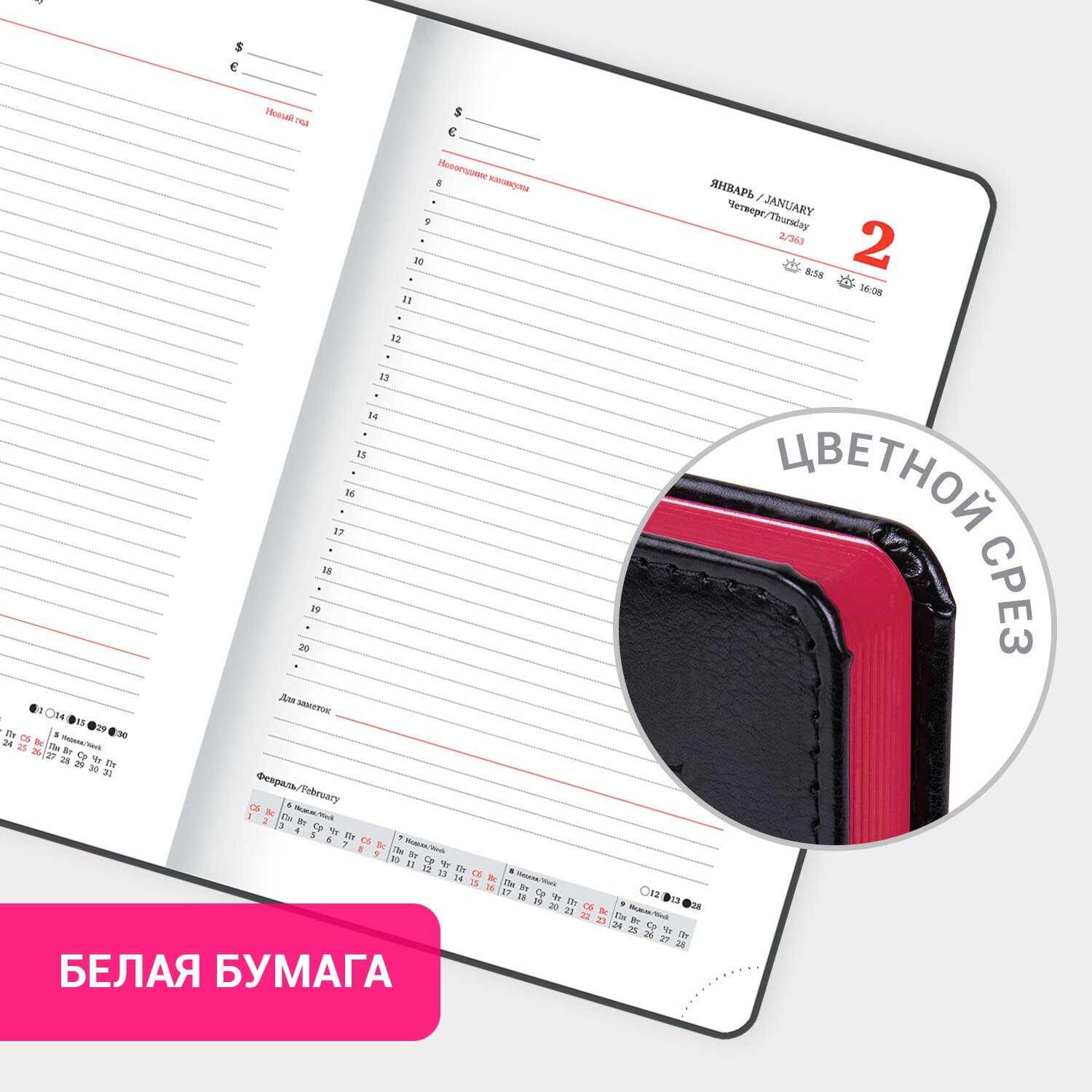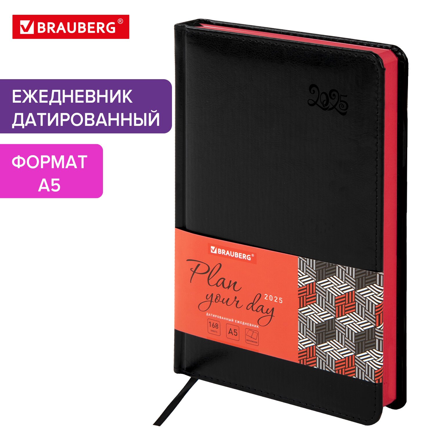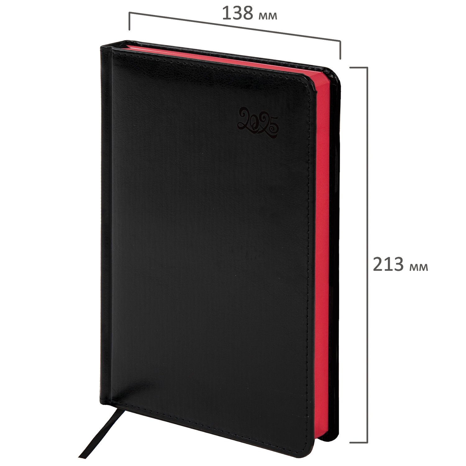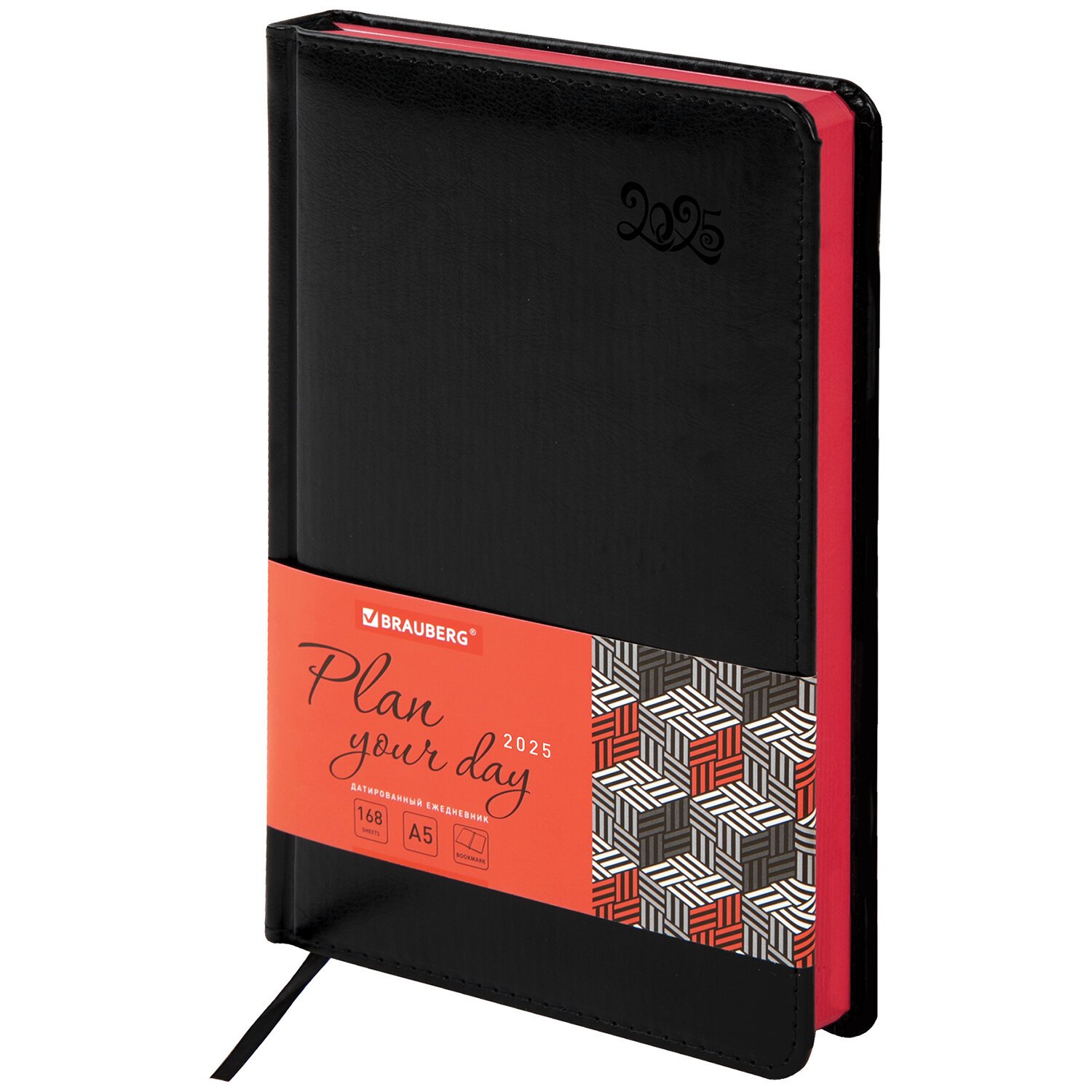 Ежедневник датированный 2025 А5 138x213 мм BRAUBERG "Rainbow", под кожу, черный, 115803