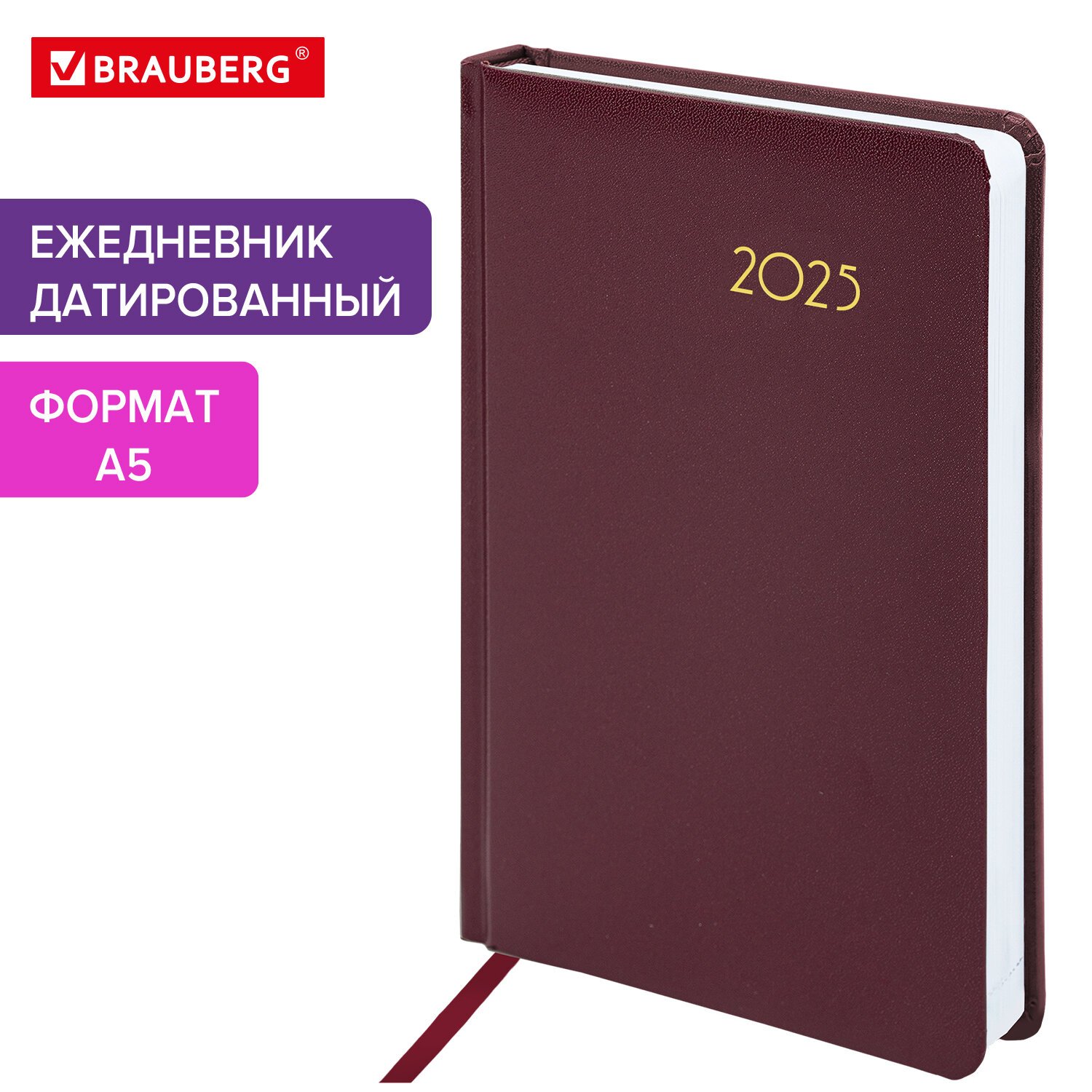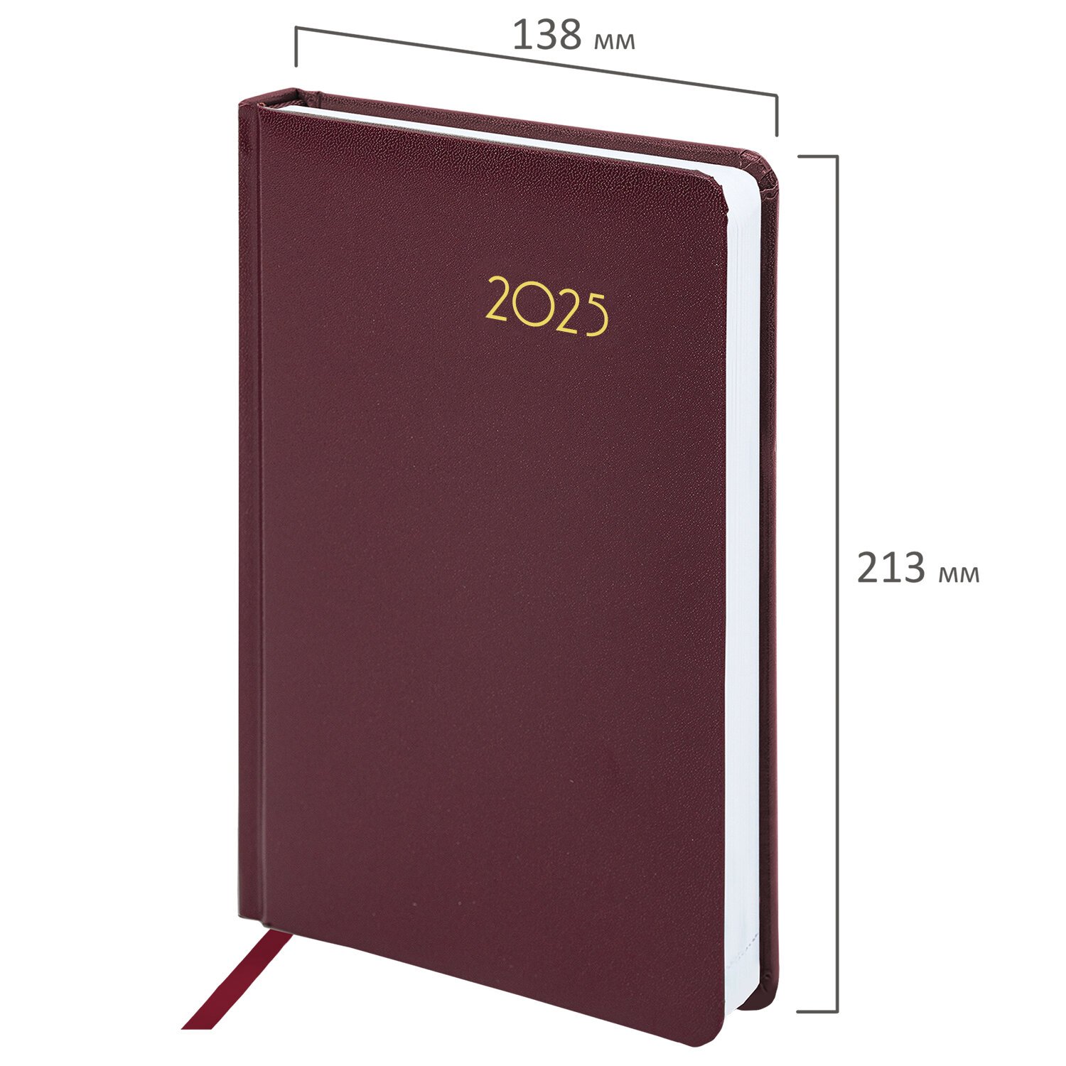 Ежедневник датированный 2025 А5 138x213 мм BRAUBERG "Select", балакрон, бордовый, 115810