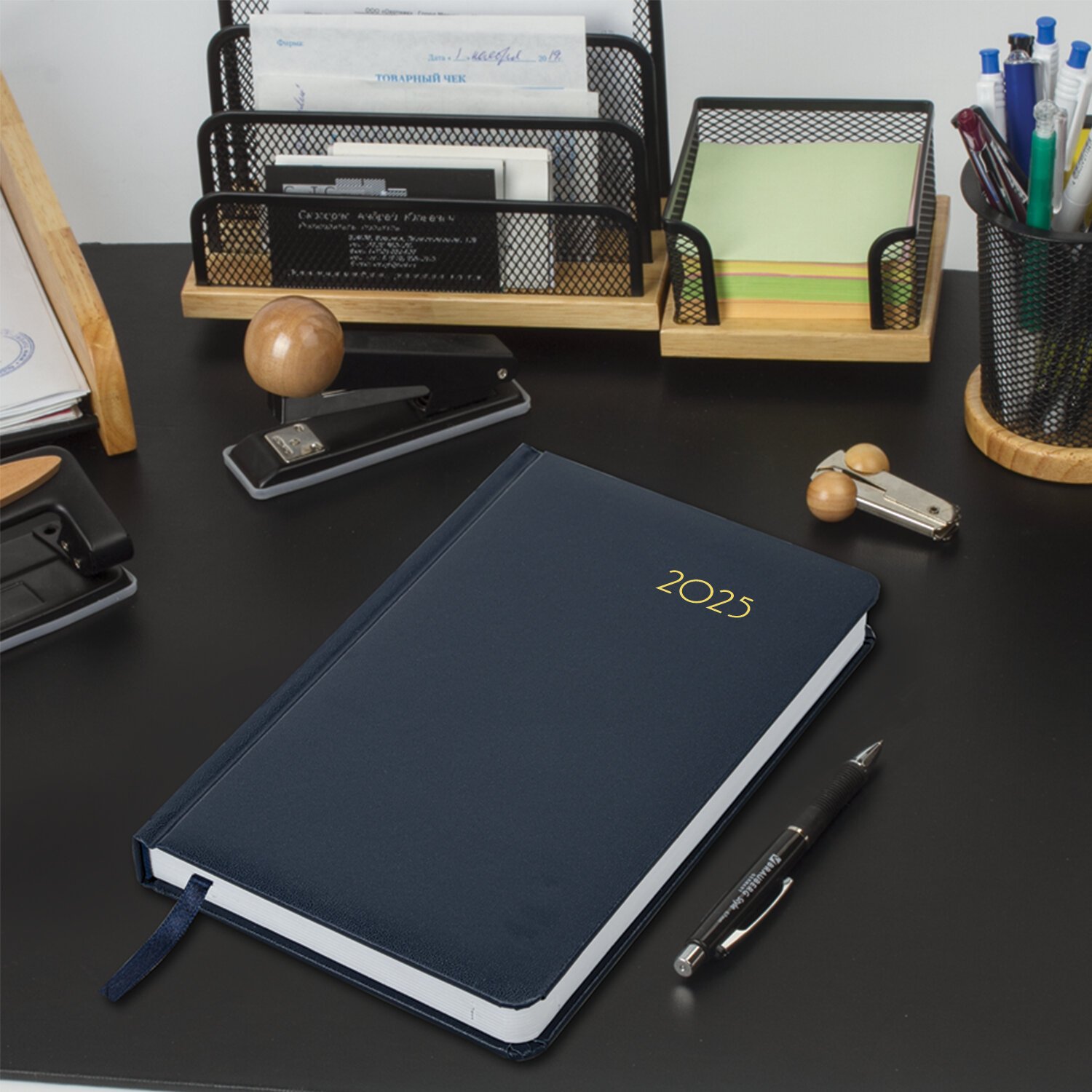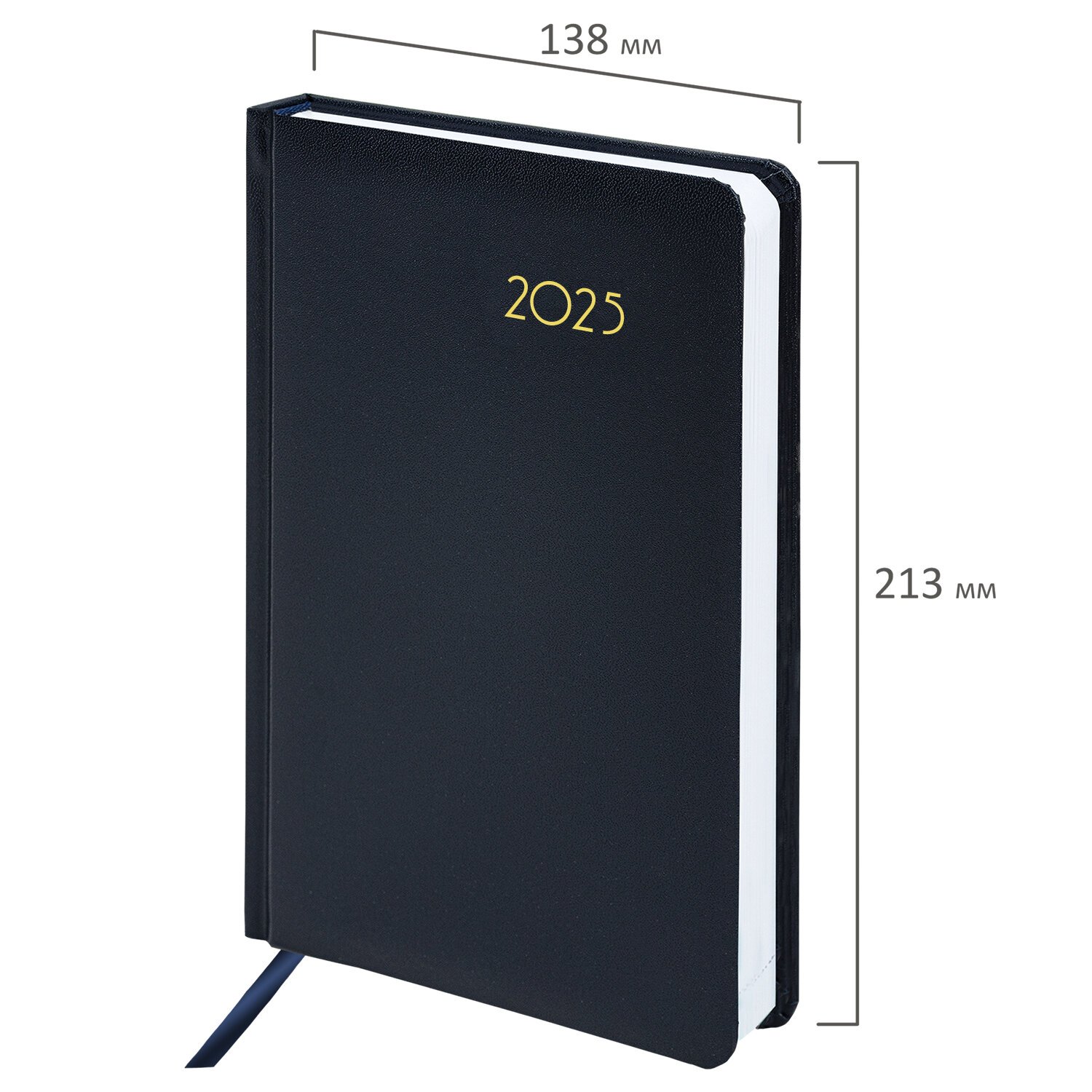 Ежедневник датированный 2025 А5 138x213 мм BRAUBERG "Select", балакрон, темно-синий, 115807