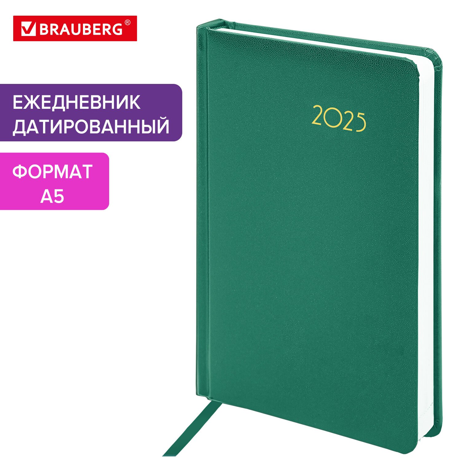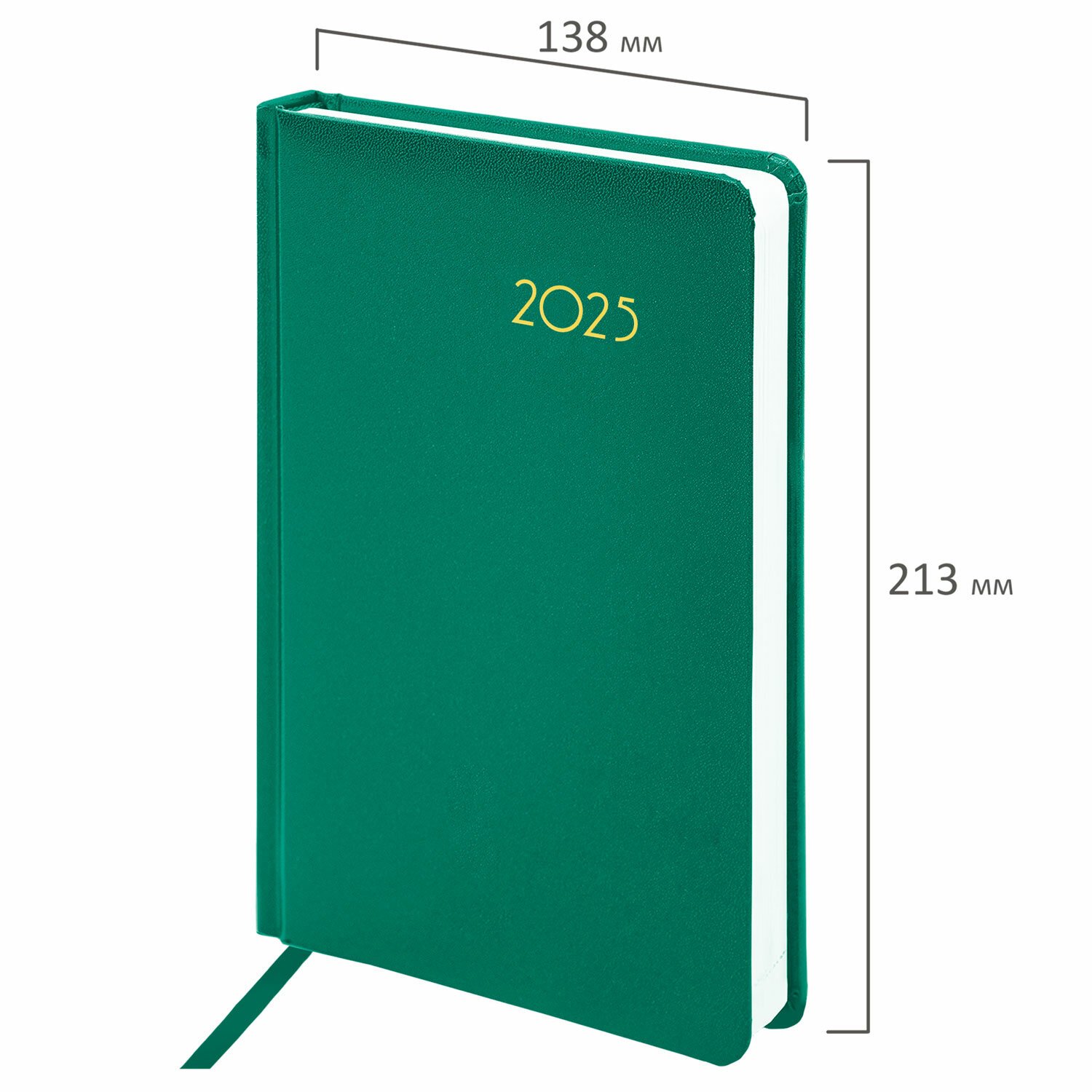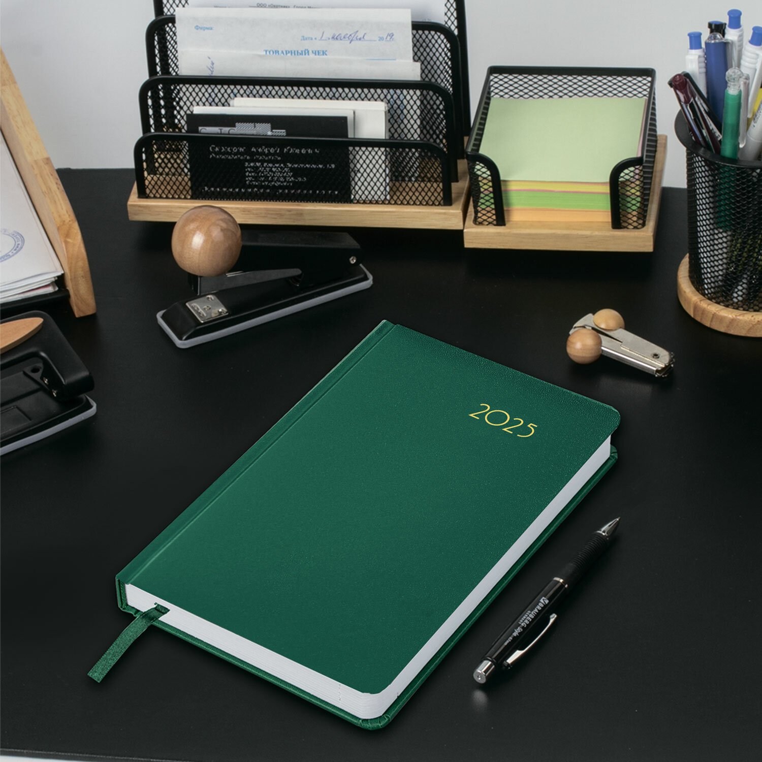 Ежедневник датированный 2025 А5 138x213 мм BRAUBERG "Select", балакрон, зеленый, 115809
