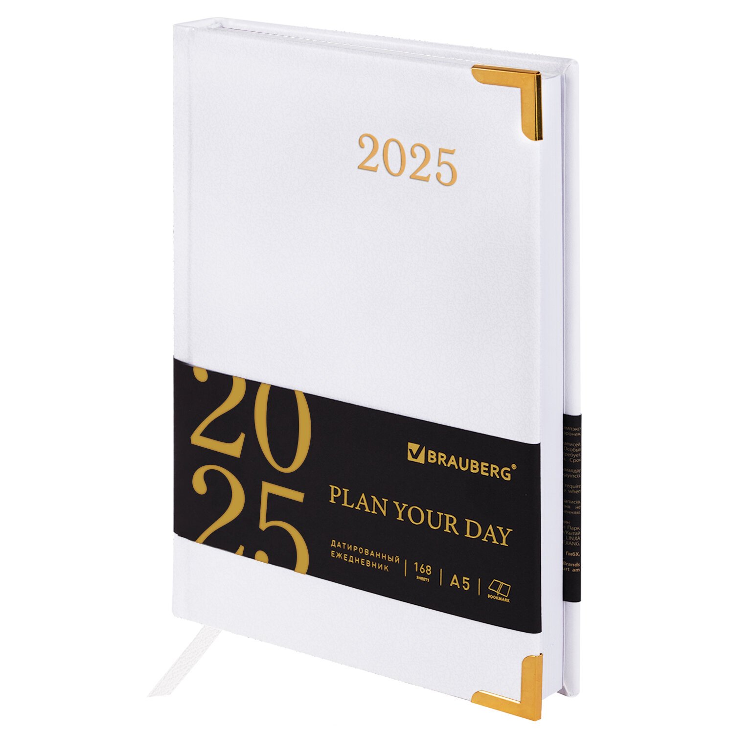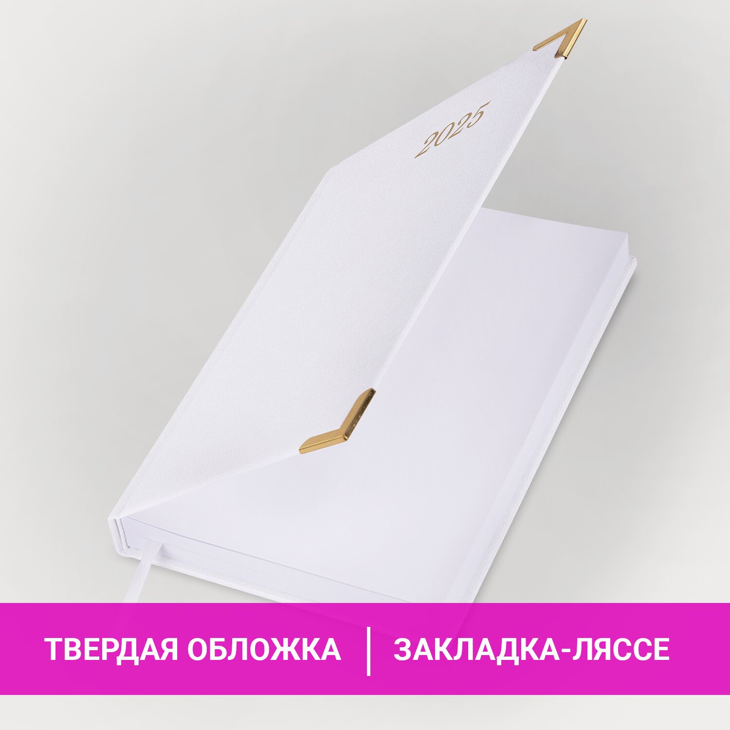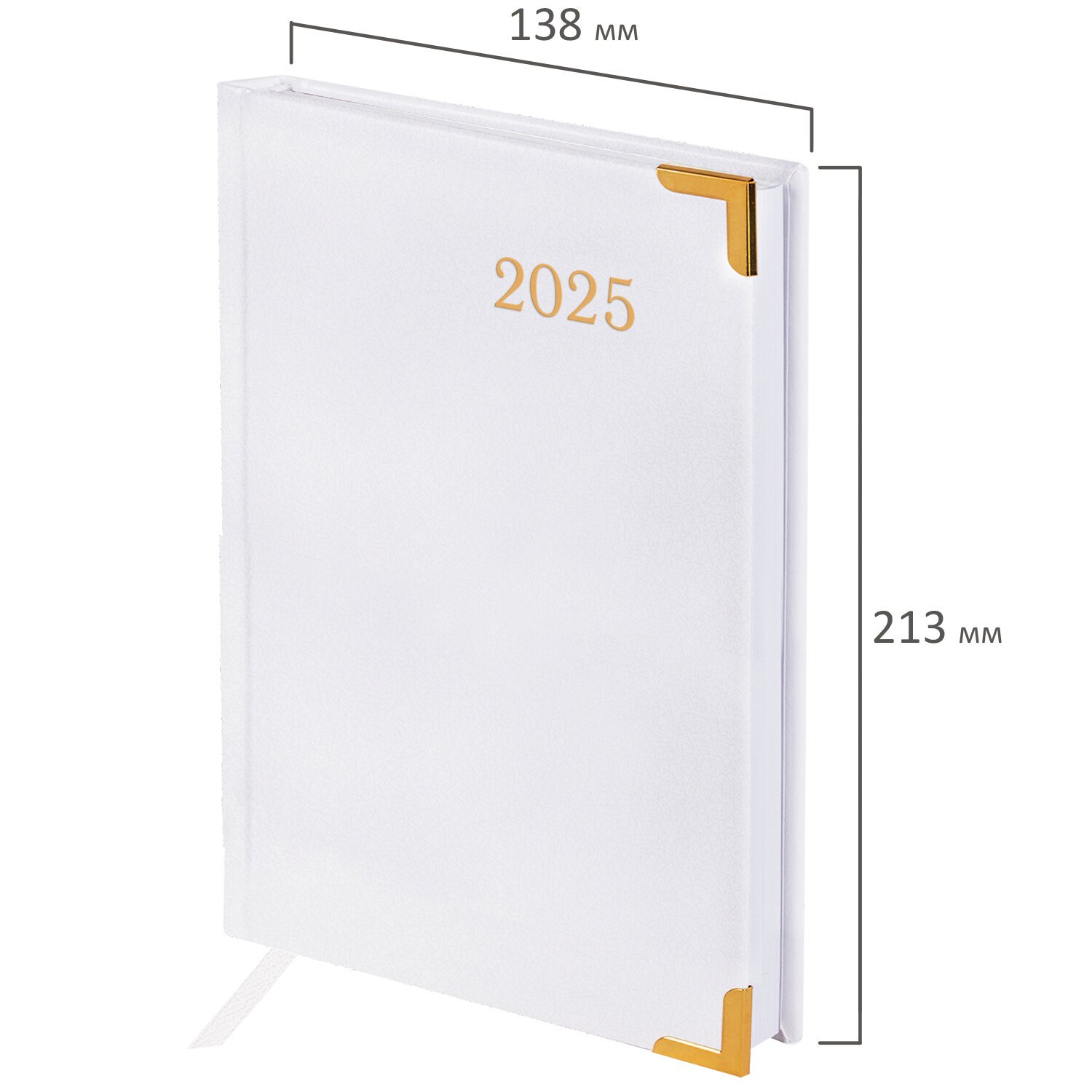 Ежедневник датированный 2025 А5 138x213 мм BRAUBERG "Senator", под кожу, белый, 115819