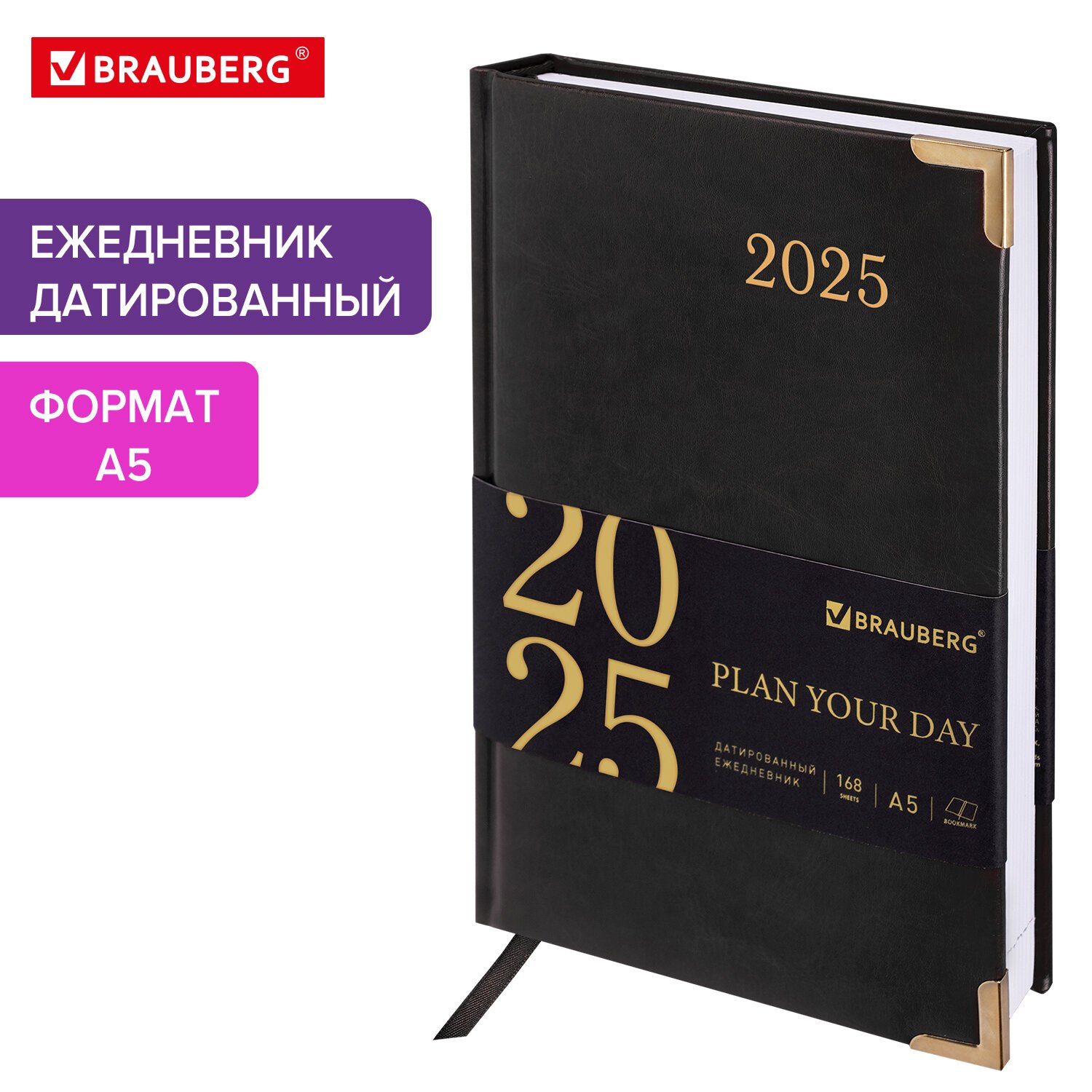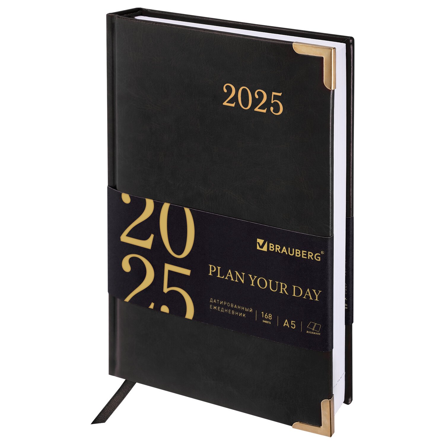 Ежедневник датированный 2025 А5 138x213 мм BRAUBERG "Senator", под кожу, черный, 115817